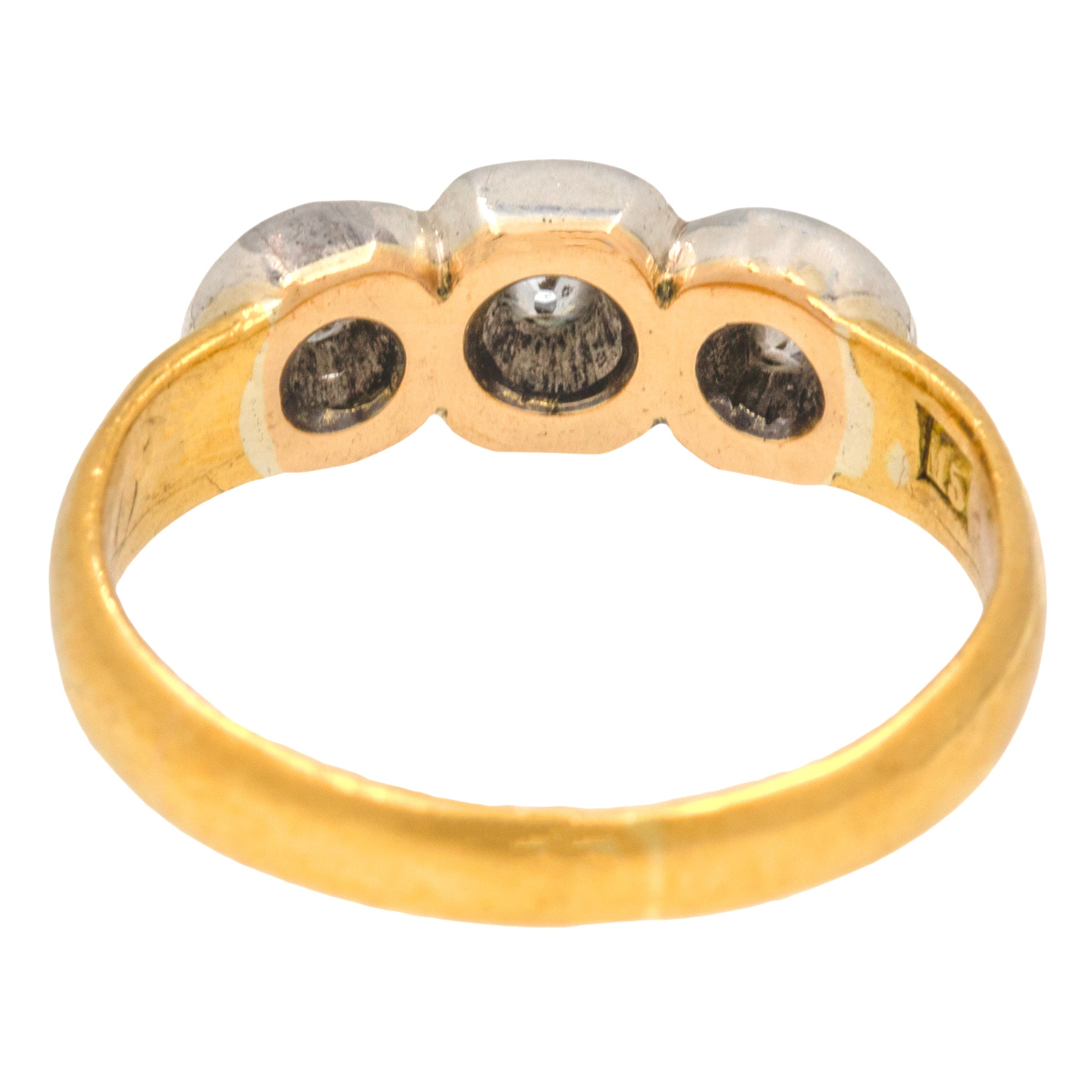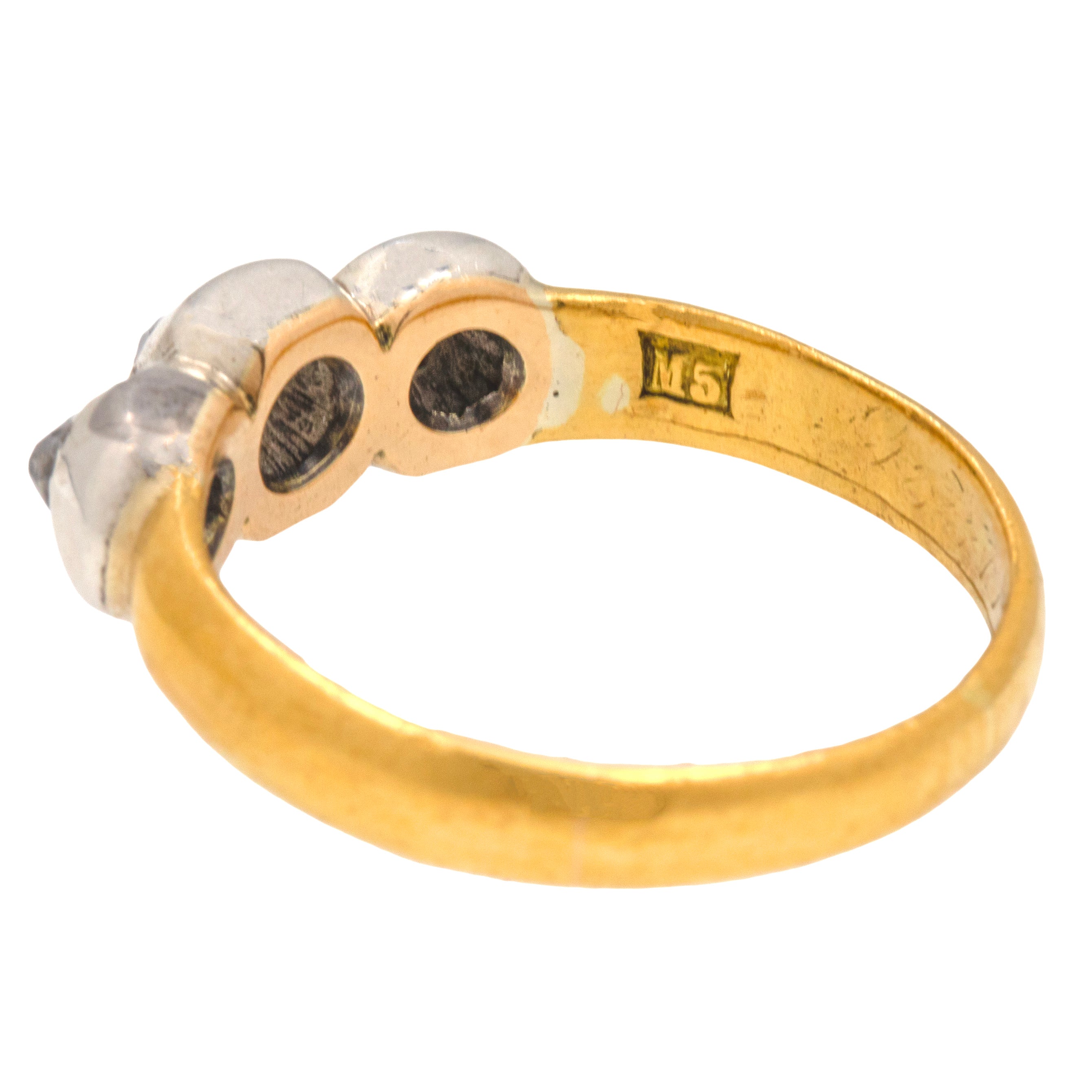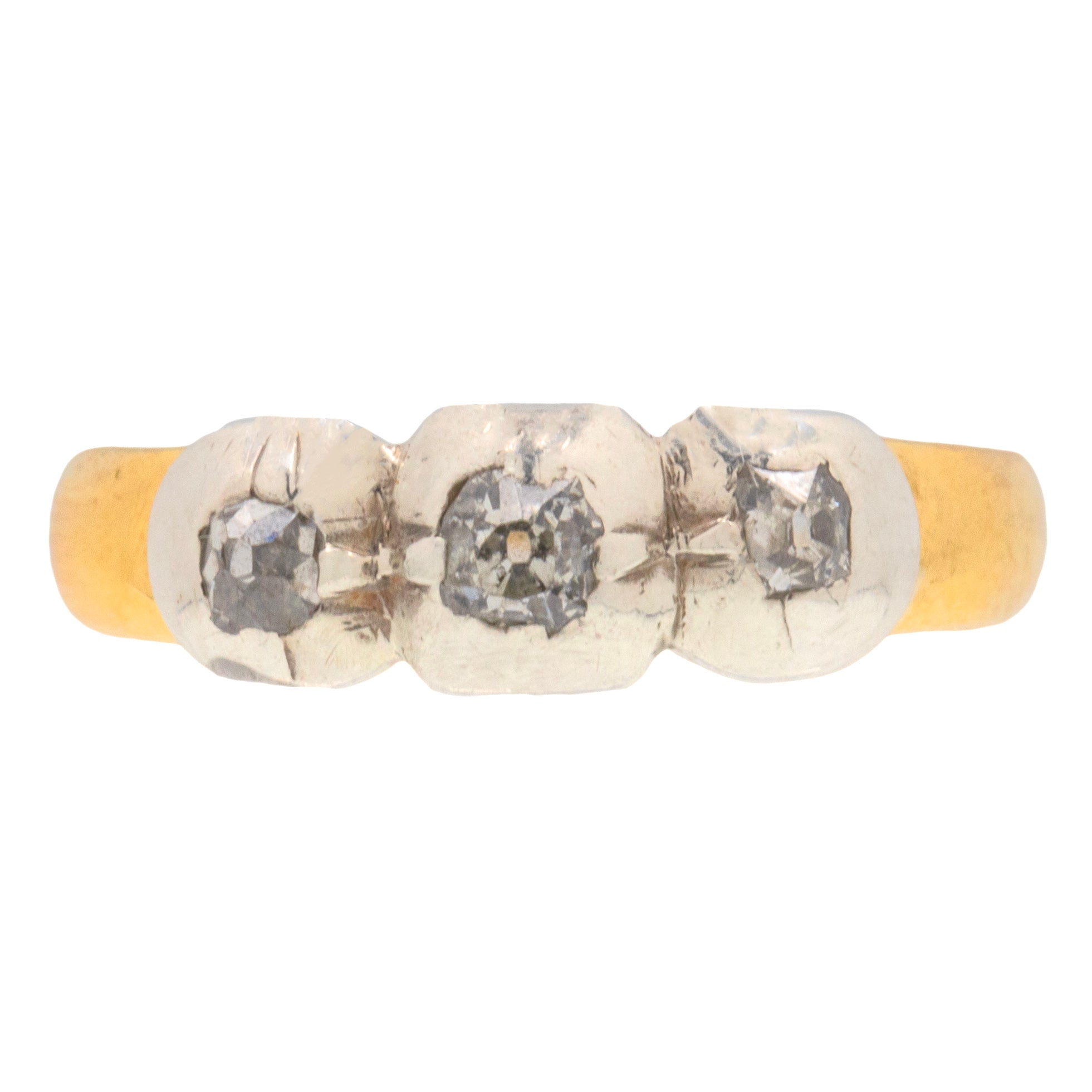 アンティーク 18ct ゴールド テーブルカット ダイヤモンド スリーストーン リング