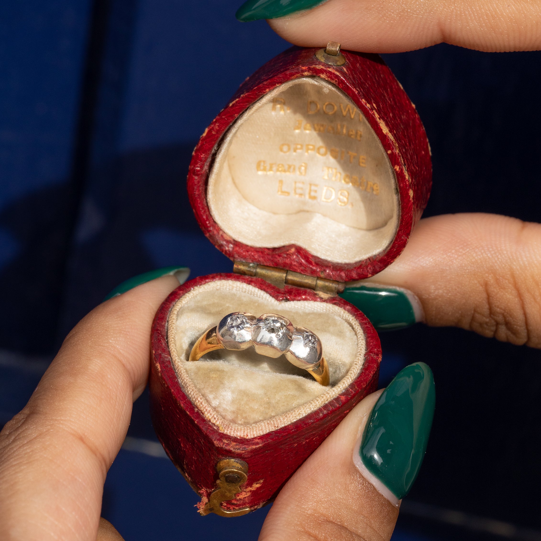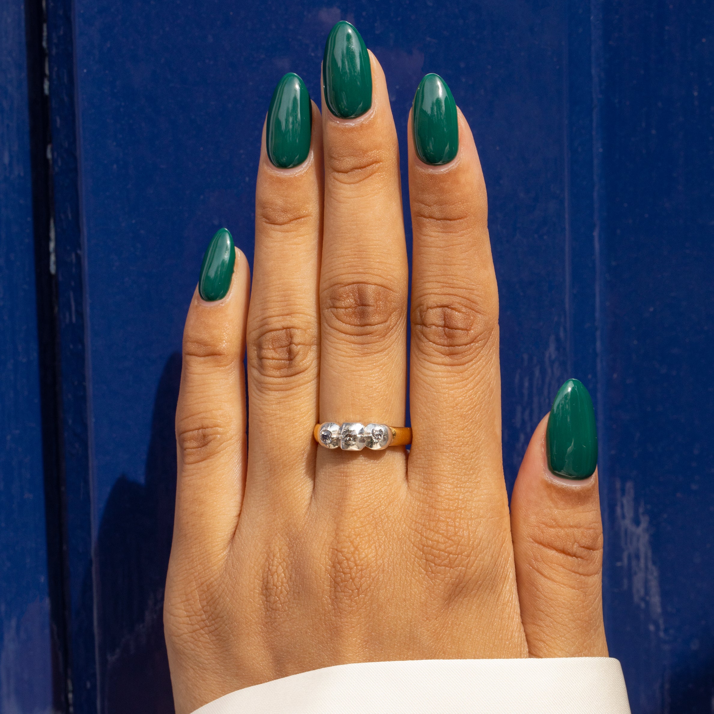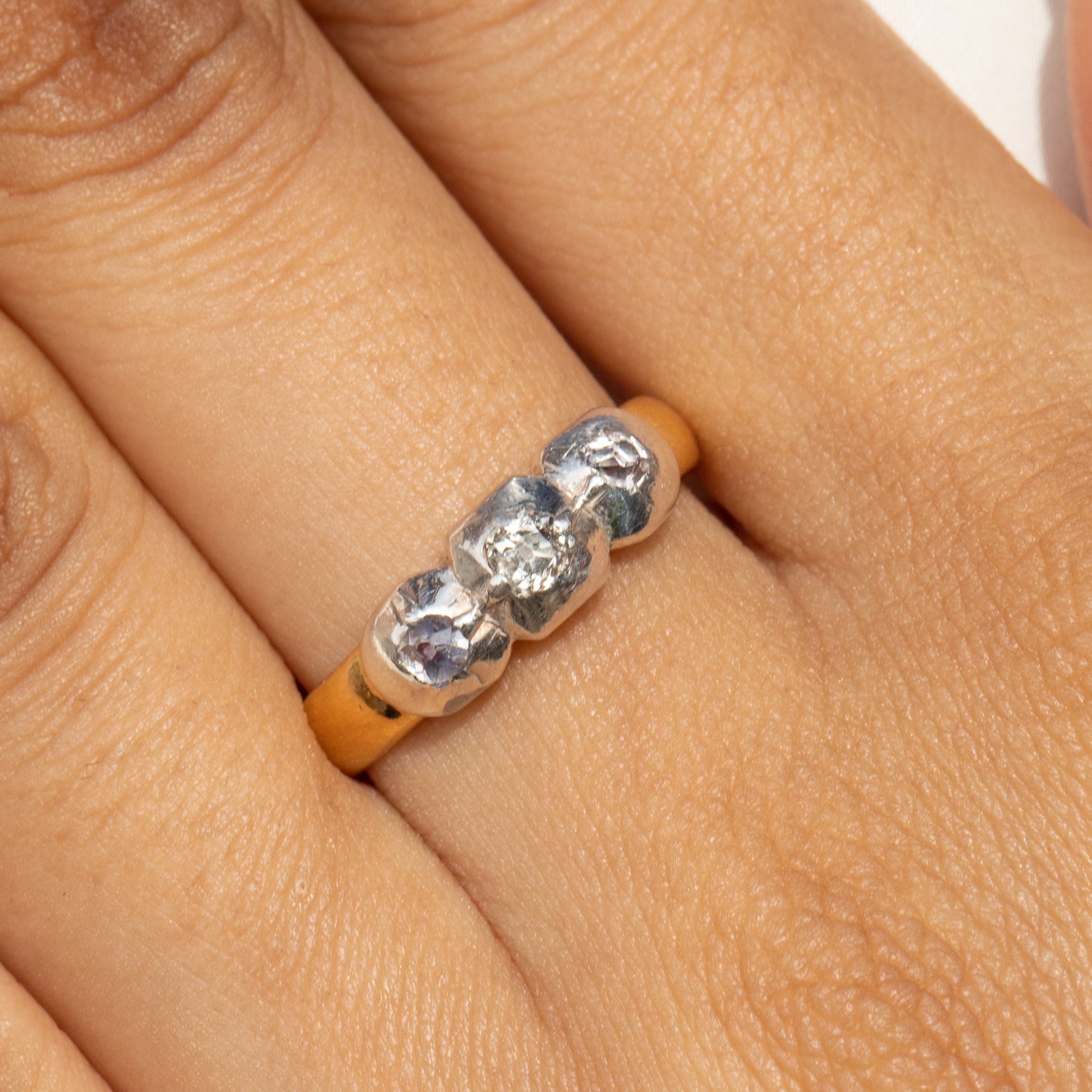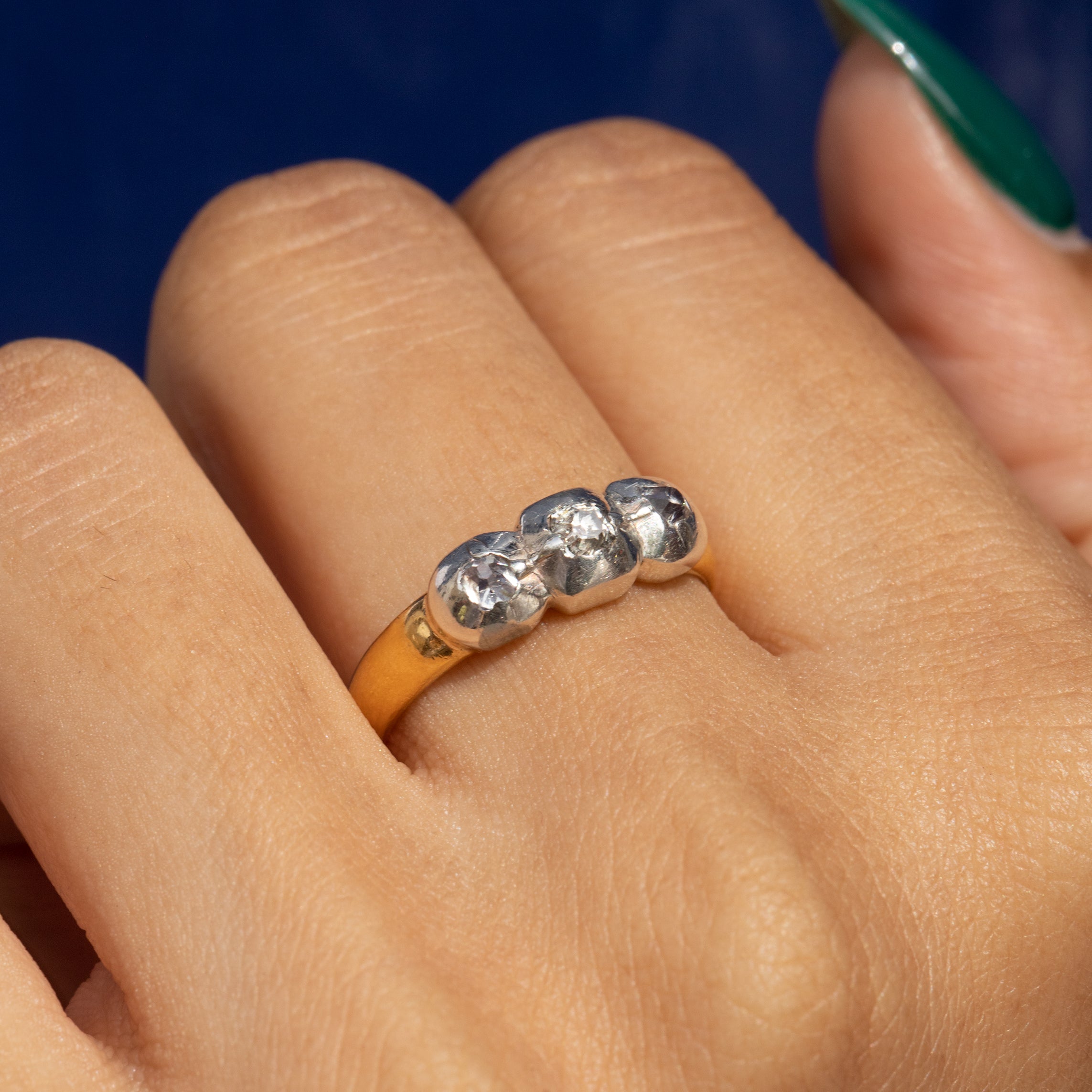 アンティーク 18ct ゴールド テーブルカット ダイヤモンド スリーストーン リング