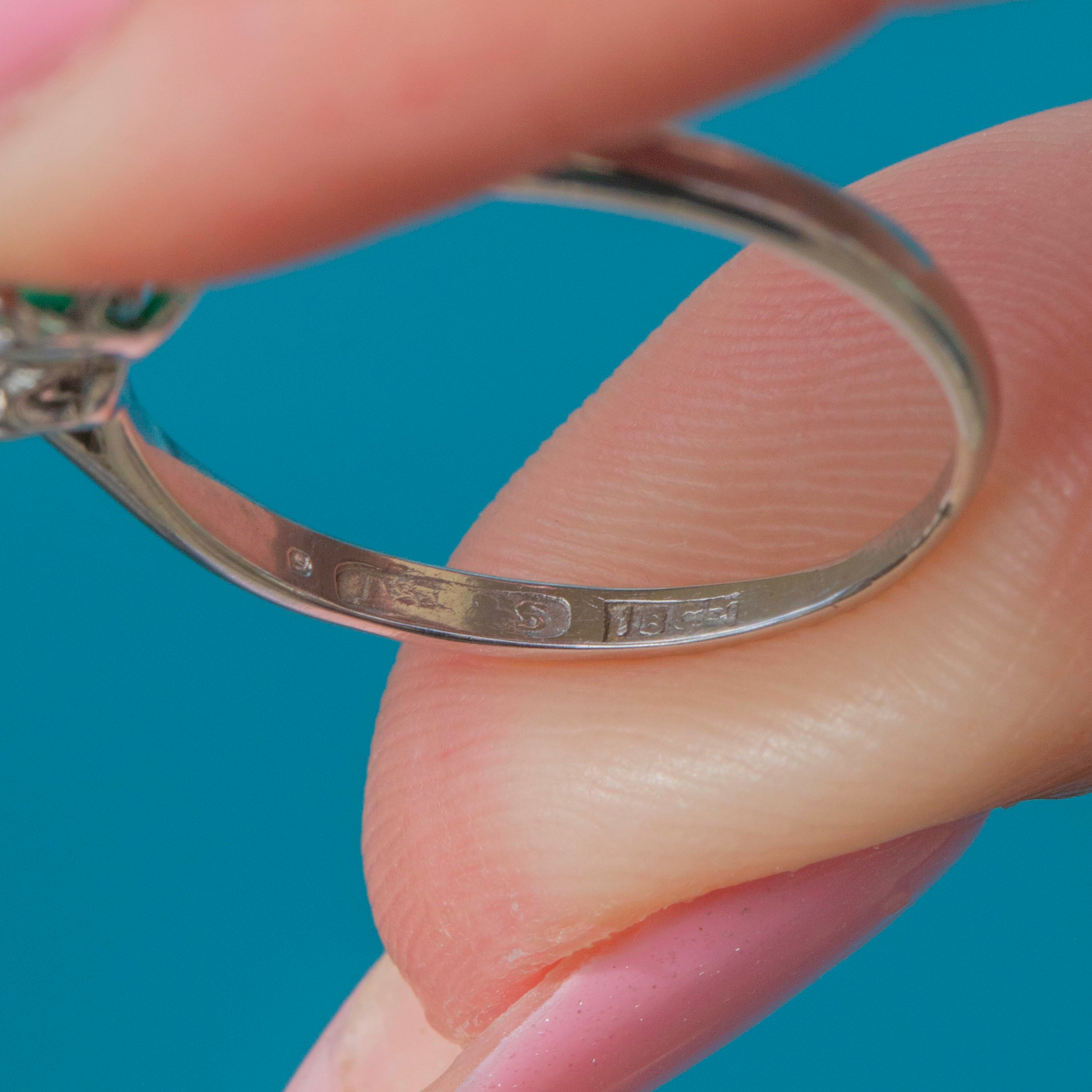 MATERIALS: Tests 18ct White Gold, Emerald (0.70ct), Diamond (0.80ct)