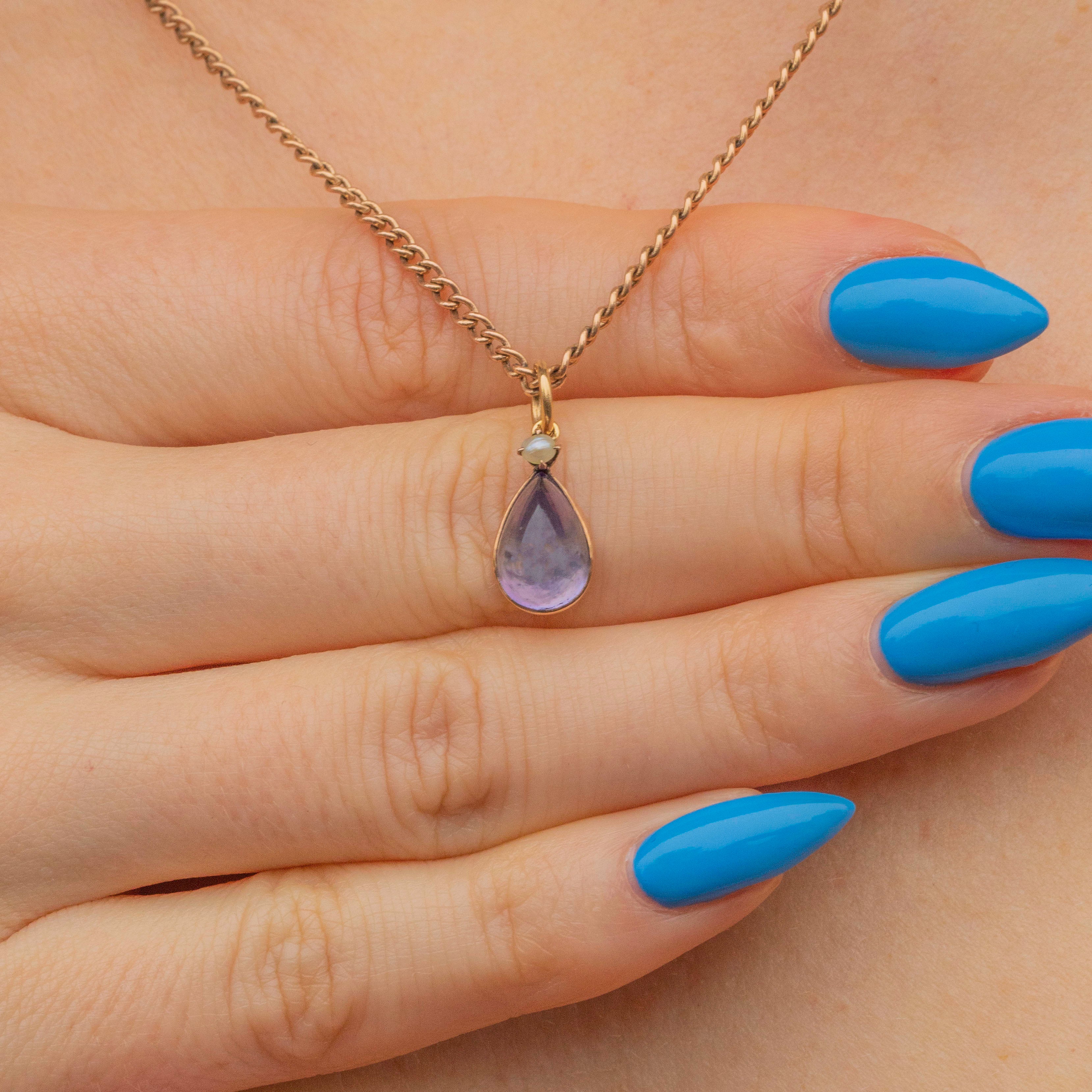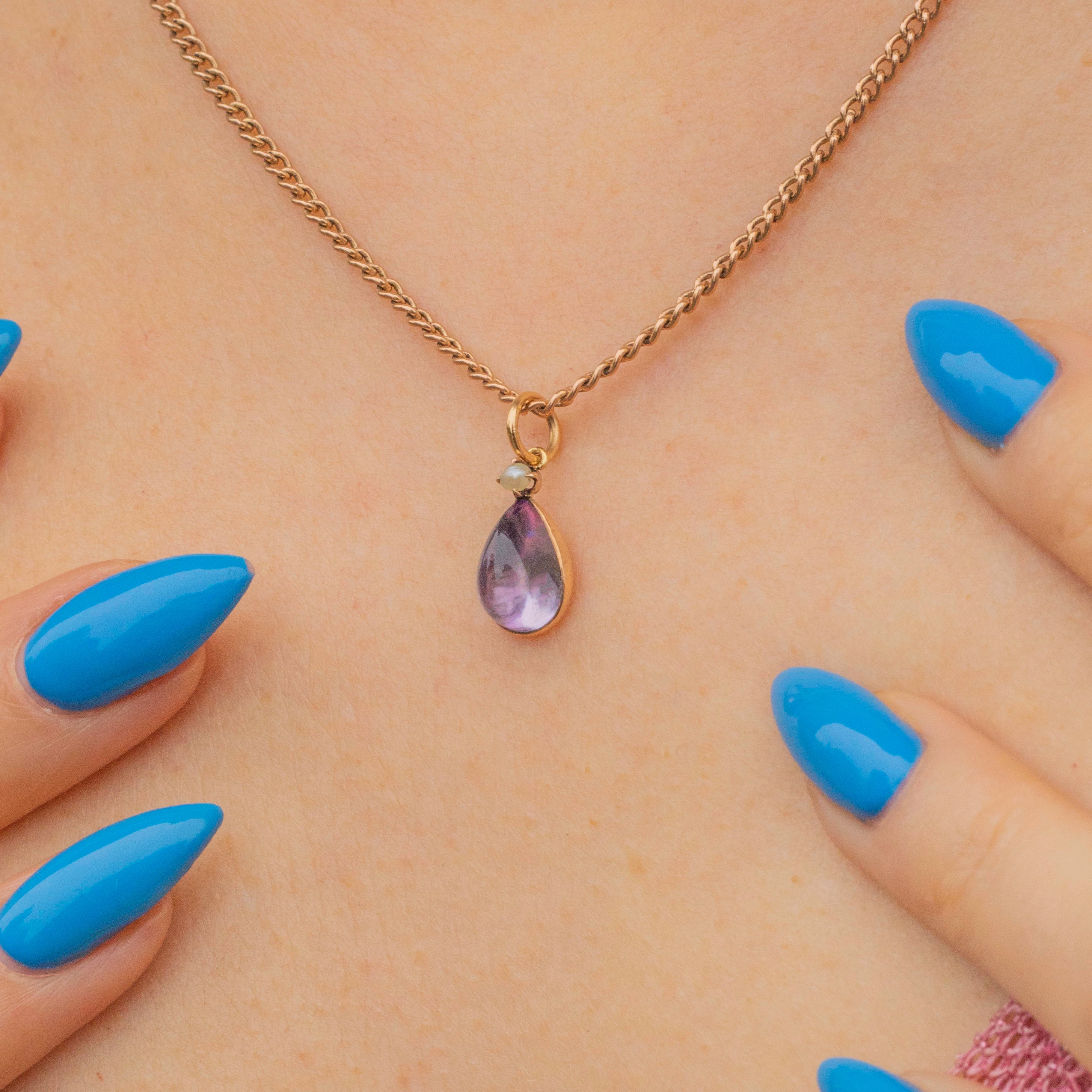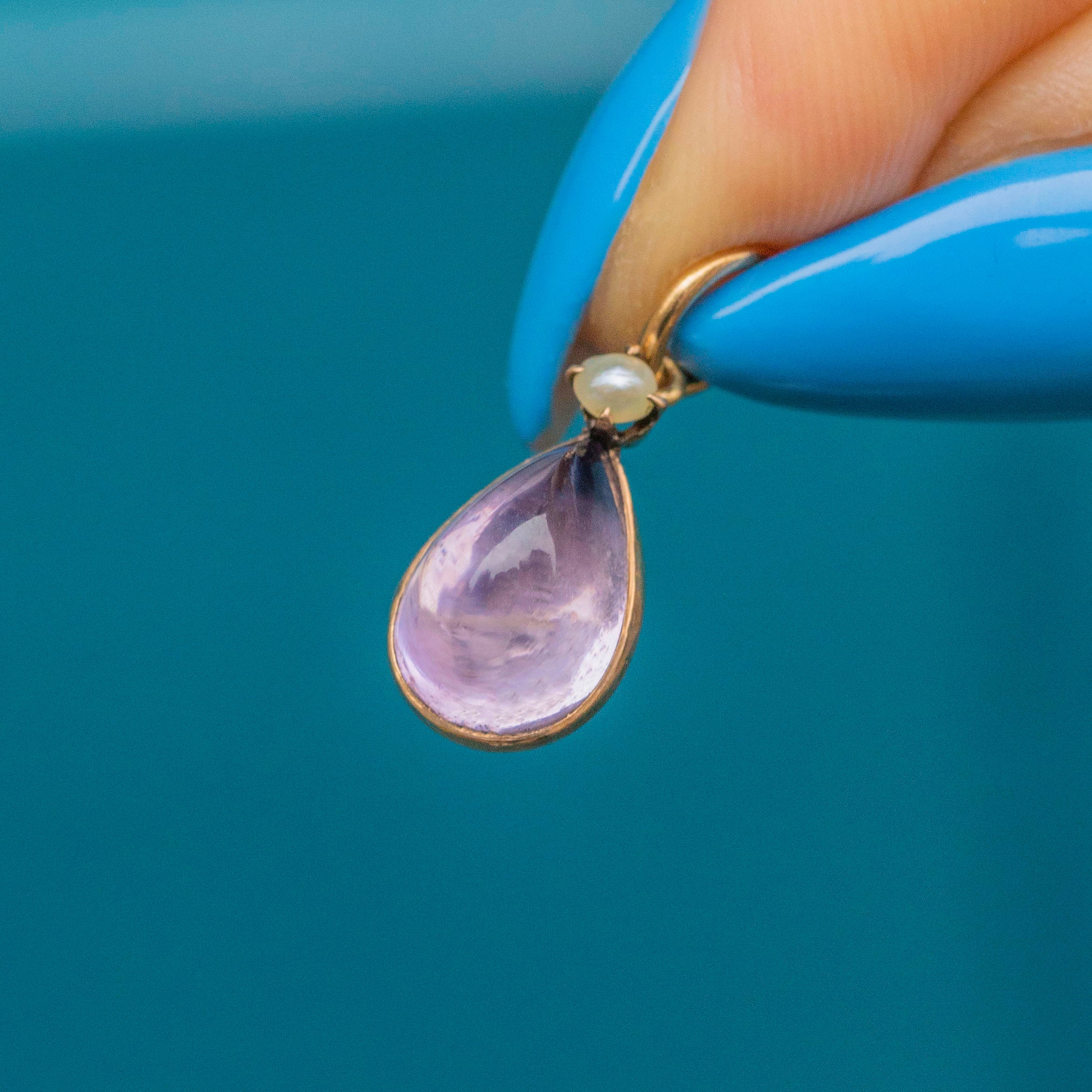 Antique 9ct Amethyst Sugarloaf Pear Pearl Charm, 1.84ct