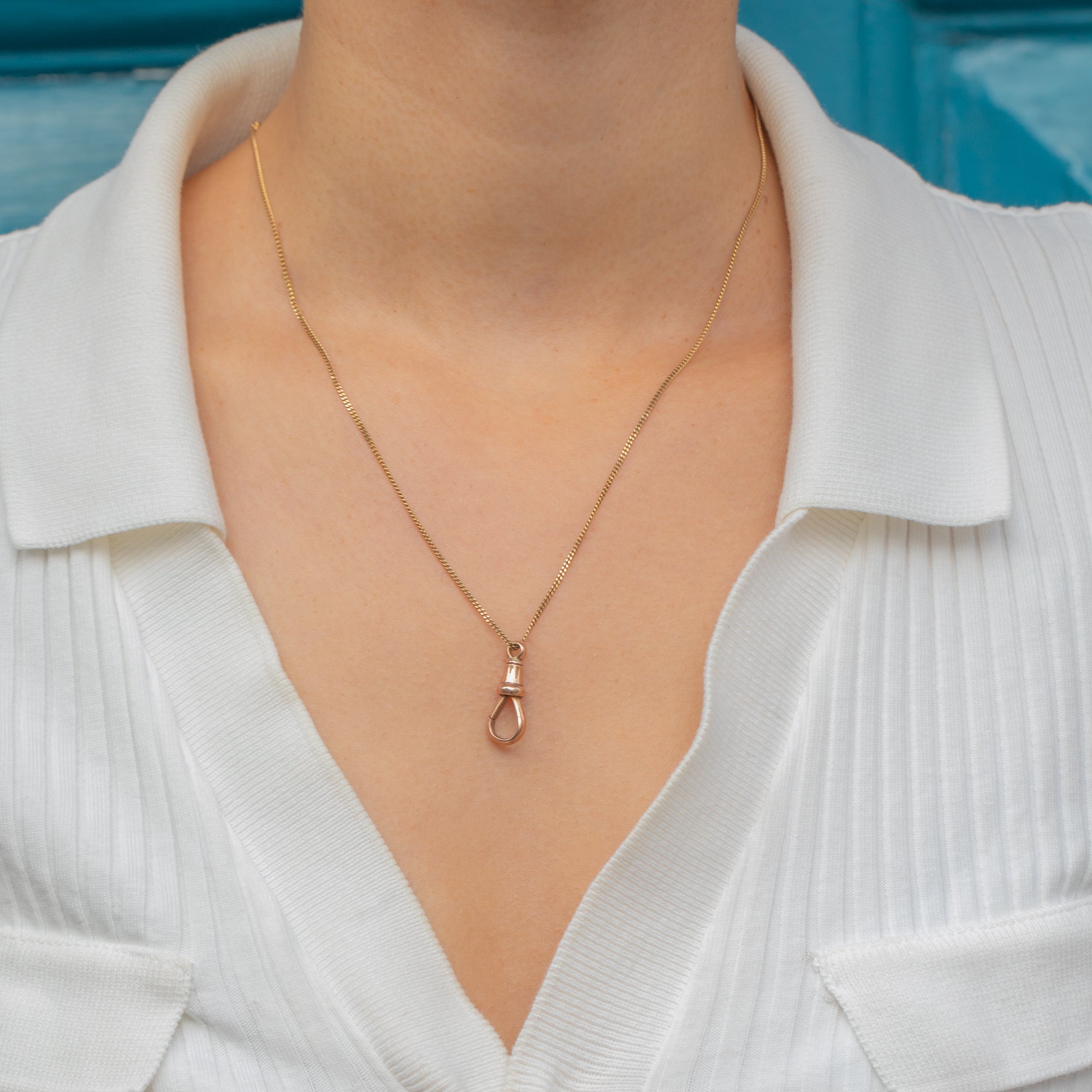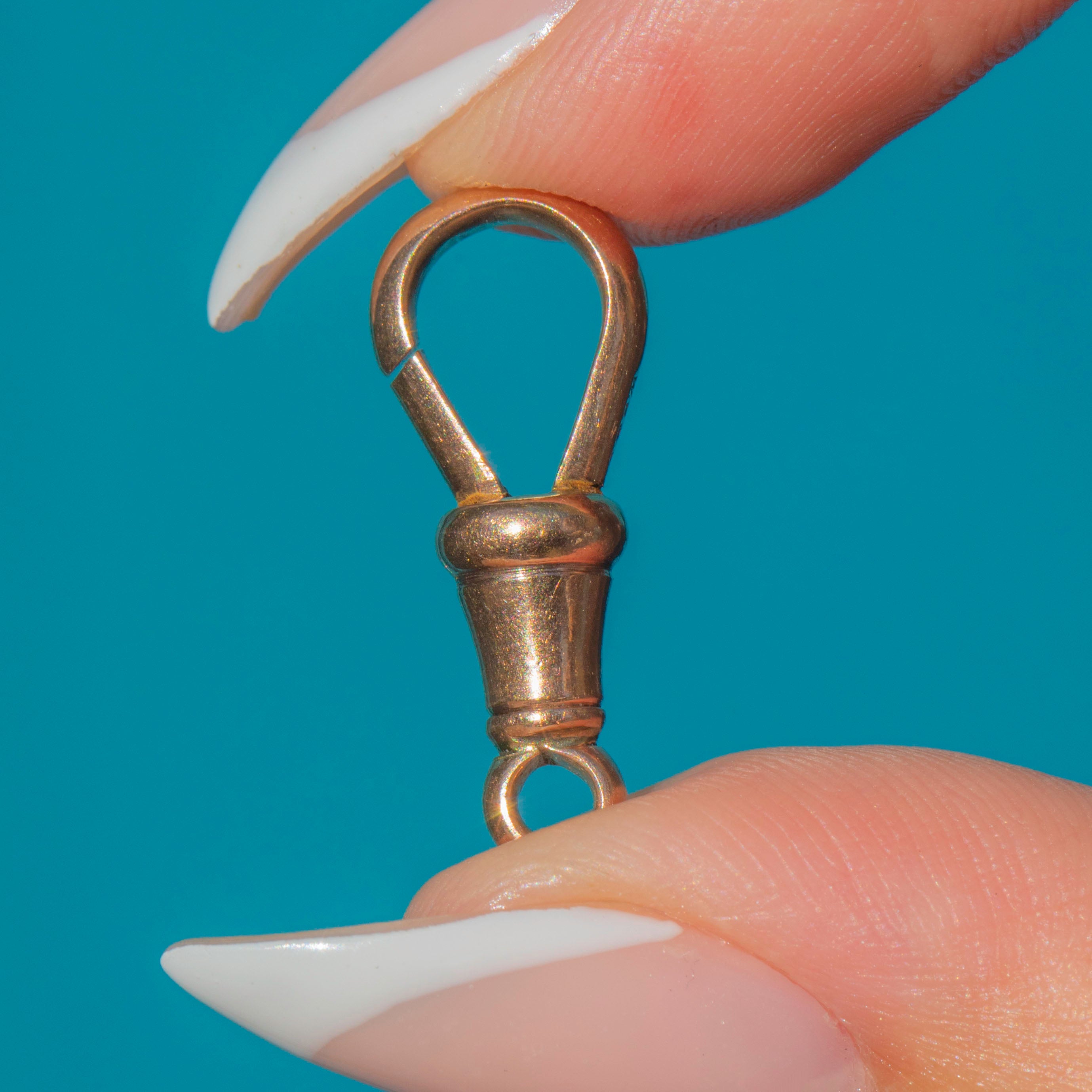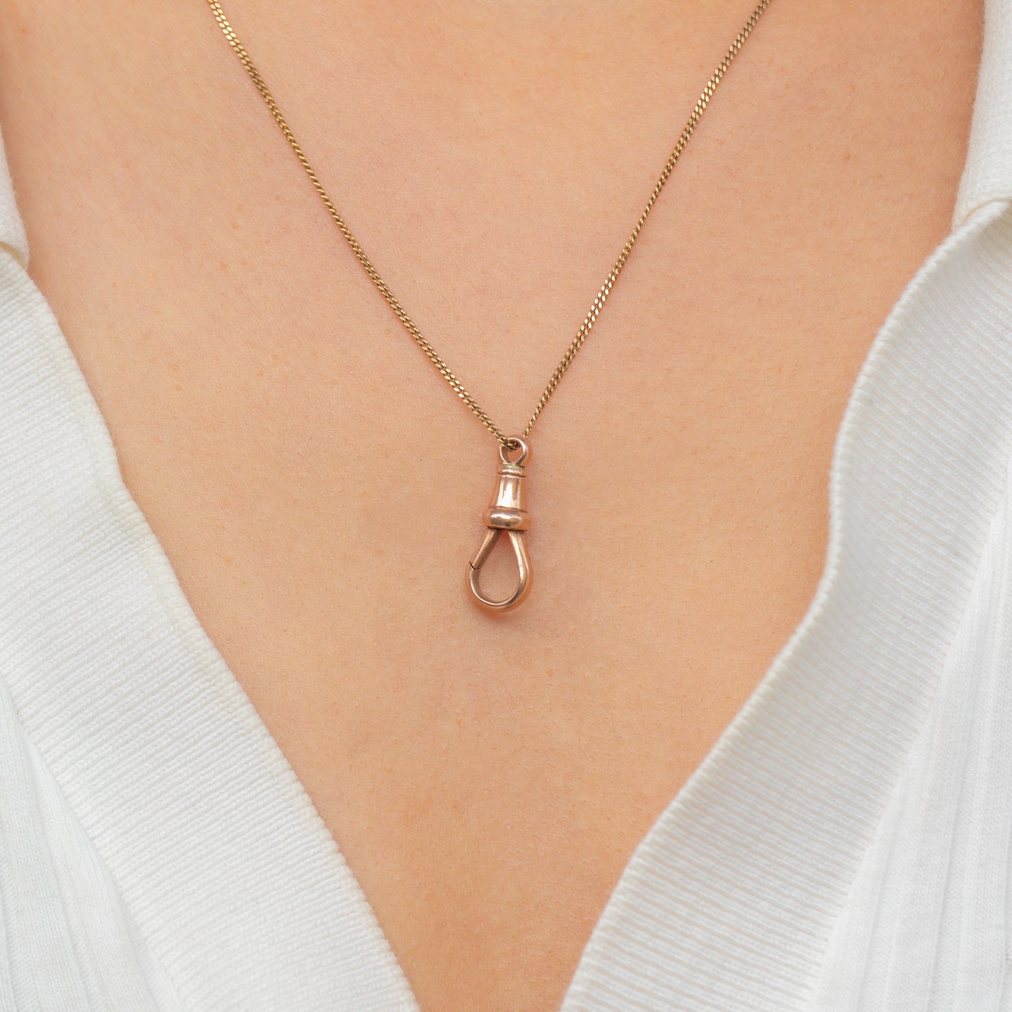 This Antique Victorian dog clip is crafted in solid 9ct Gold, a practical and highly collectible accessory from the 19th century. With its warm Gold tone and timeless design, it can be used to attach charms, fobs, or pendants to chains, or worn as part of a layered necklace look. A versatile piece that combines both function and antique character.