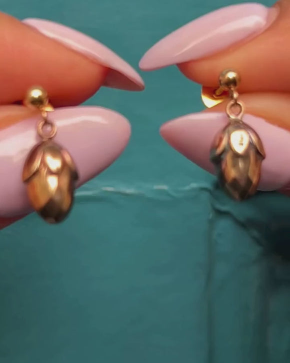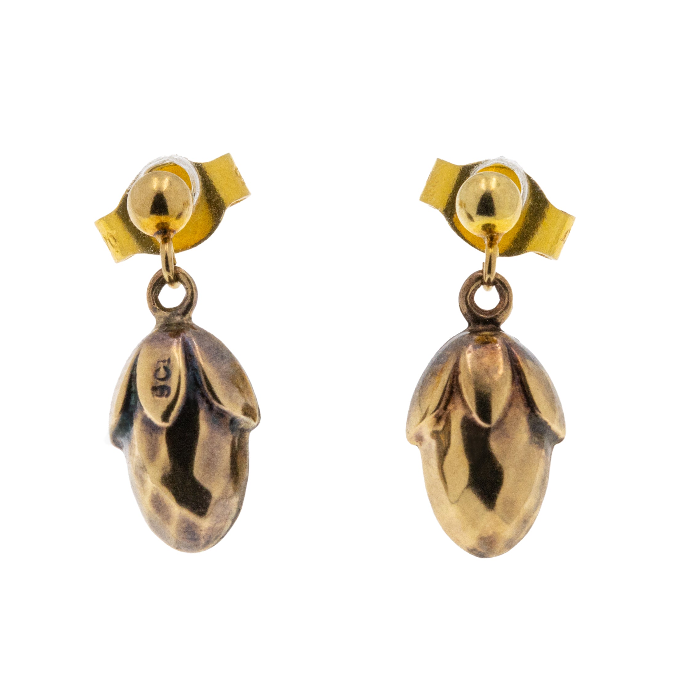 アンティーク 9ct ゴールド ドングリ ドロップ イヤリング
