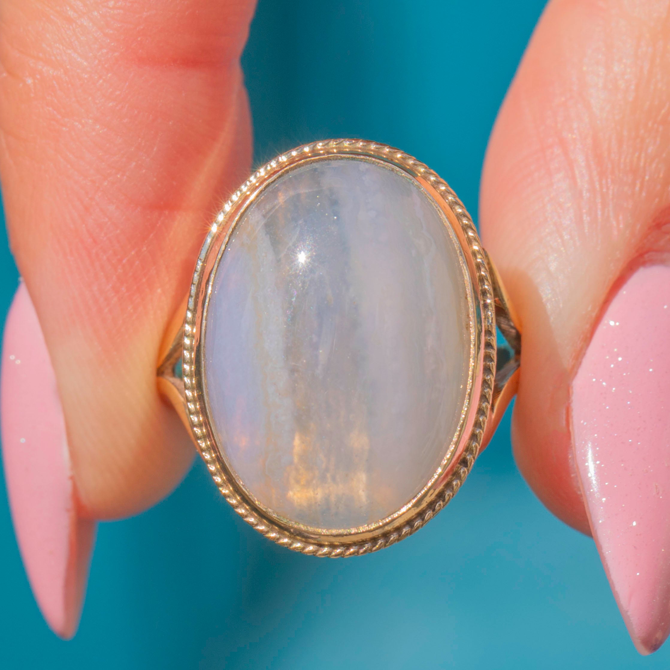 VERY GOOD-EXCELLENT: This antique 9ct Gold Agate dress ring is in very good-excellent condition. Her Agate is beautiful, displaying an array of soft colours and detail. There is a slight wobble to the stone within the bezel, though she is secure. In great condition, she's a must-have piece!