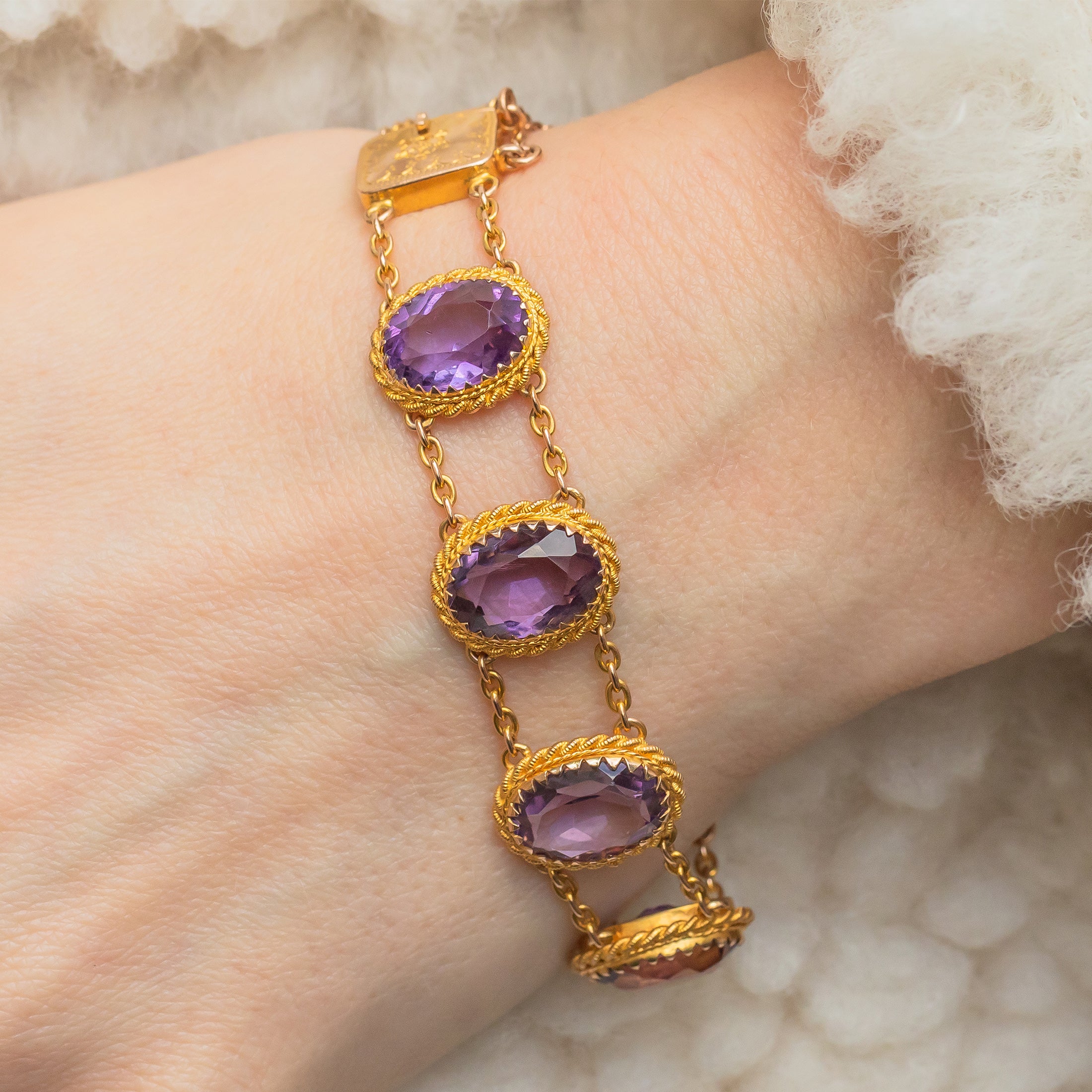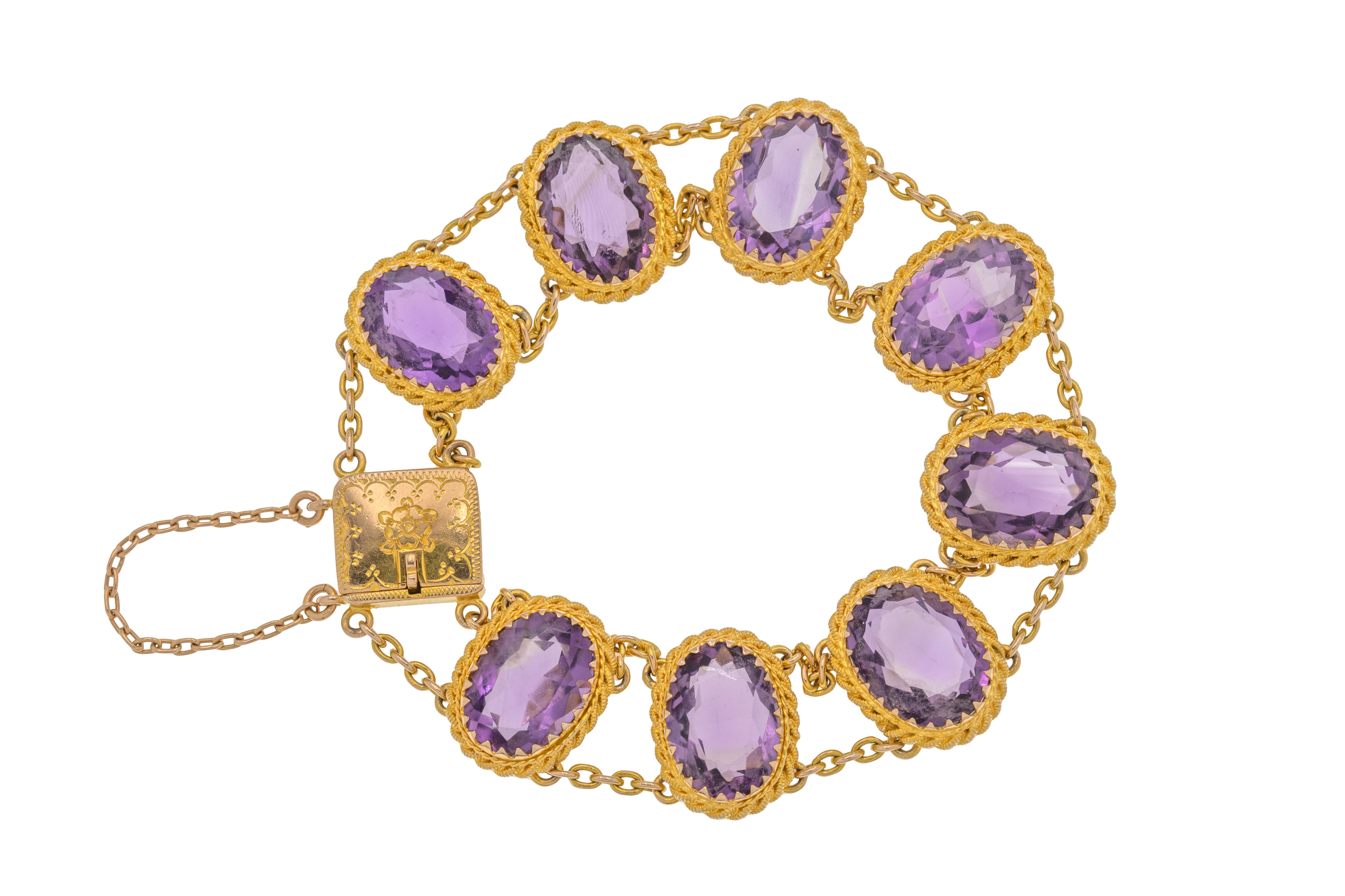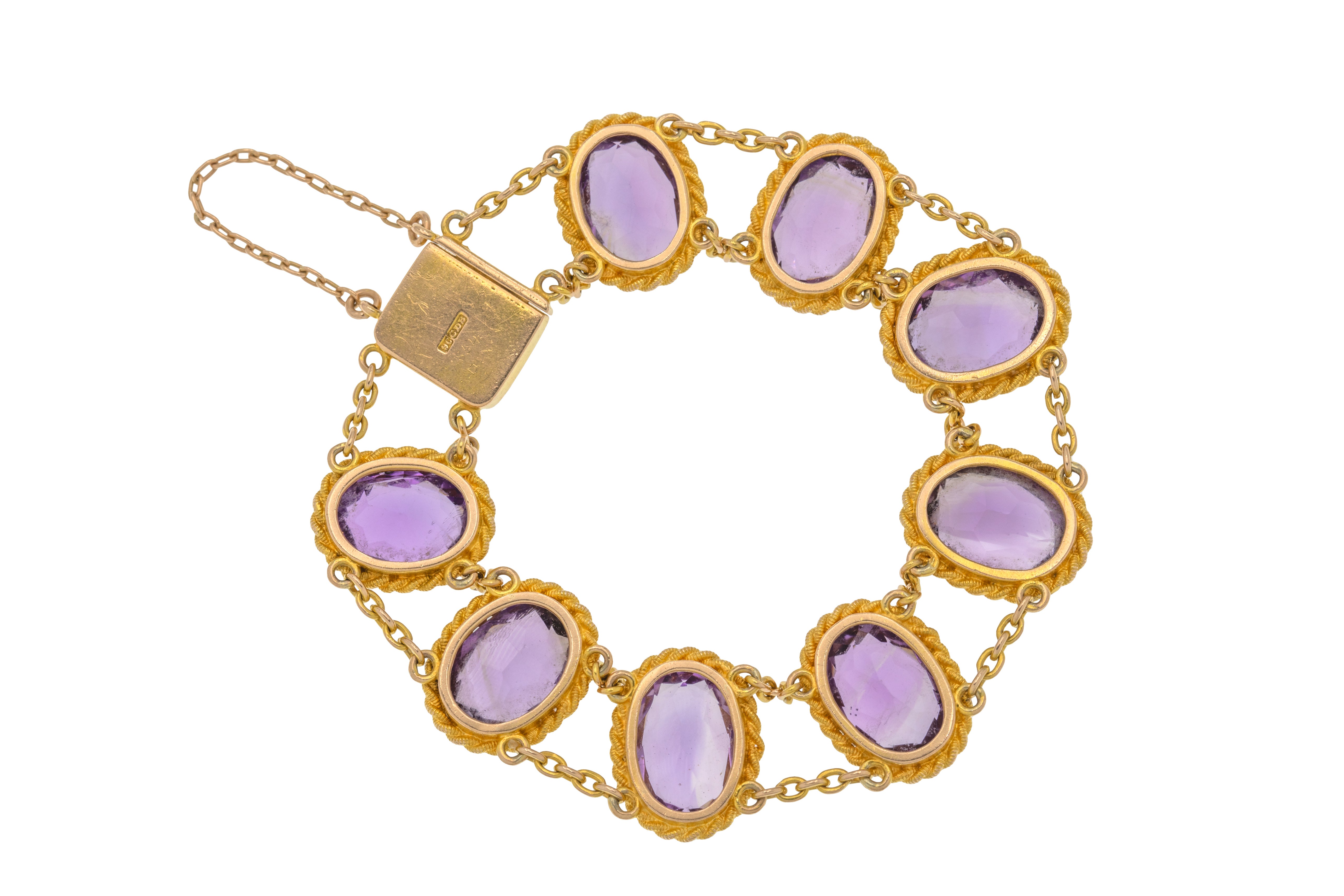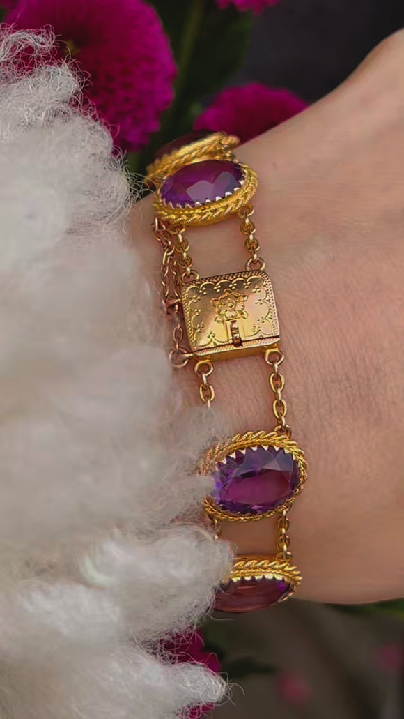 アンティーク 9ct ゴールド アメジスト ブレスレット、23.60ct