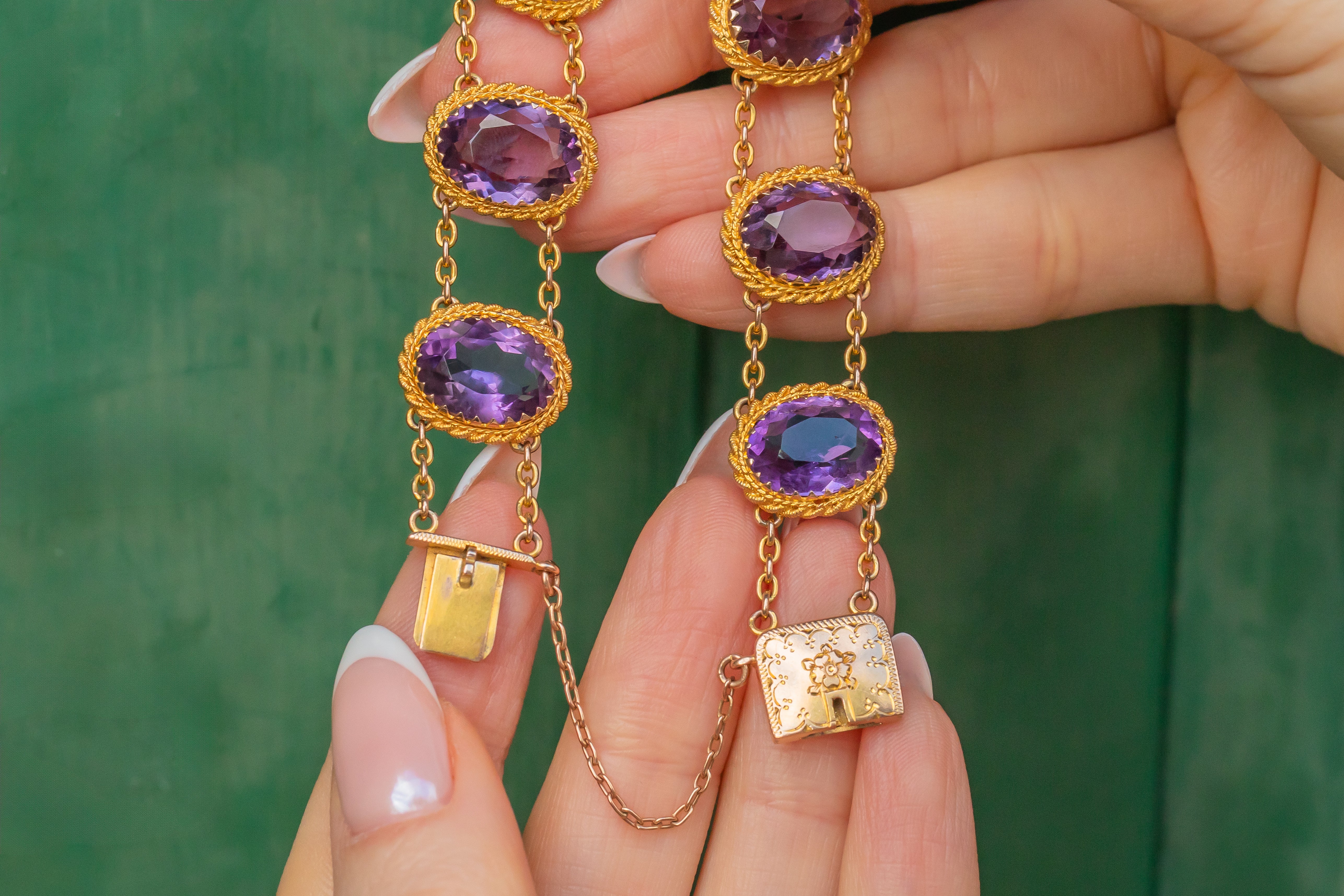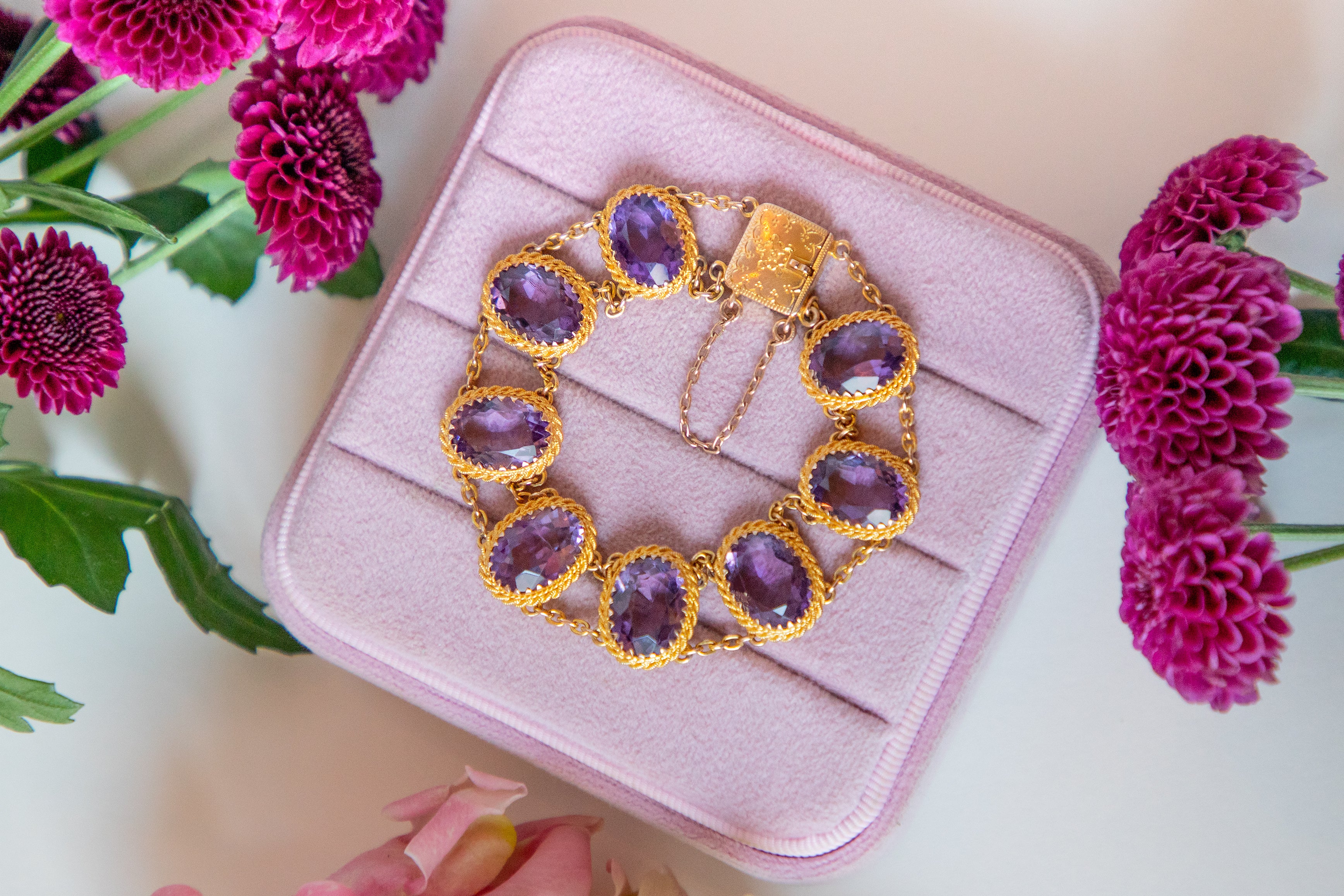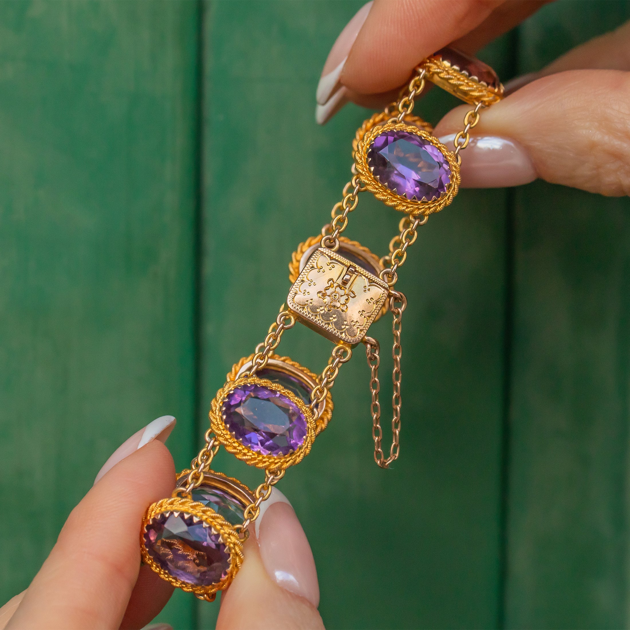 アンティーク 9ct ゴールド アメジスト ブレスレット、23.60ct