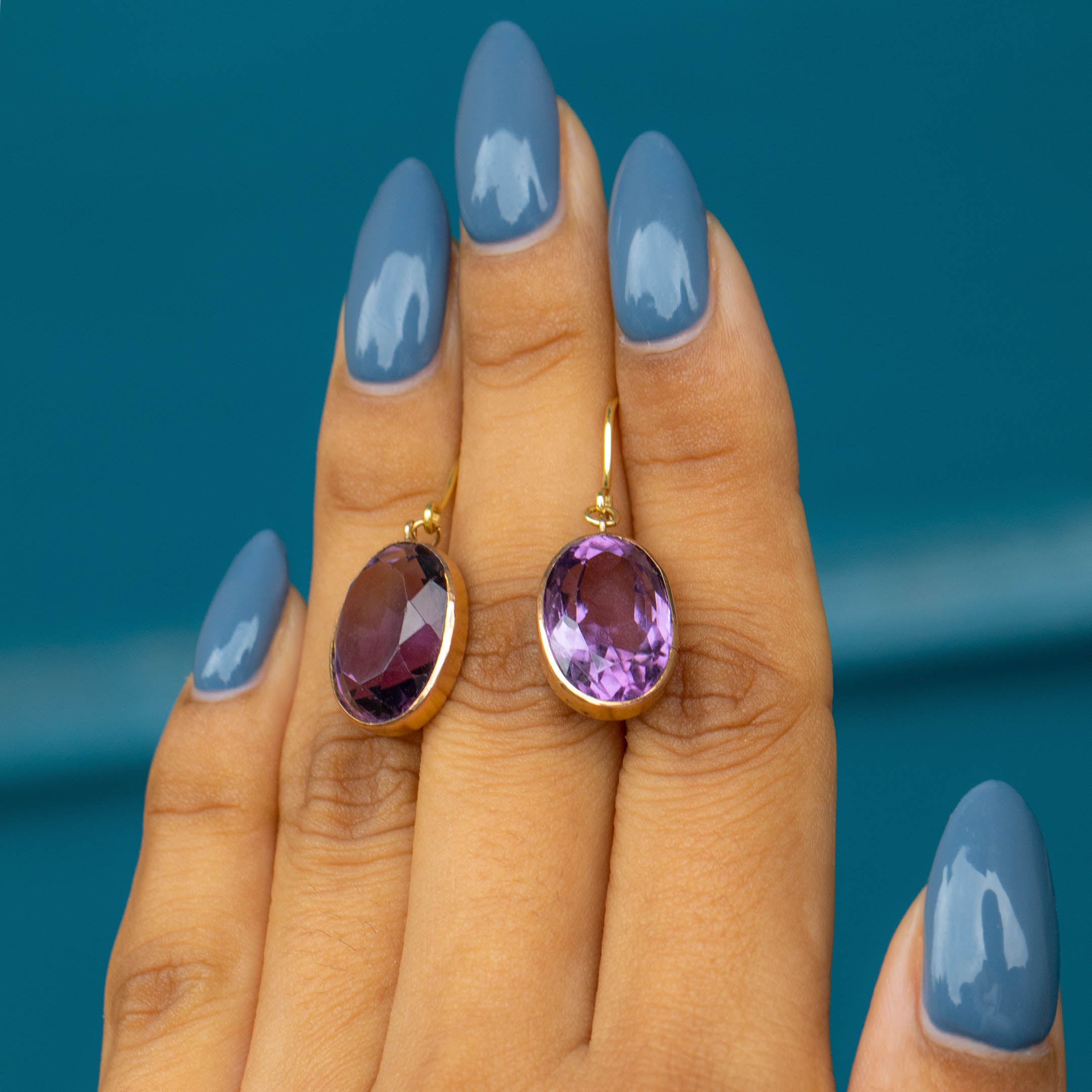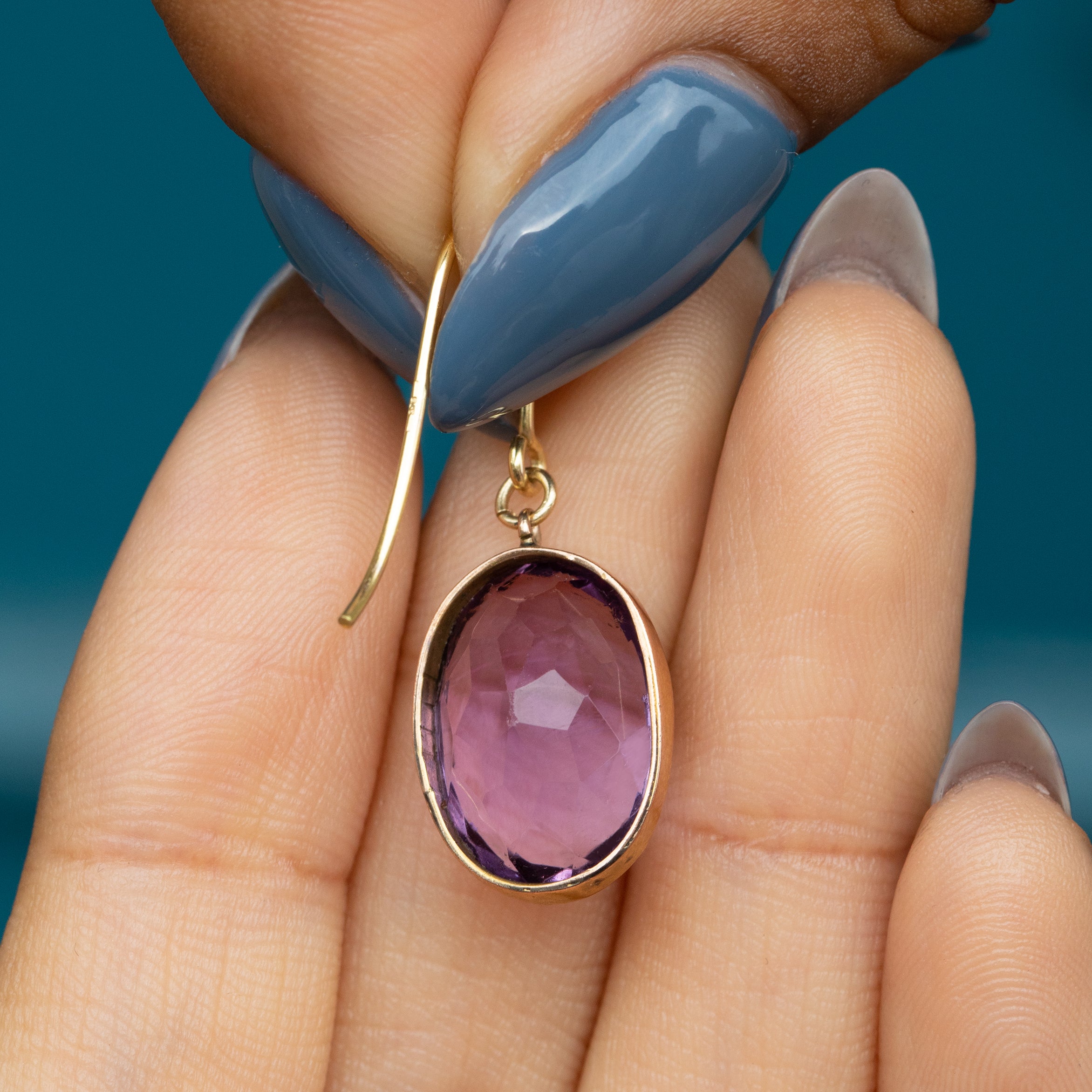 アンティーク 9ct ゴールド アメジスト ドロップ ピアス、11.00ct