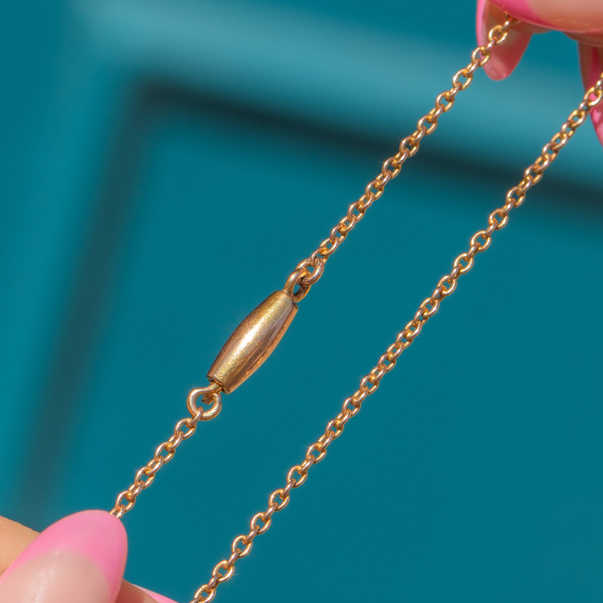 A regal piece of Victorian jewellery, each Amethyst is held securely by decadent 9ct Gold - this antique fringe would be right at home in a princess's jewellery box. Finished with a 9ct Gold barrel clasp, you can wear this spectacular Victorian necklace with ease.