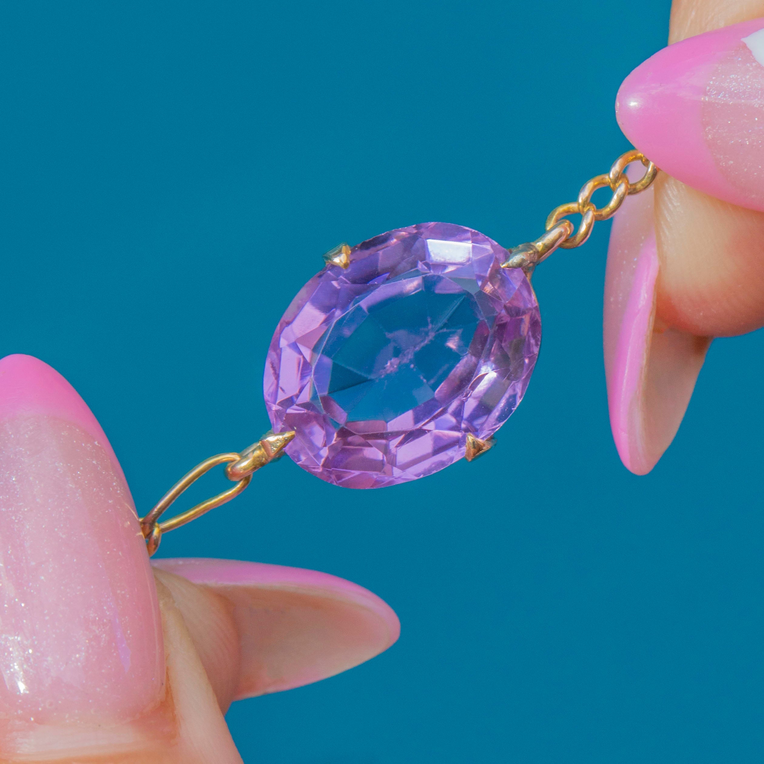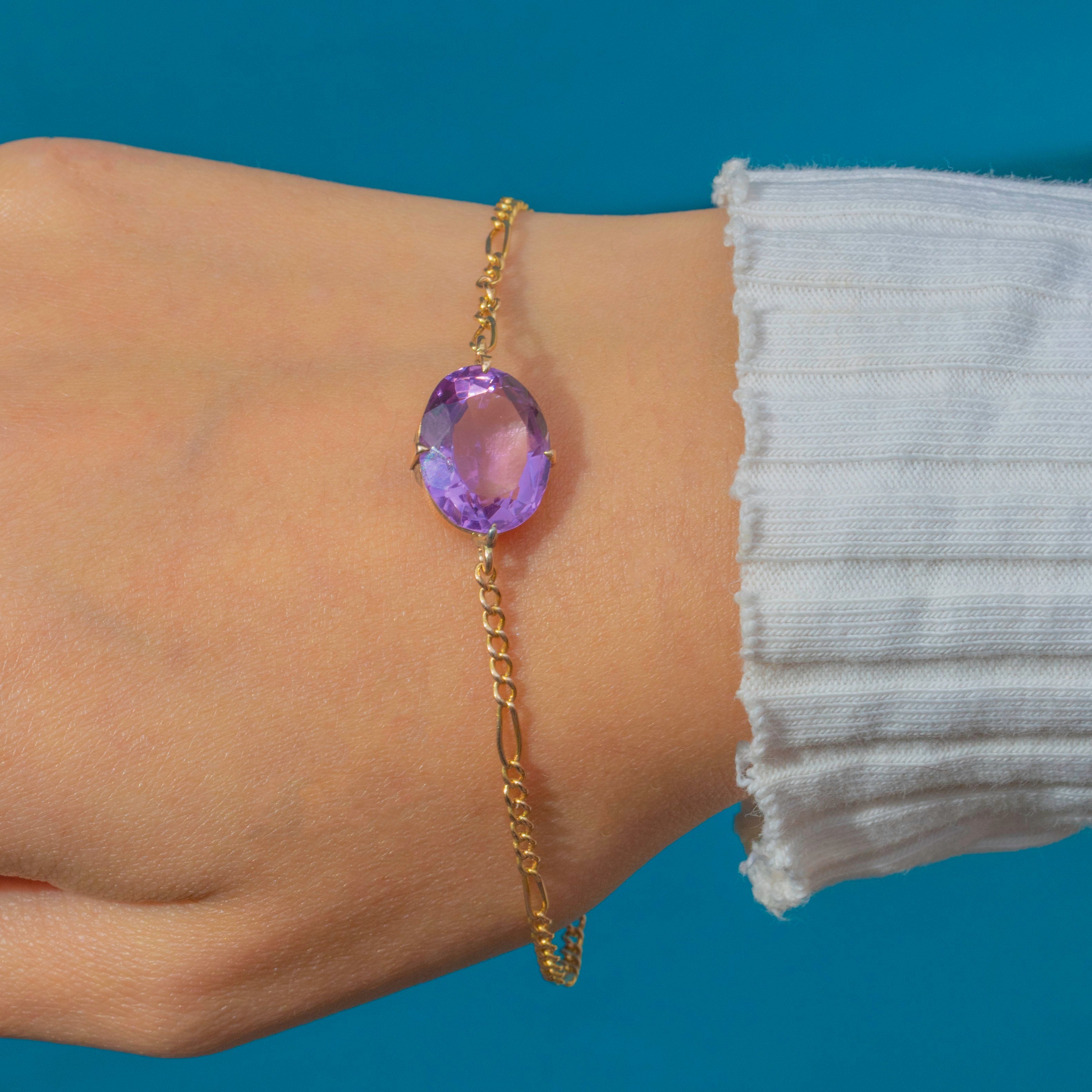 アンティーク 9ct ゴールド アメシスト フィガロ ブレスレット 3.50ct