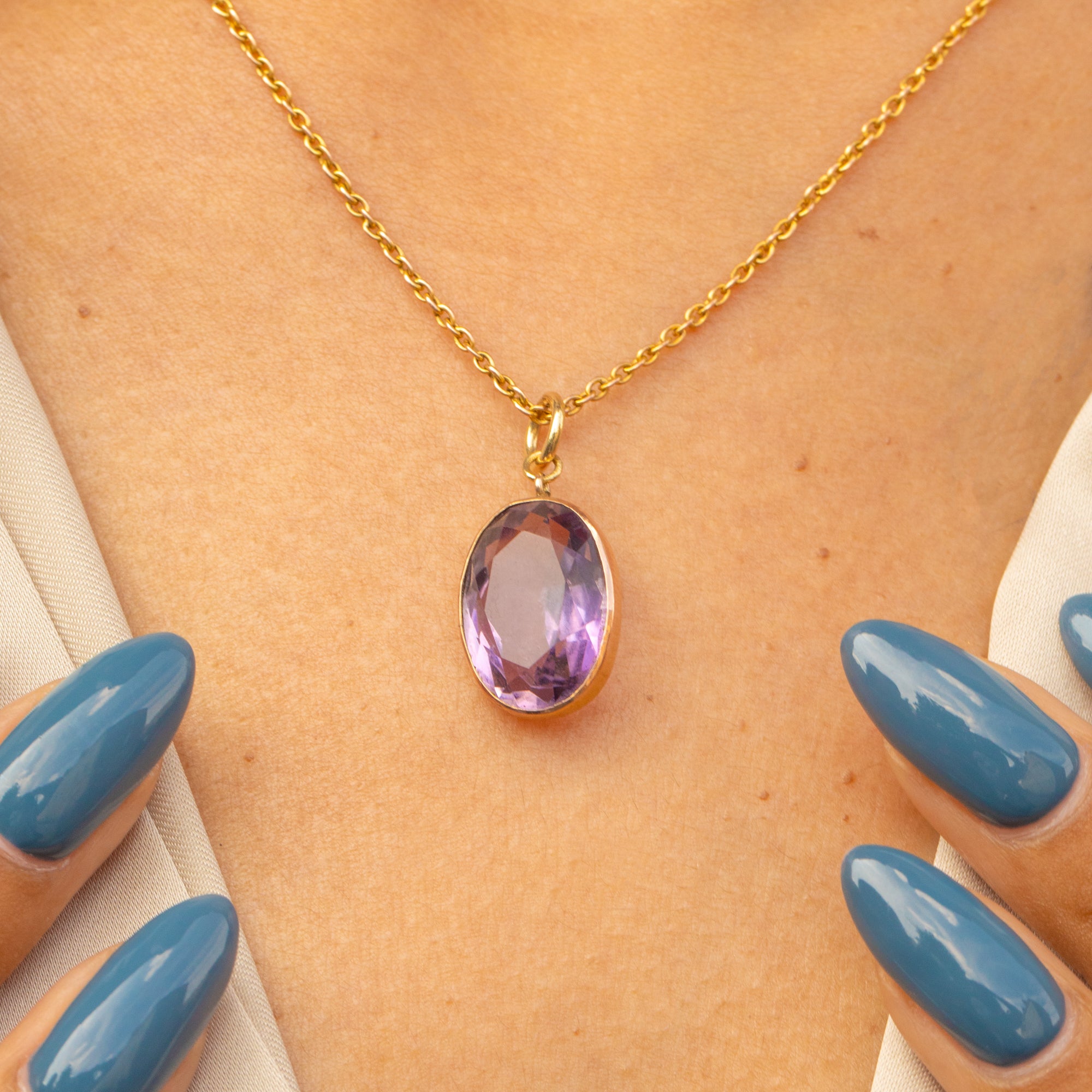 アンティーク 9ct ゴールド アメジスト ペンダント、5.30ct。