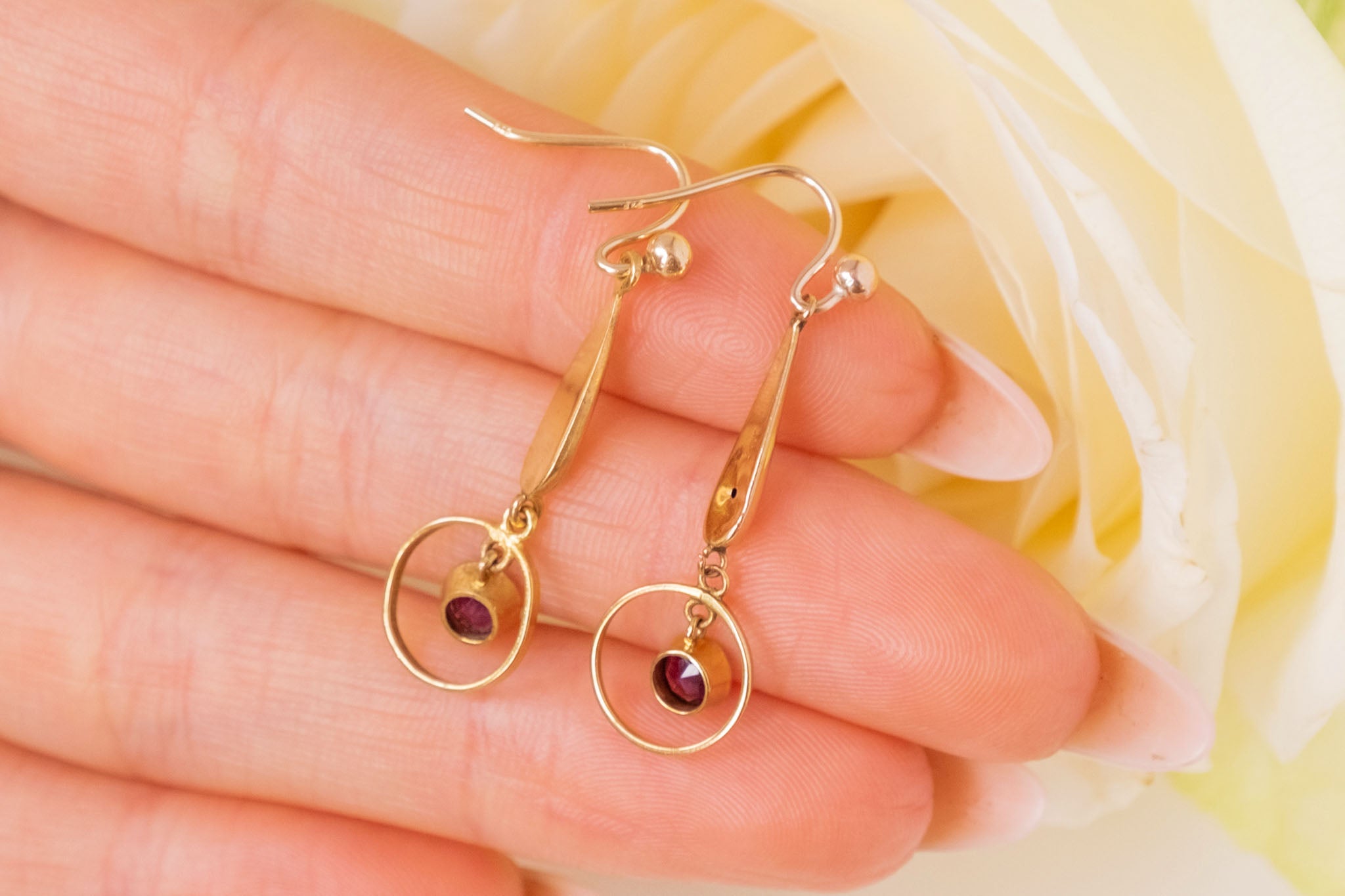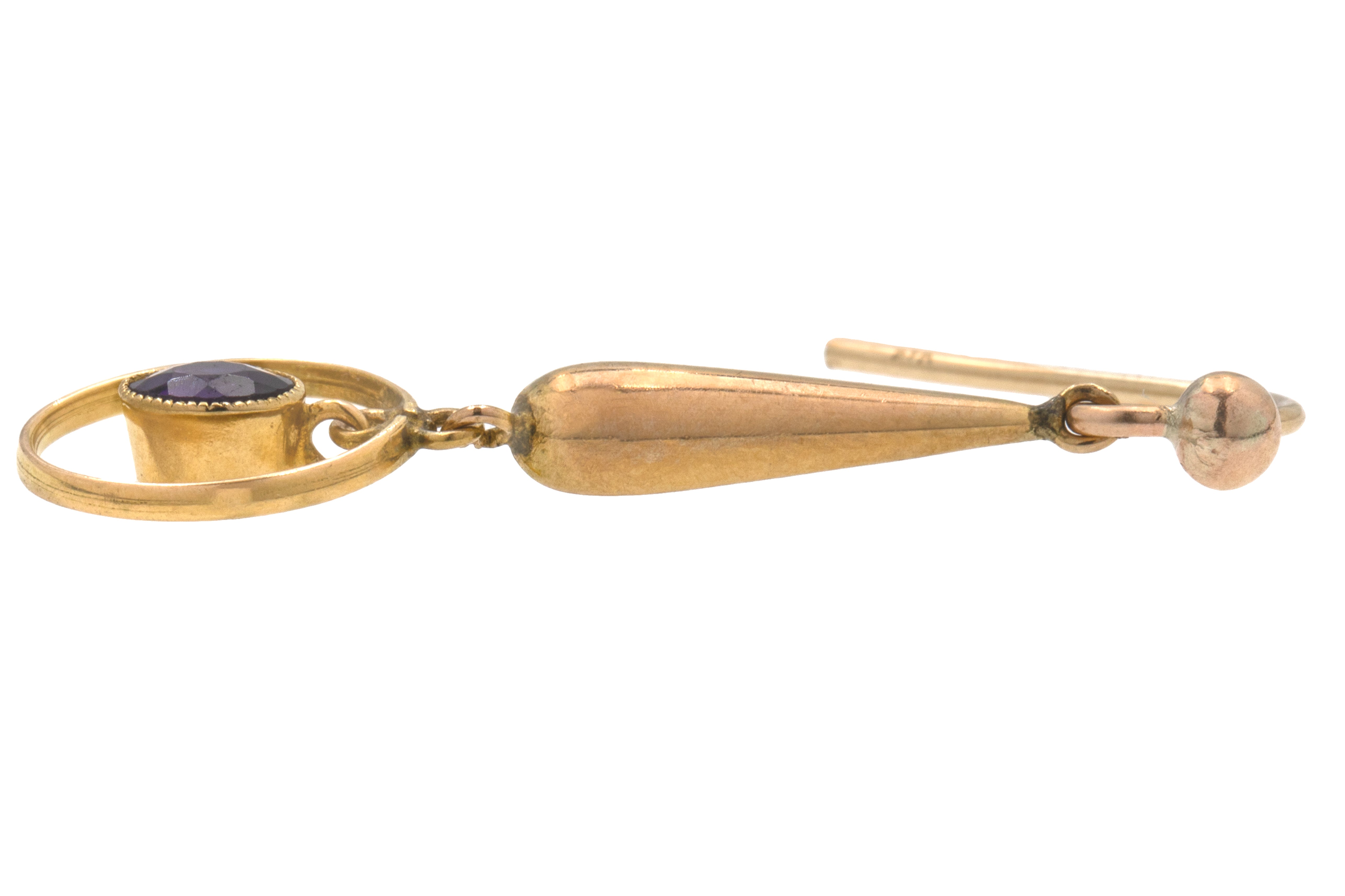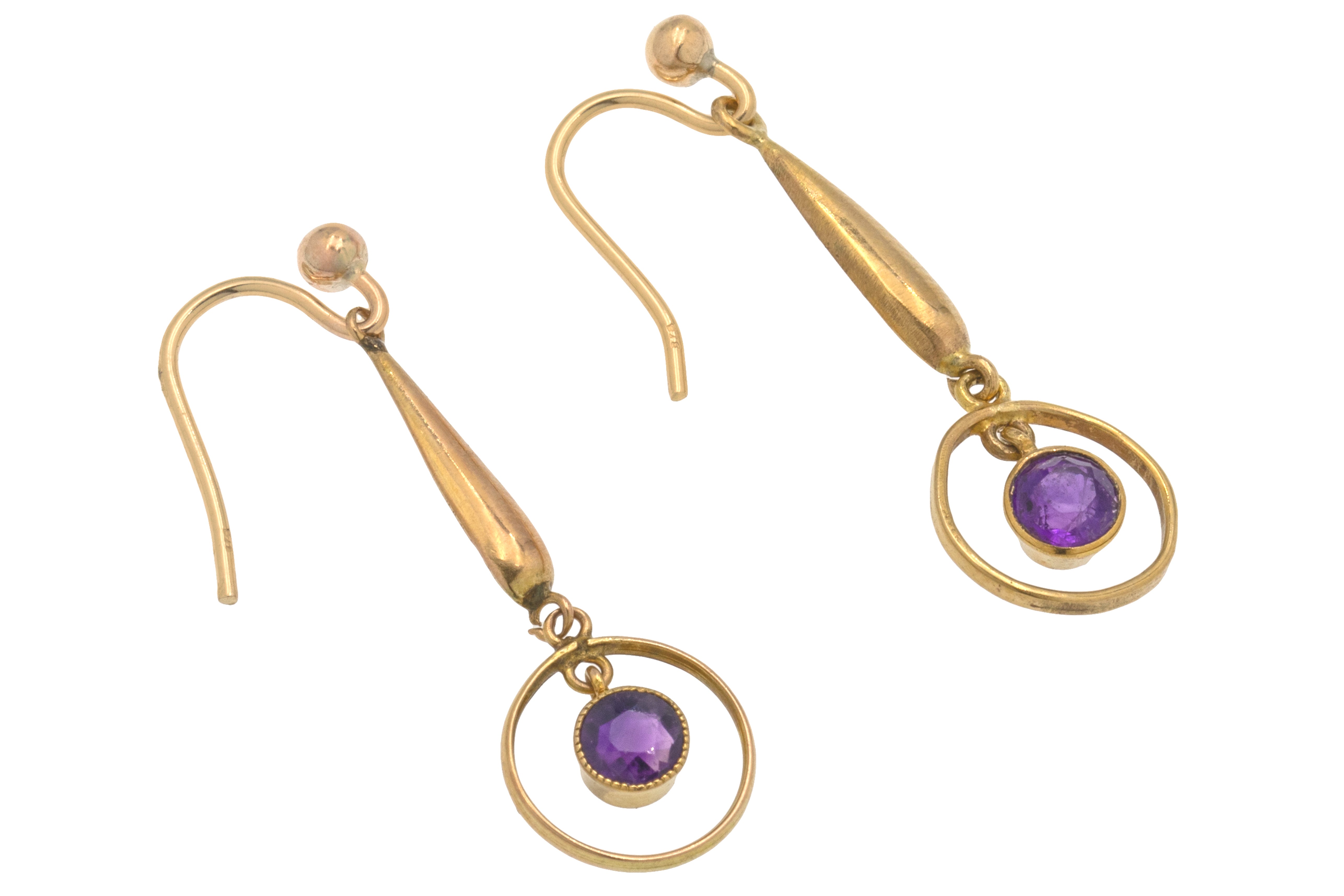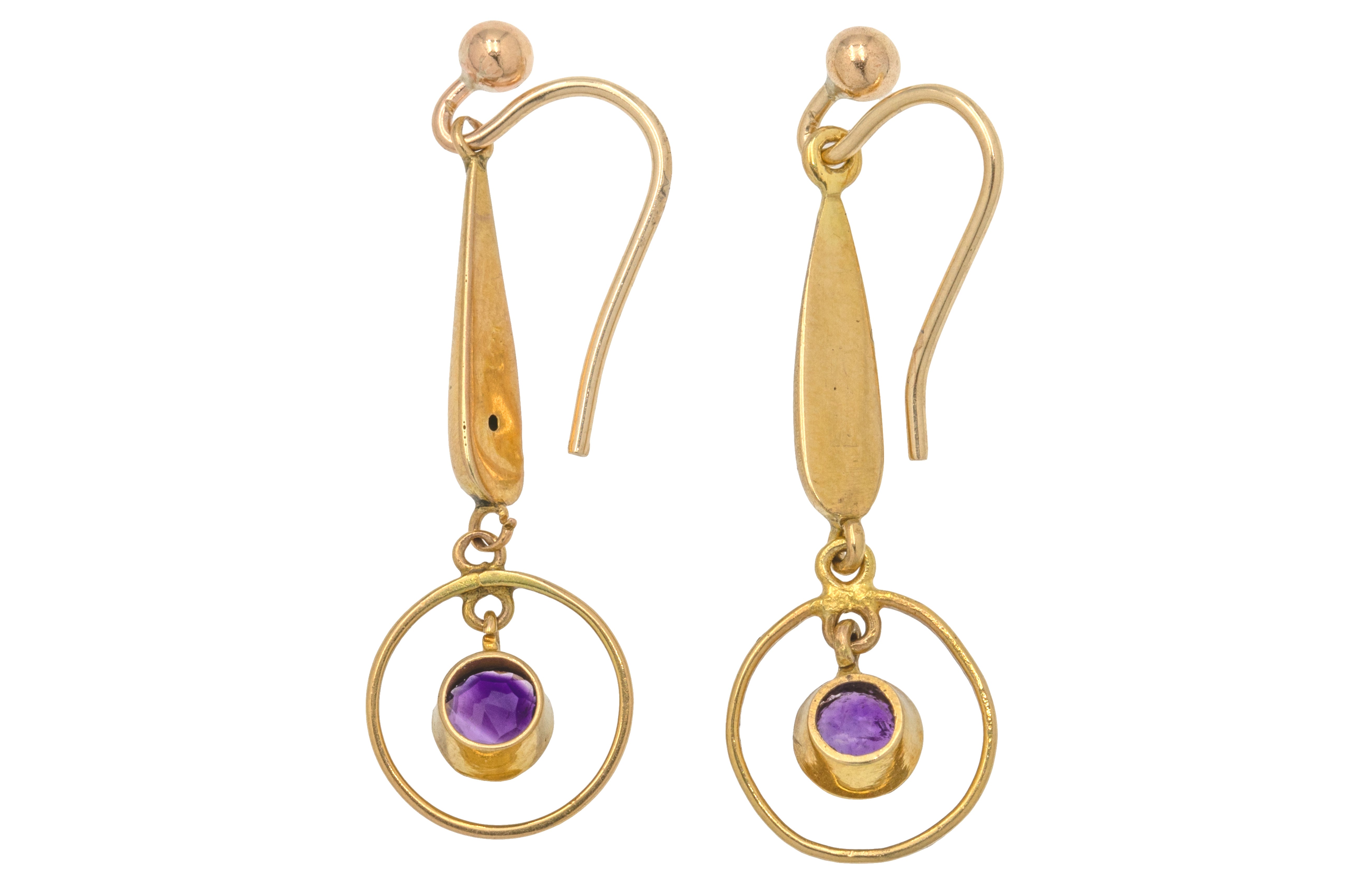 アンティーク 9ct ゴールド アメジスト ターゲット ドロップ イヤリング、0.60ct