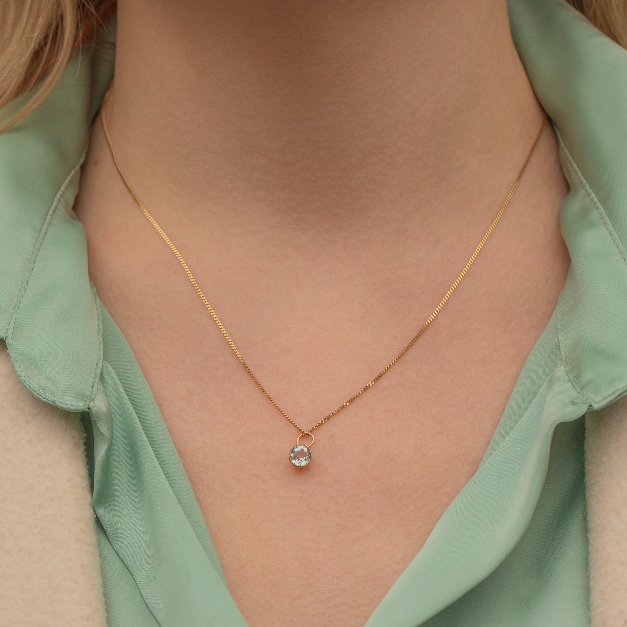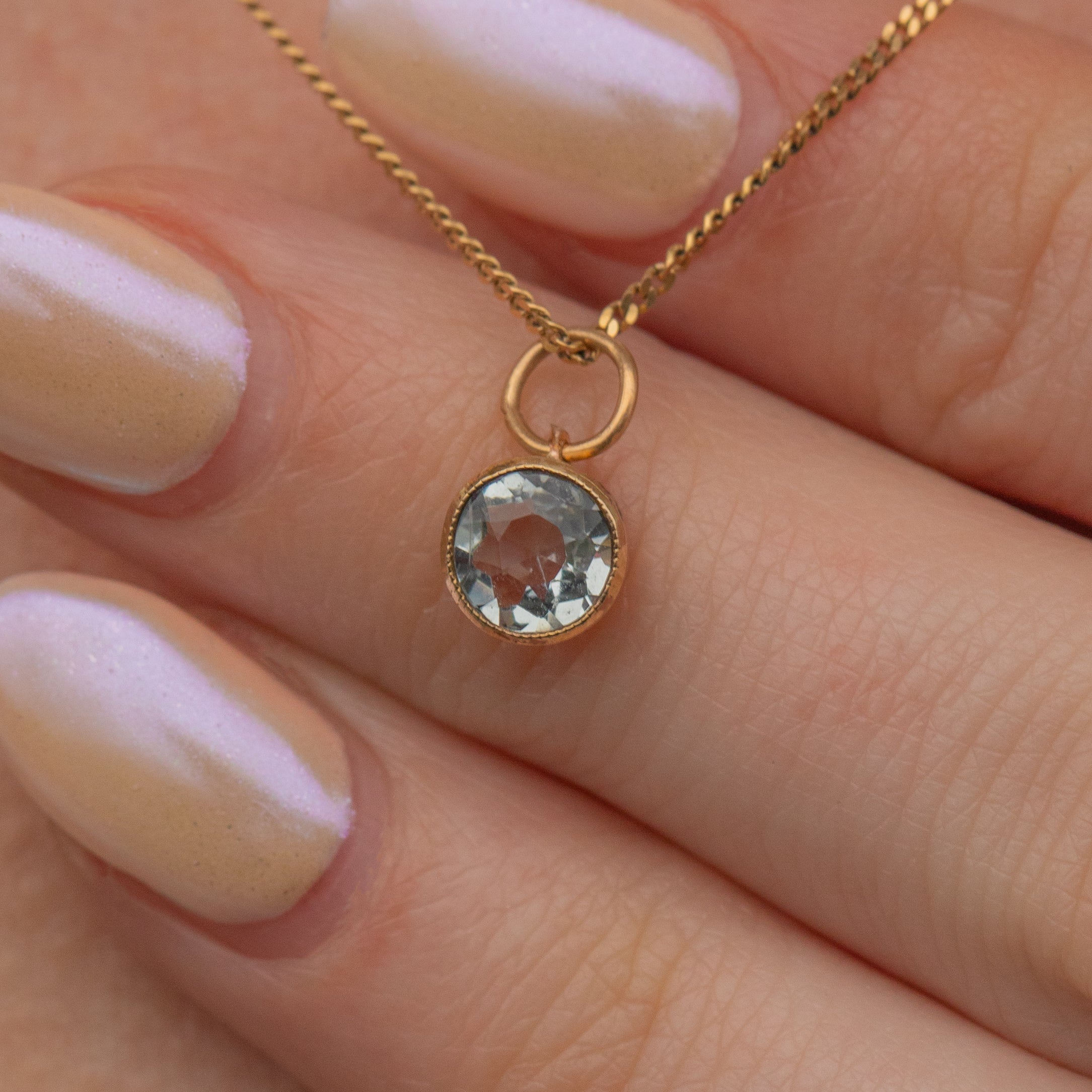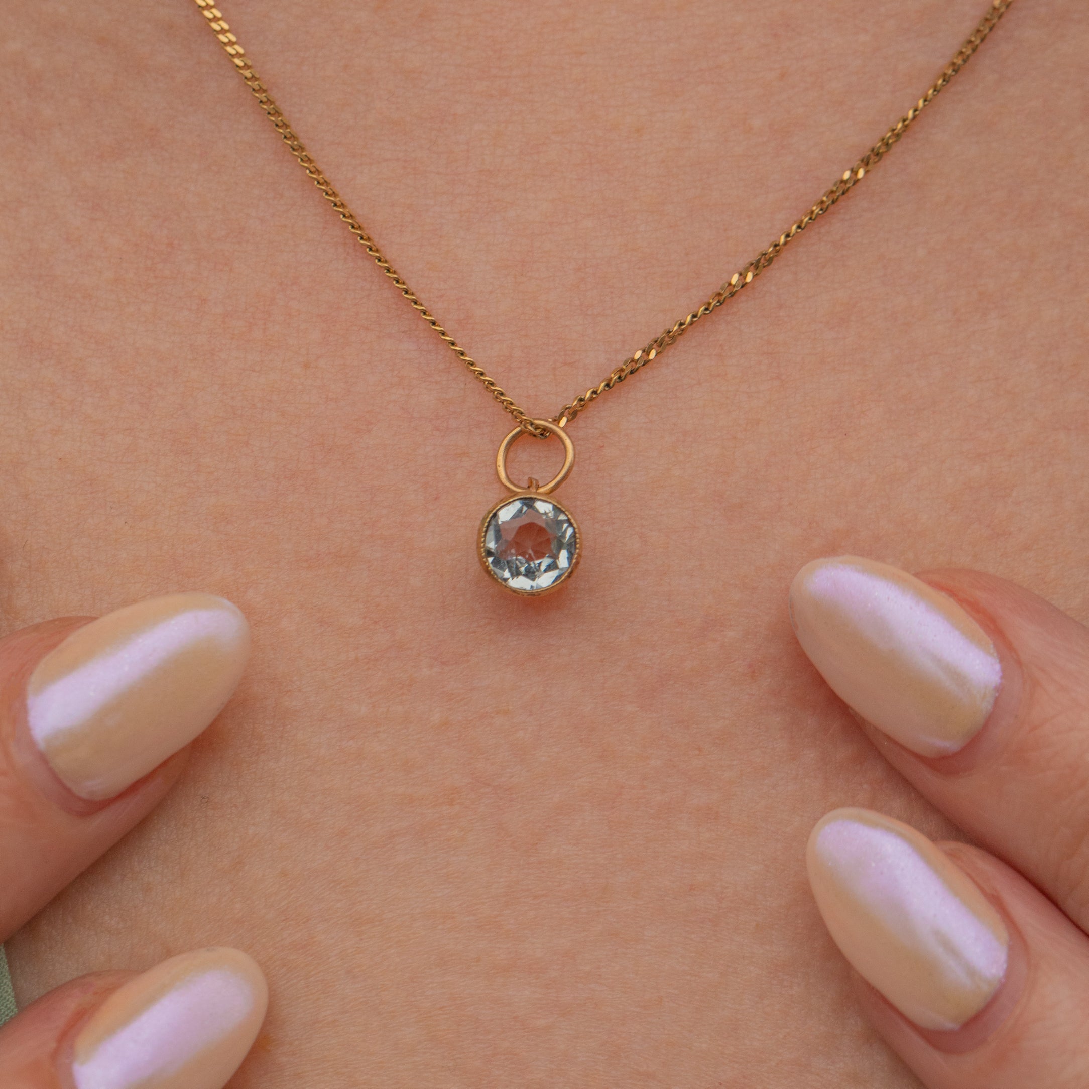 This antique 9ct Gold Aquamarine charm is adorable! Akin to a frozen droplet, this faceted Aquamarine radiates icy-blue hues as she catches the light. She is set within a buttery yellow Gold bezel, its warmth complimenting the cool tones of the Aquamarine.