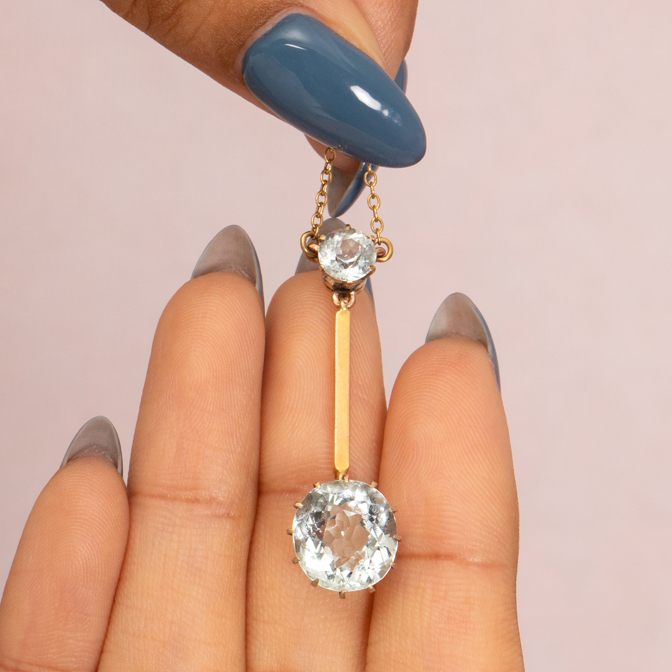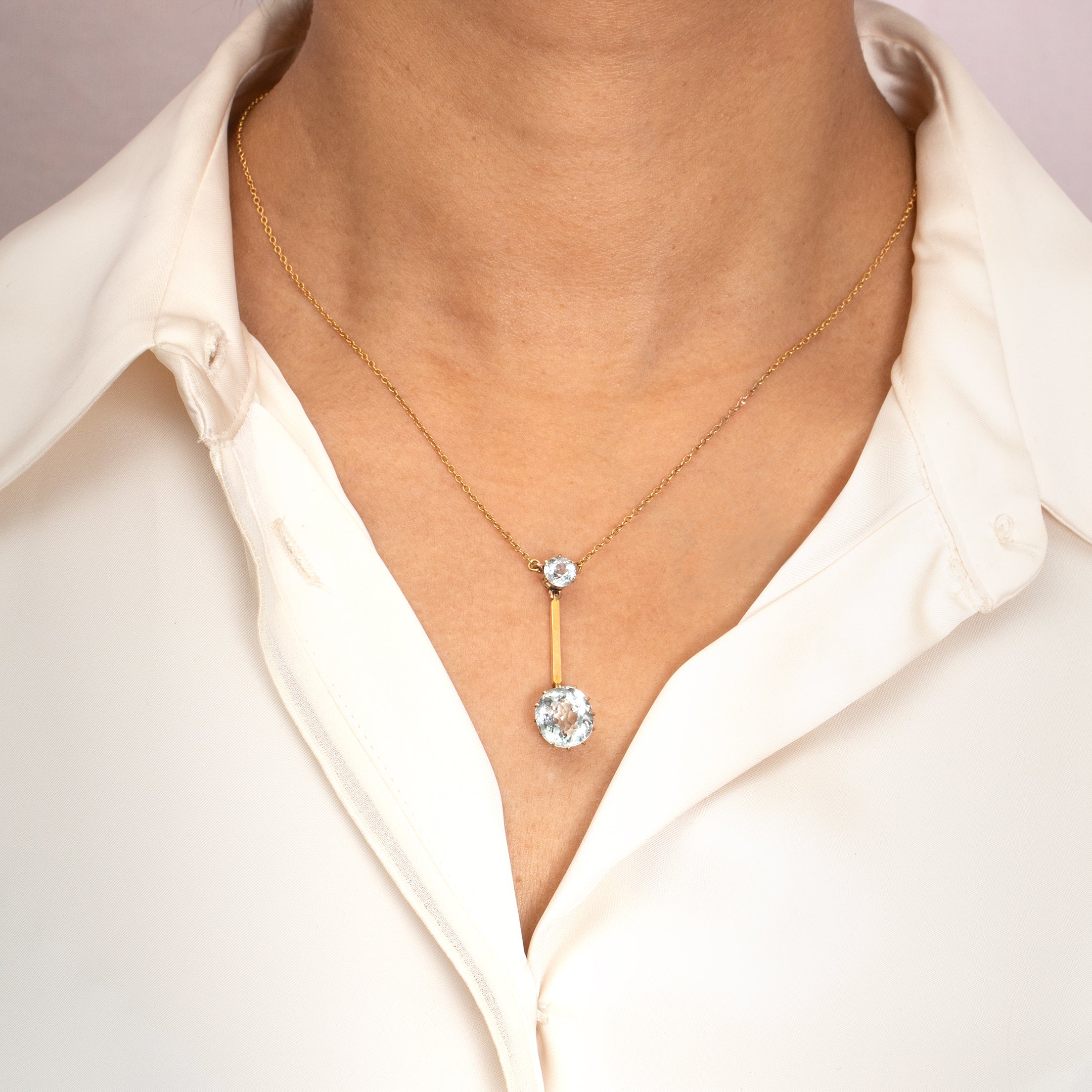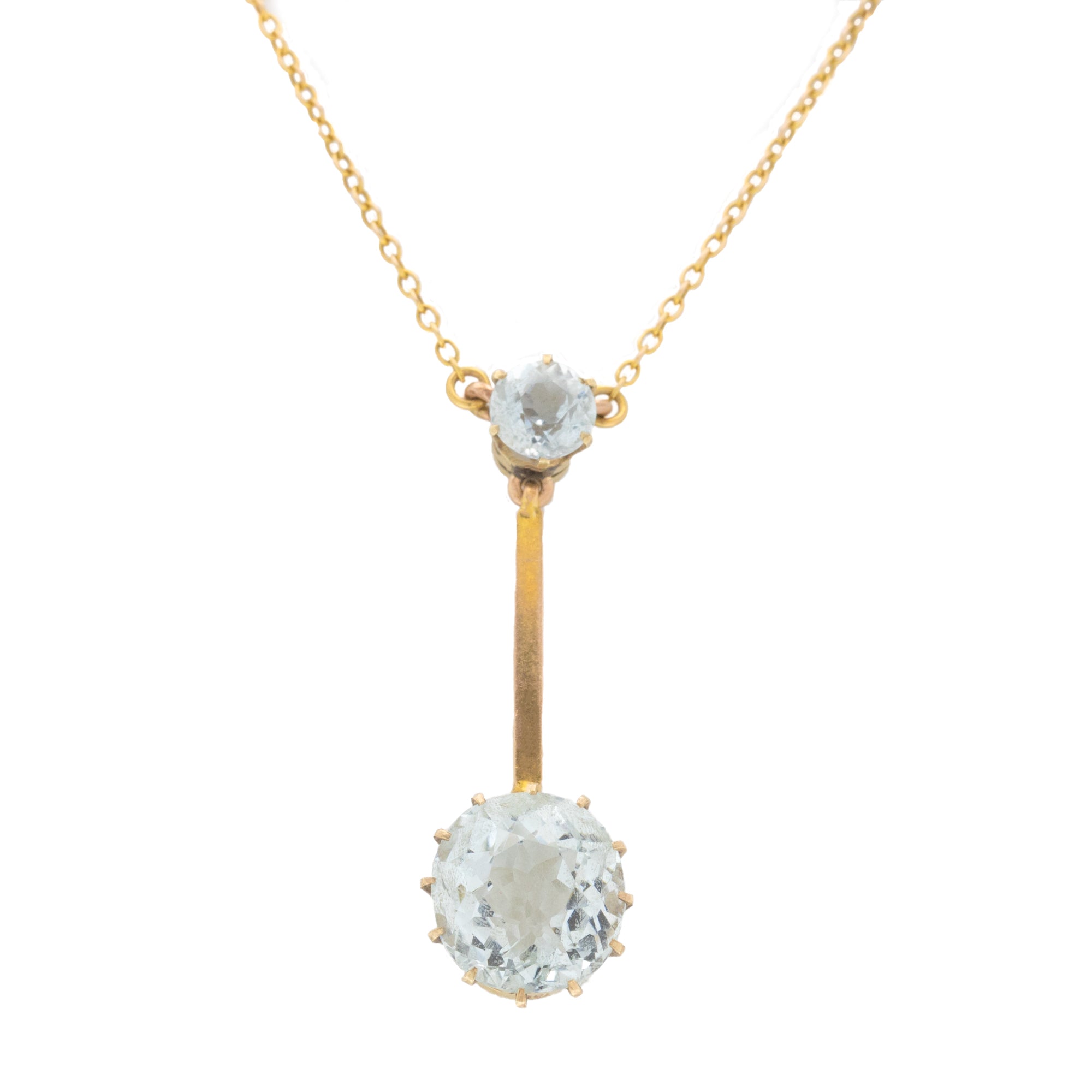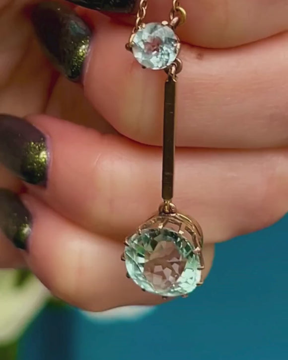 アンティーク 9ct ゴールド アクアマリン ドロップ ネックレス、4.00ct