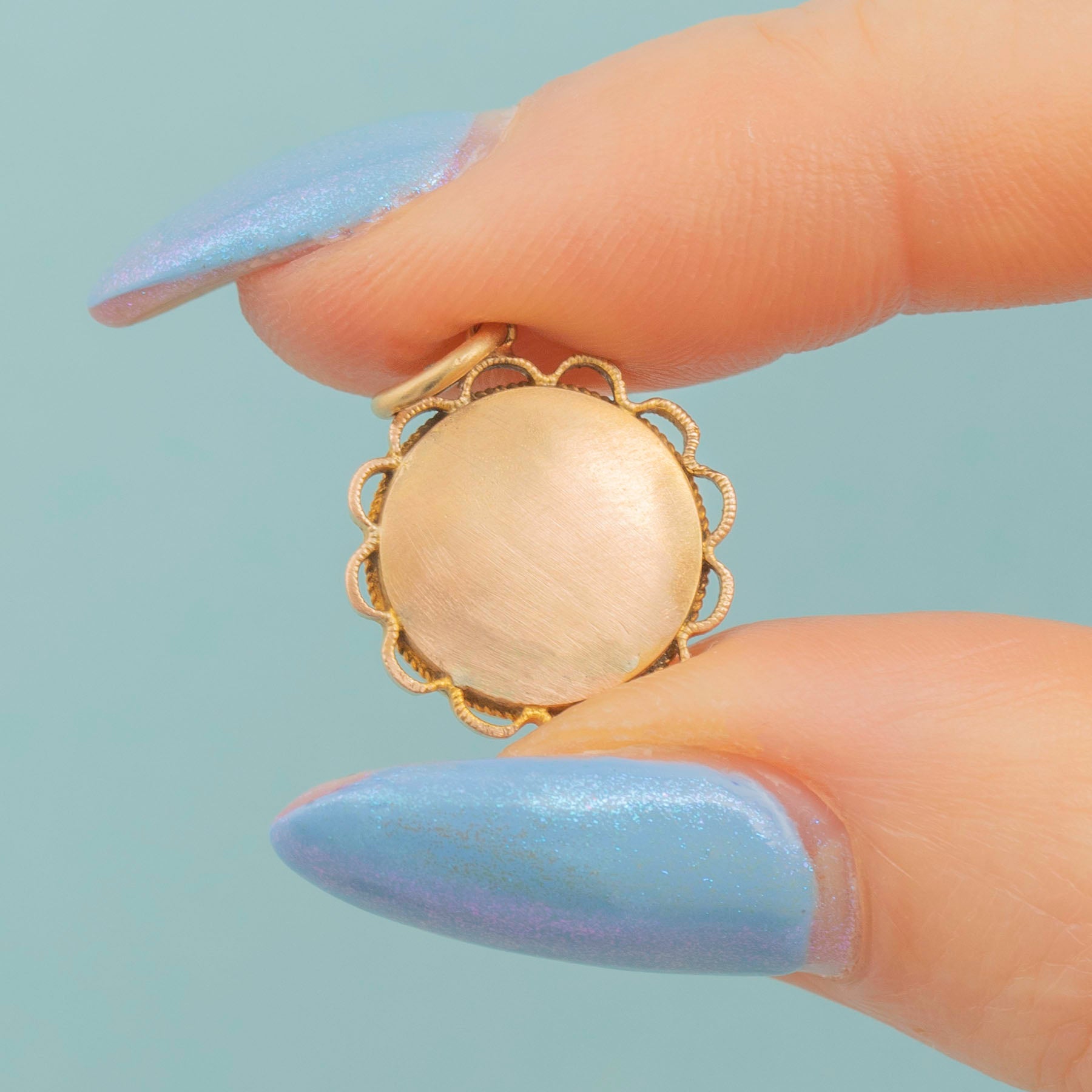 Domed at the front and flush and smooth at the back, this textured pendant feels luxurious to wear.