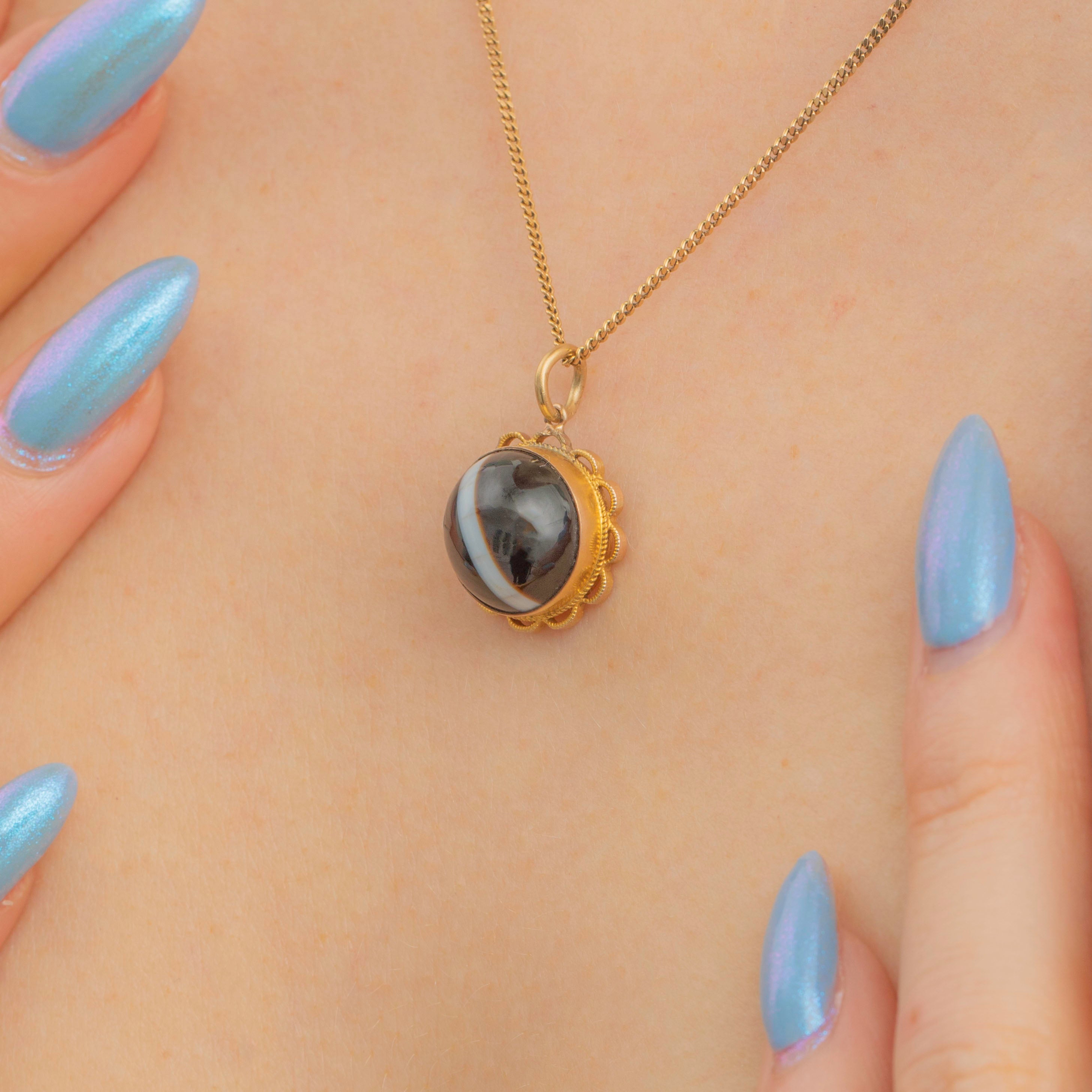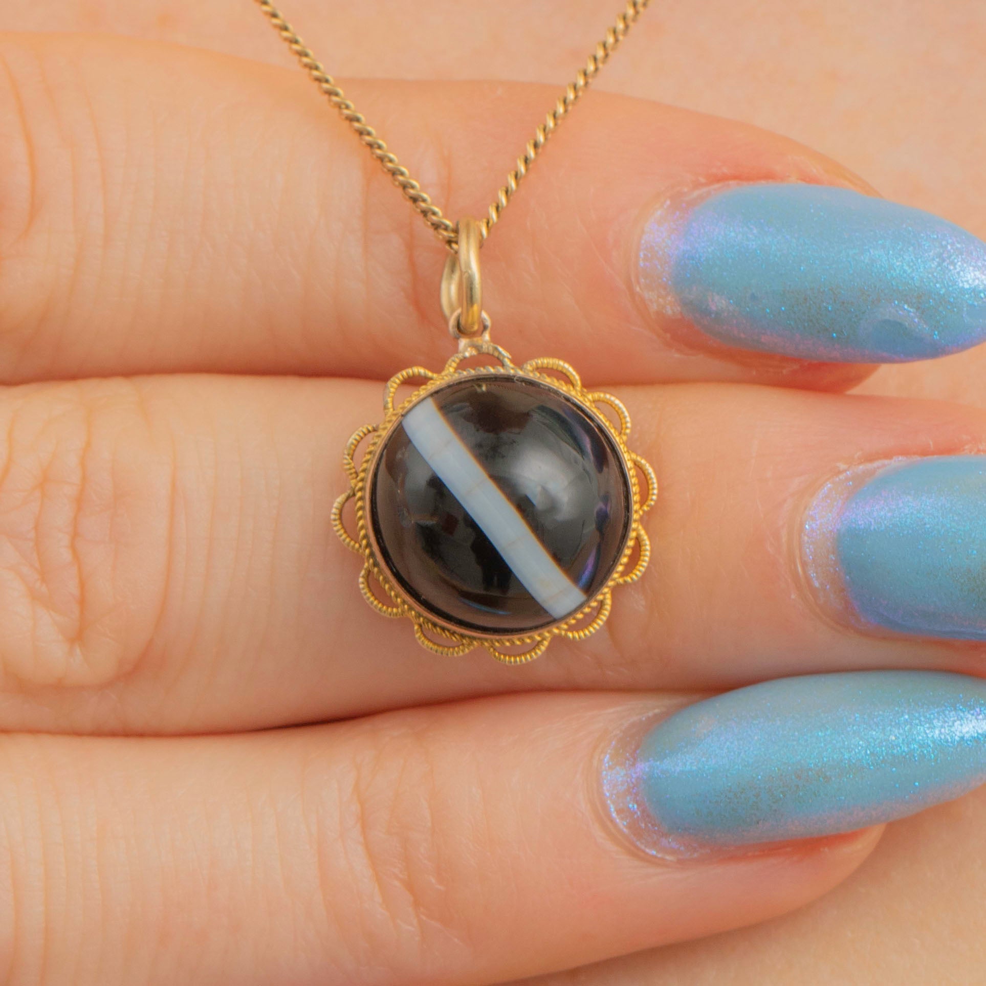 This charming antique 9ct Gold banded Agate pendant is a quintessentially Victorian piece to add to your collection!