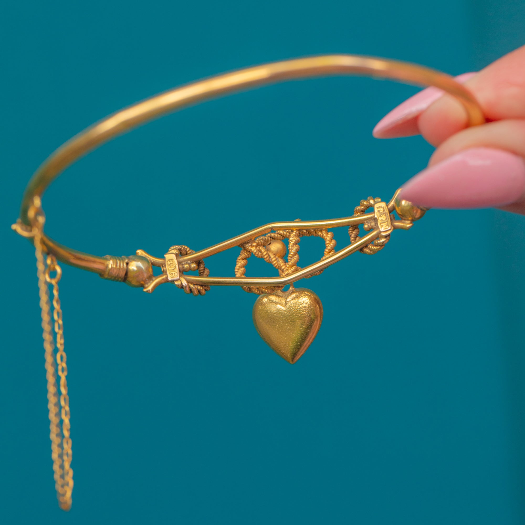Antique 9ct Gold Bangle with Puffy Heart Charm