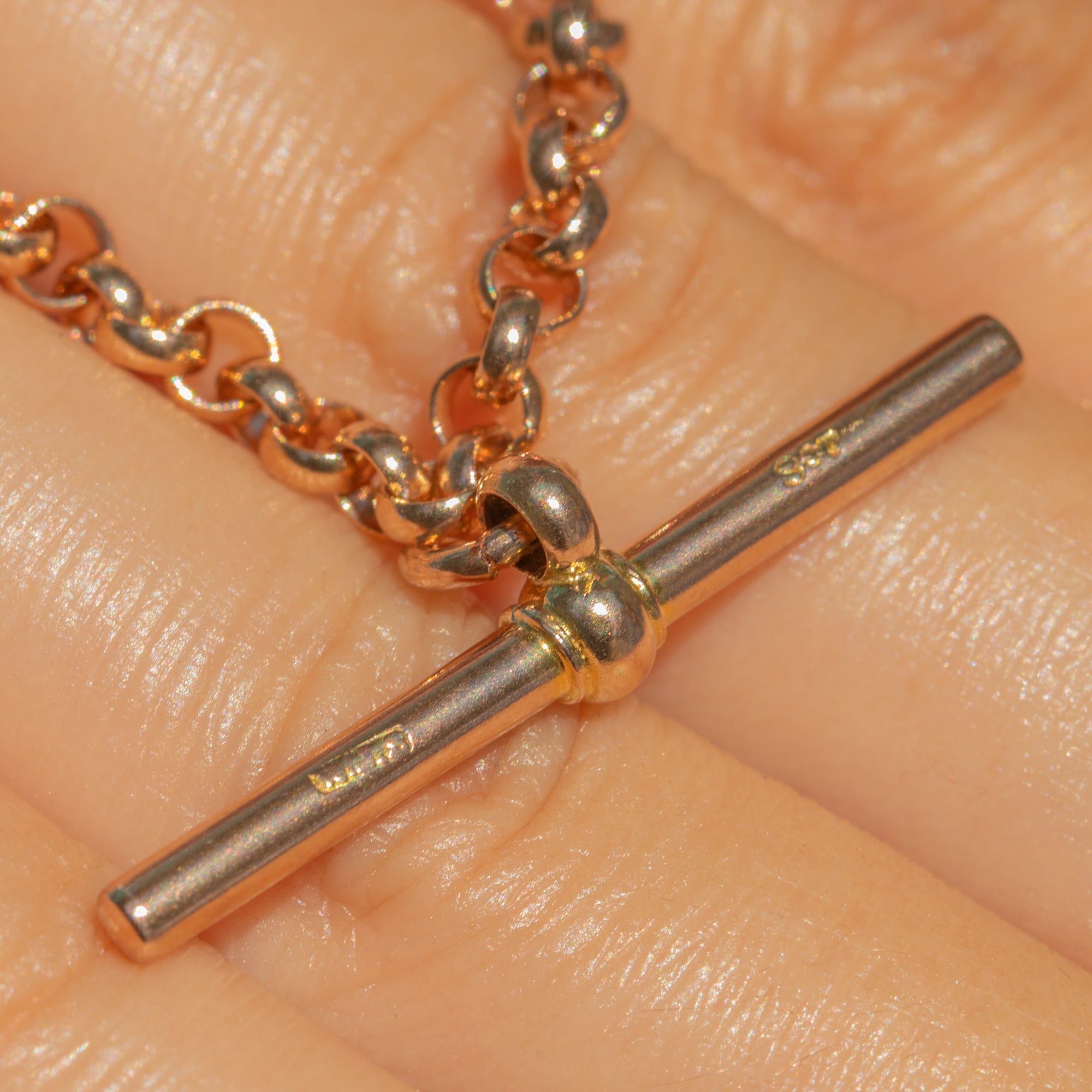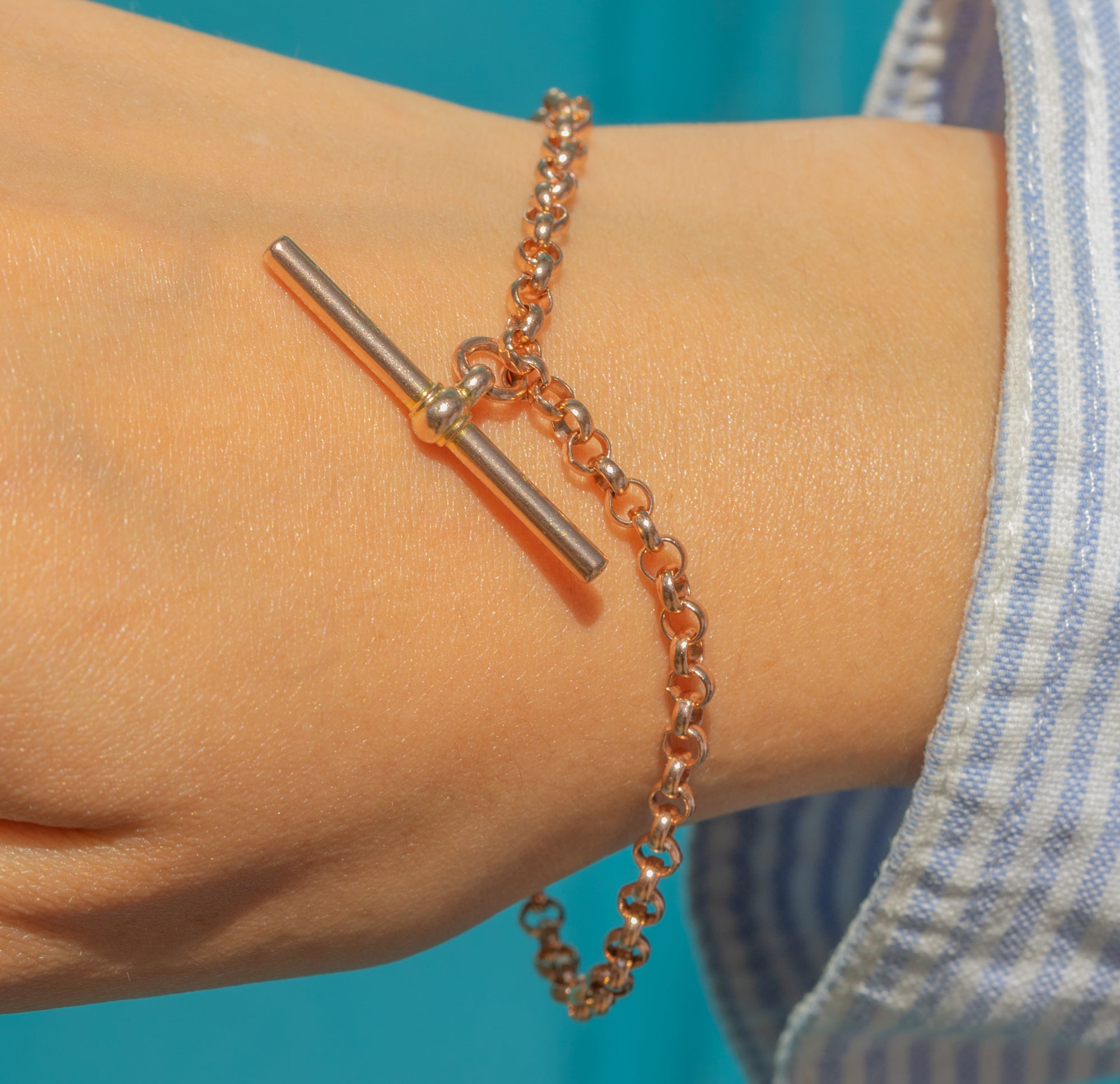 This antique Gold bracelet is a staple item to add to your collection! Crafted from rich, buttery 9ct yellow Gold, this Victorian bracelet features plump belcher links and a distinctive T-bar charm, creating a sophisticated piece for everyday wear.