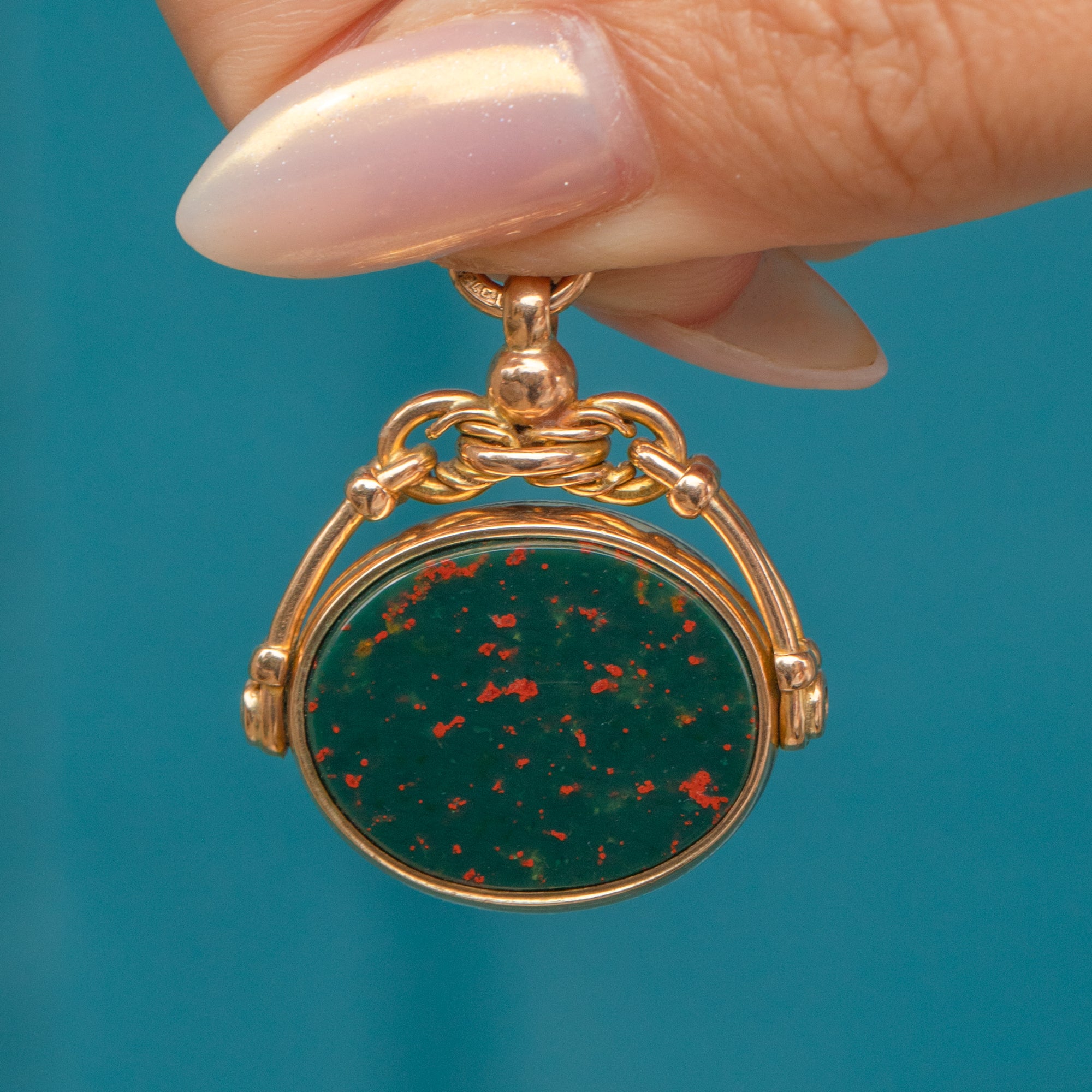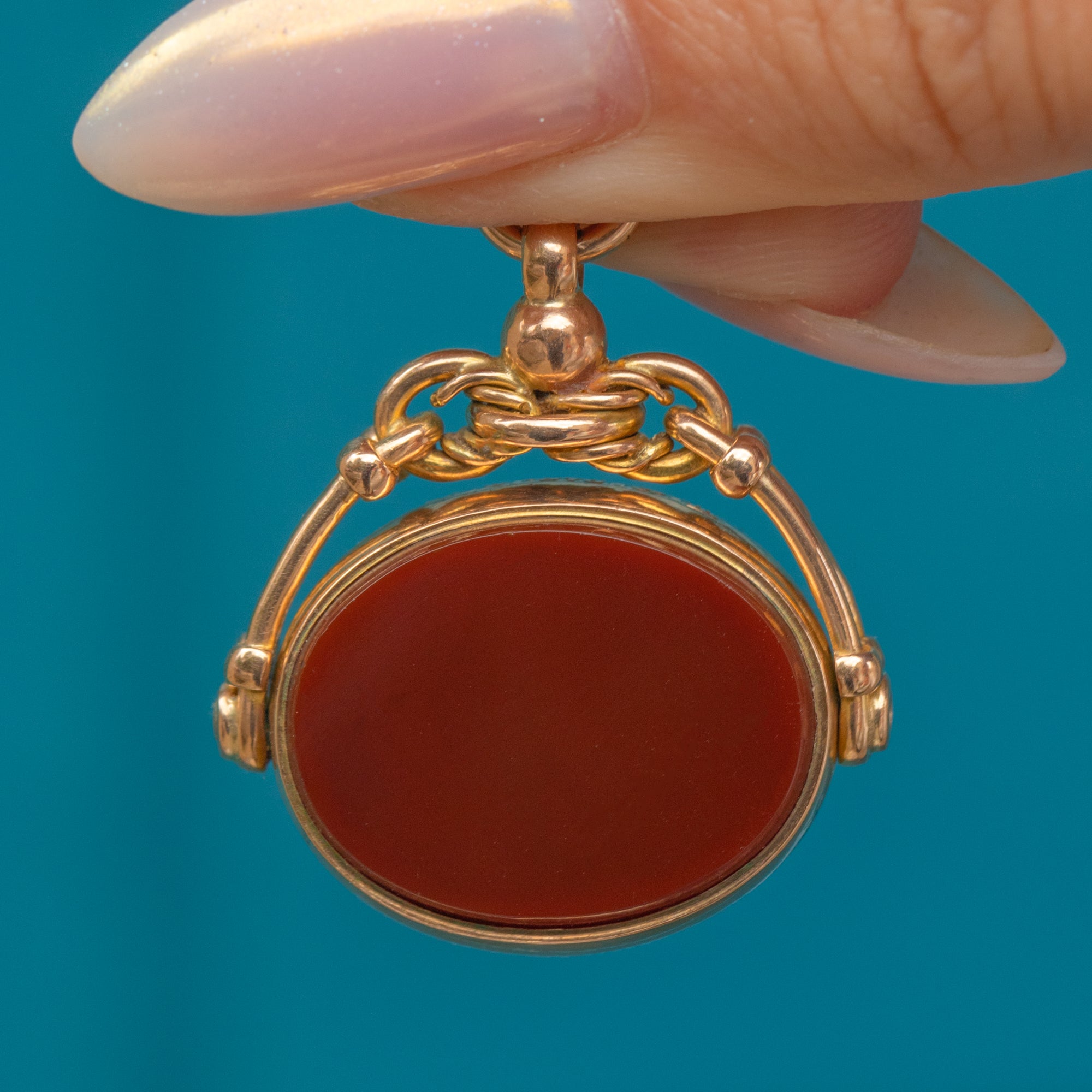 Antique 9ct Gold Bloodstone Carnelian Spinning Fob Pendant