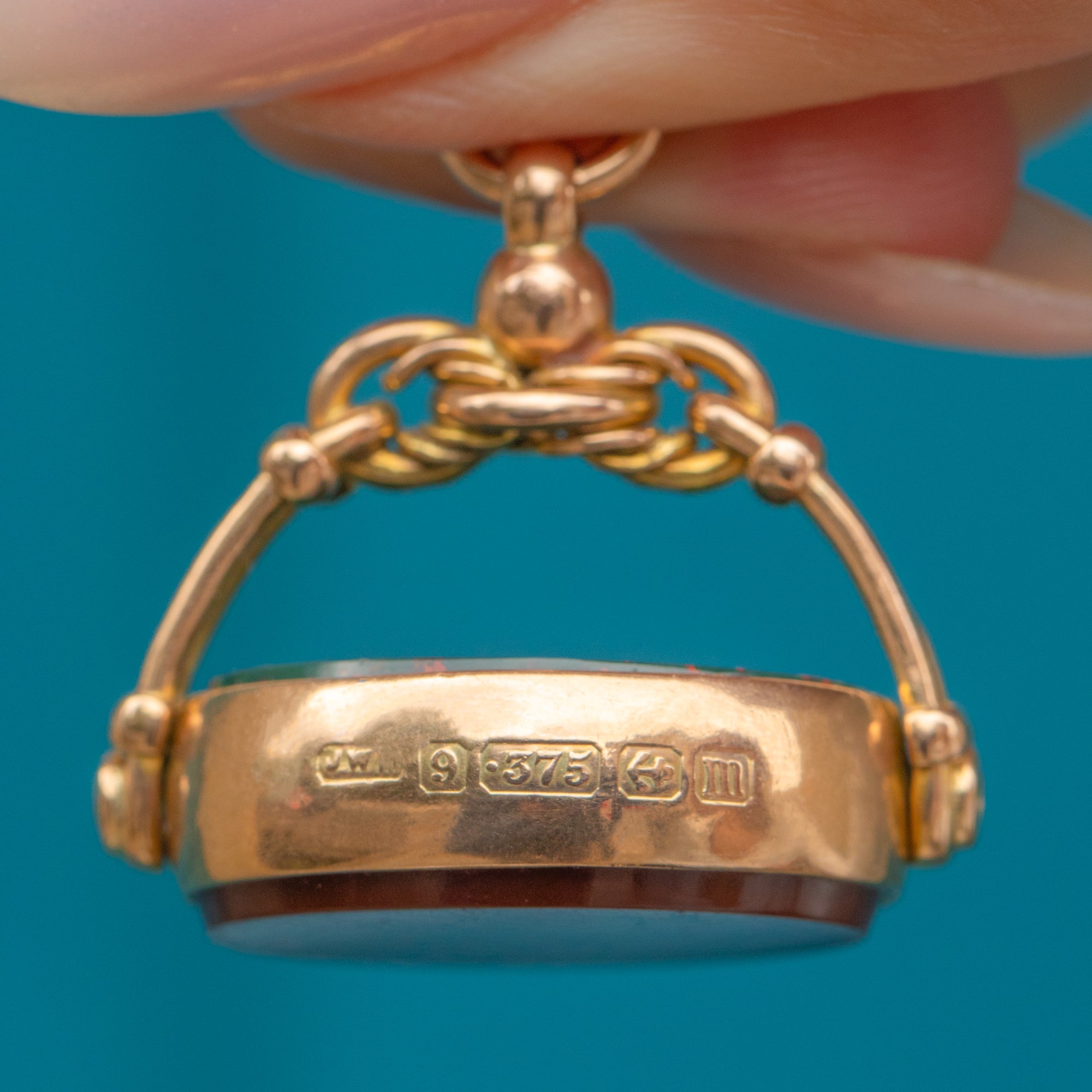 MATERIALS: Tests as 9ct Gold, Bloodstone, Carnelian