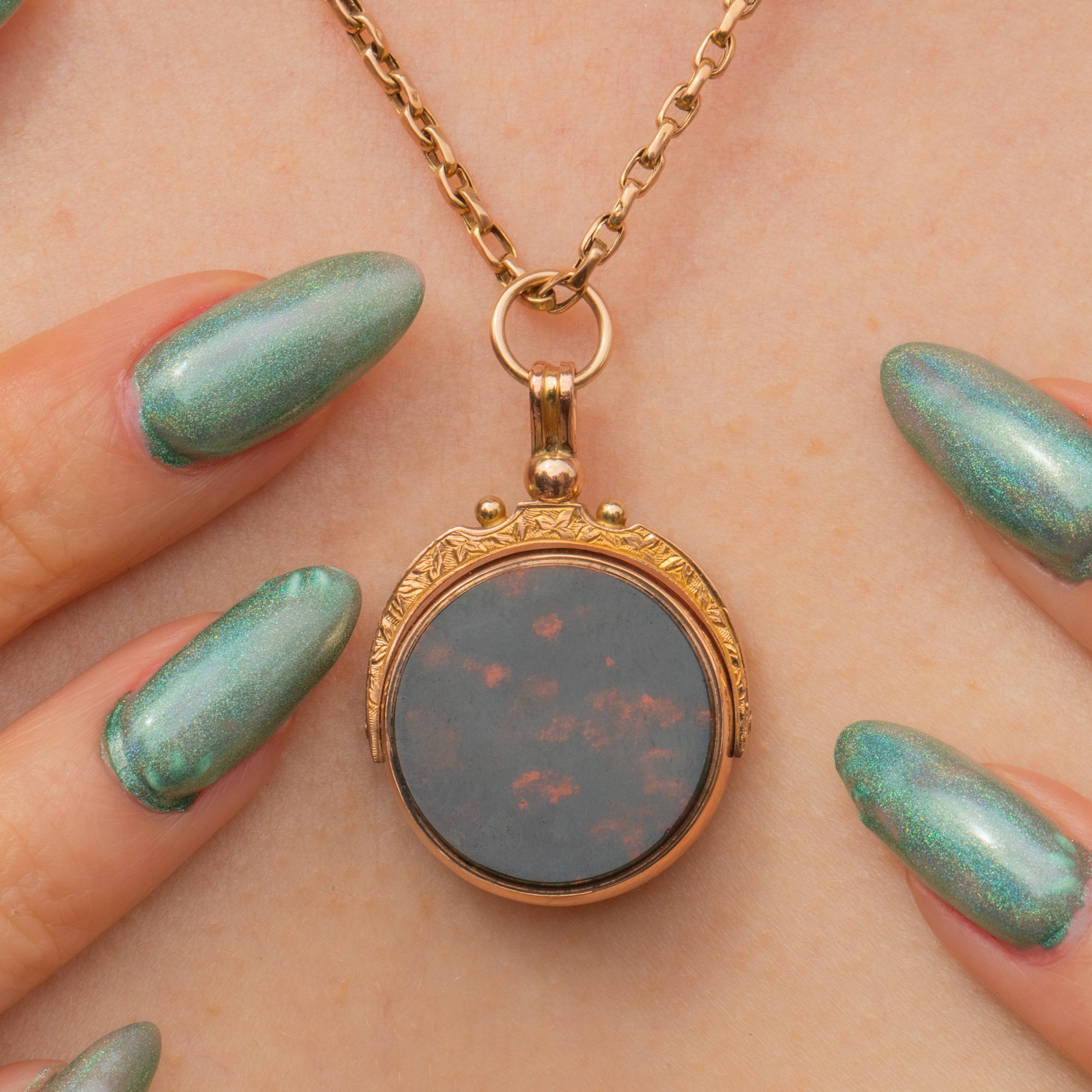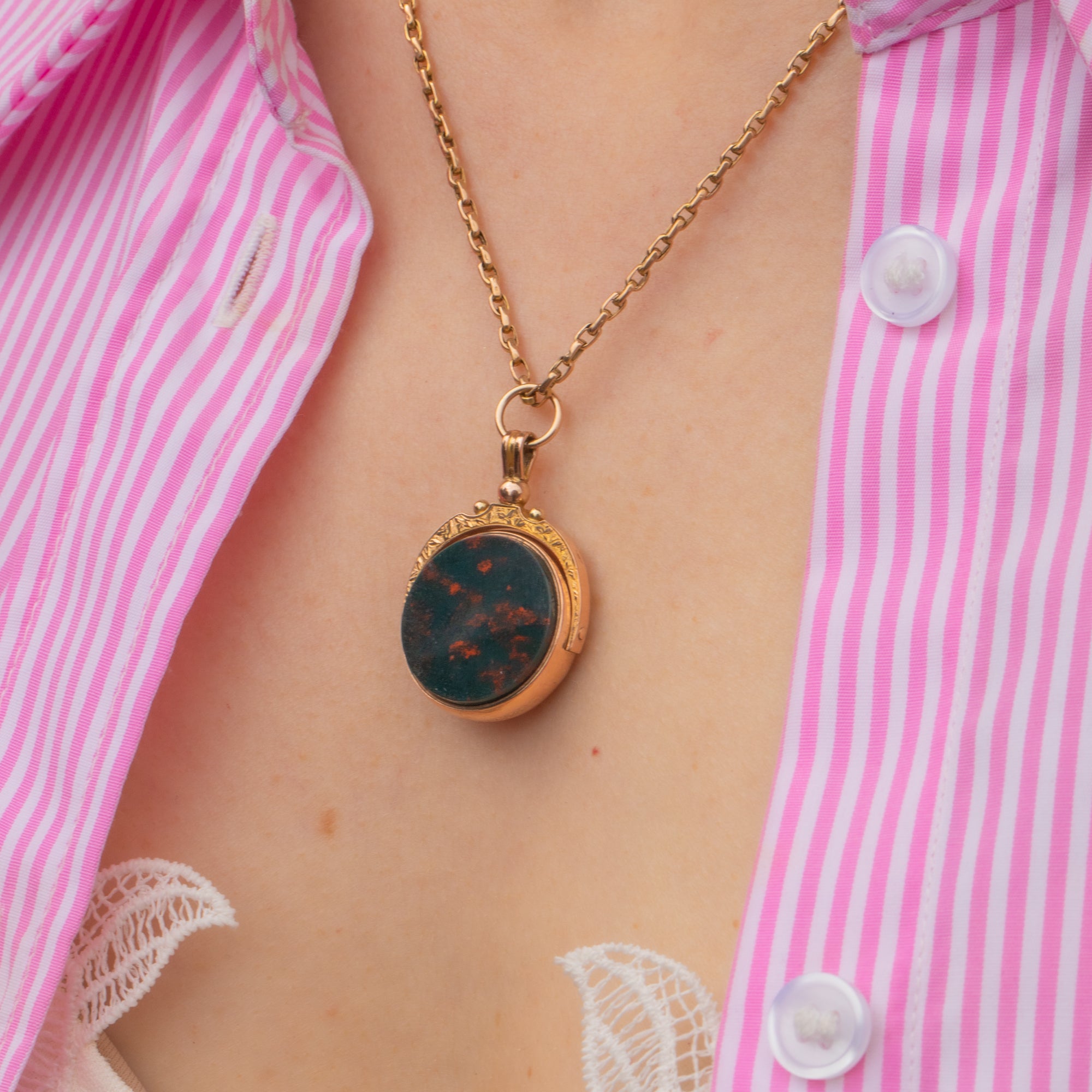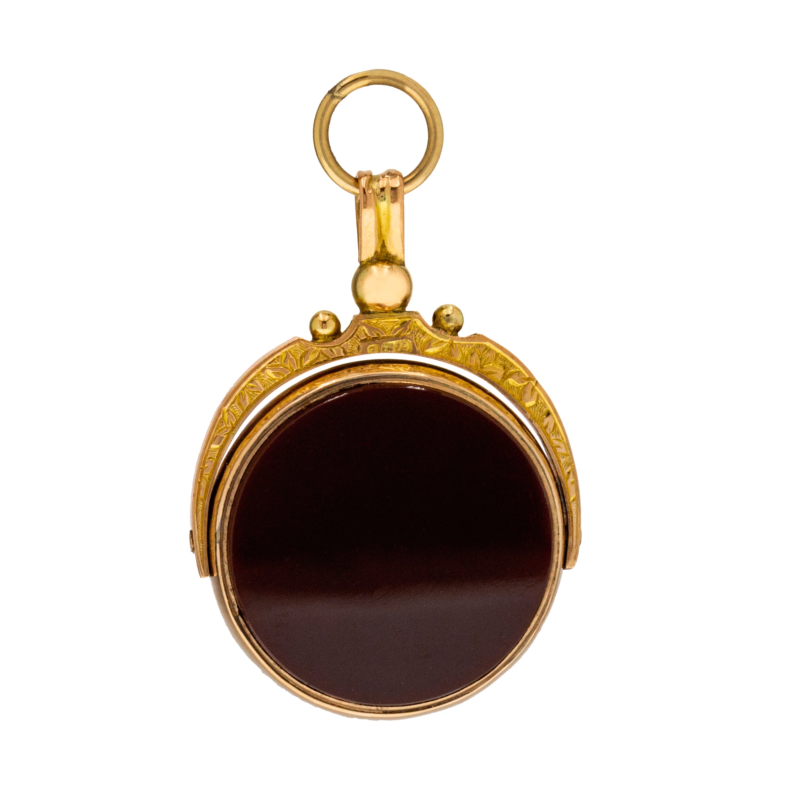 アンティーク 9ct ゴールド ブラッドストーン カーネリアン スイベル フォブ ペンダント