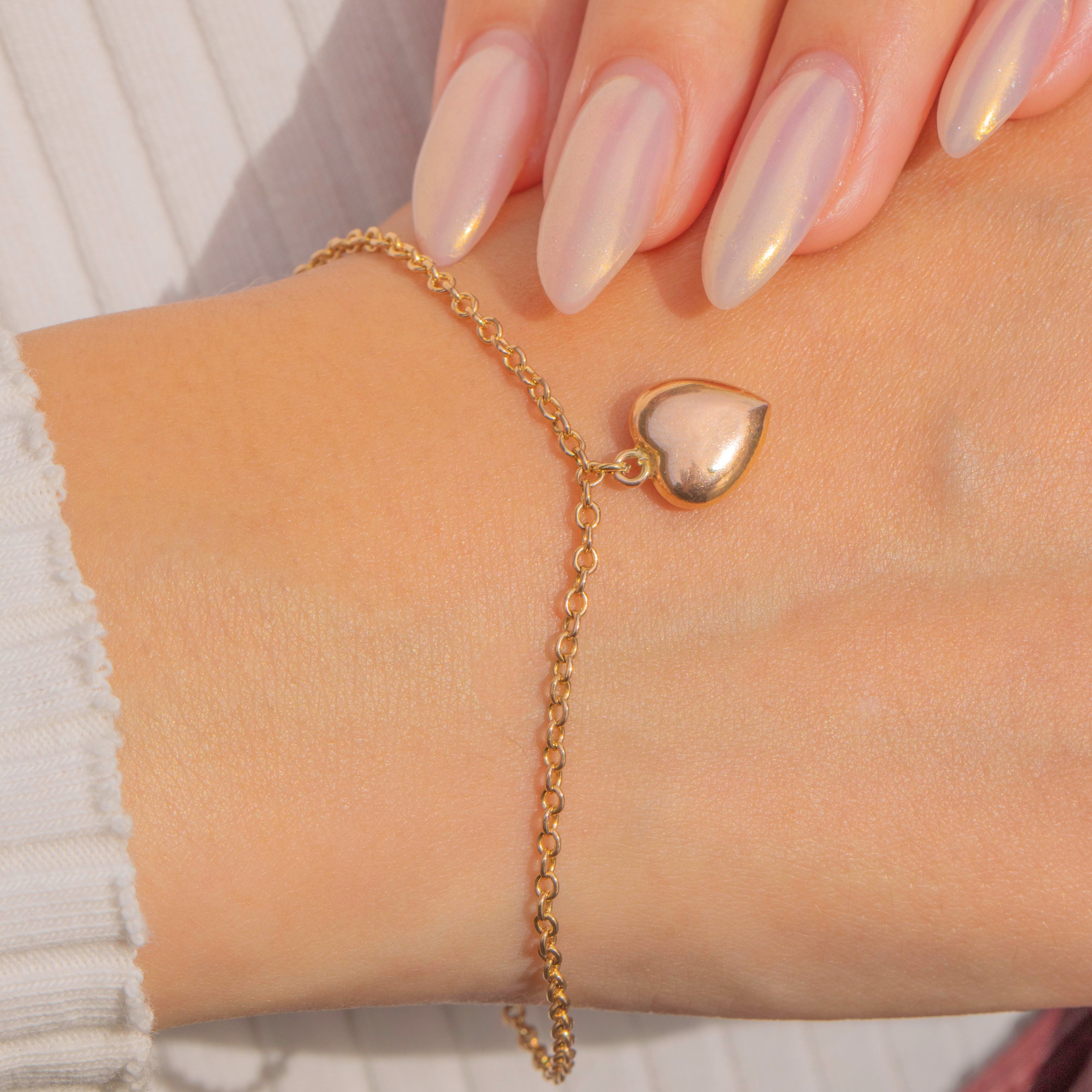 Antique 9ct Gold Bracelet with Puffy Heart Charm
