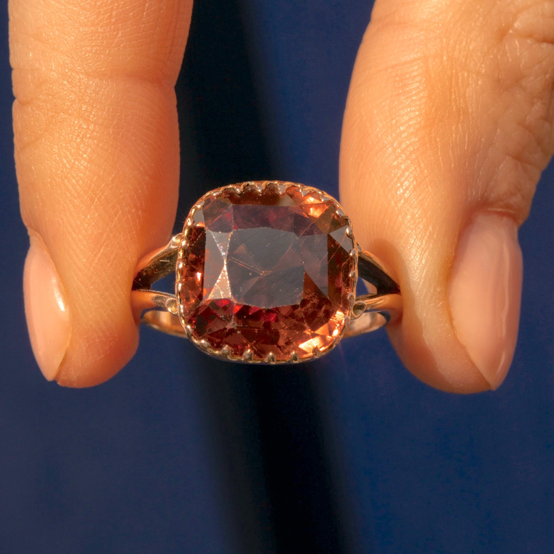 This is a sublime 9ct Gold brown Zircon ring! An incredibly rare find, this impressive ring is home to an 8.50ct brown Zircon that possesses an alluring peachy undertone.