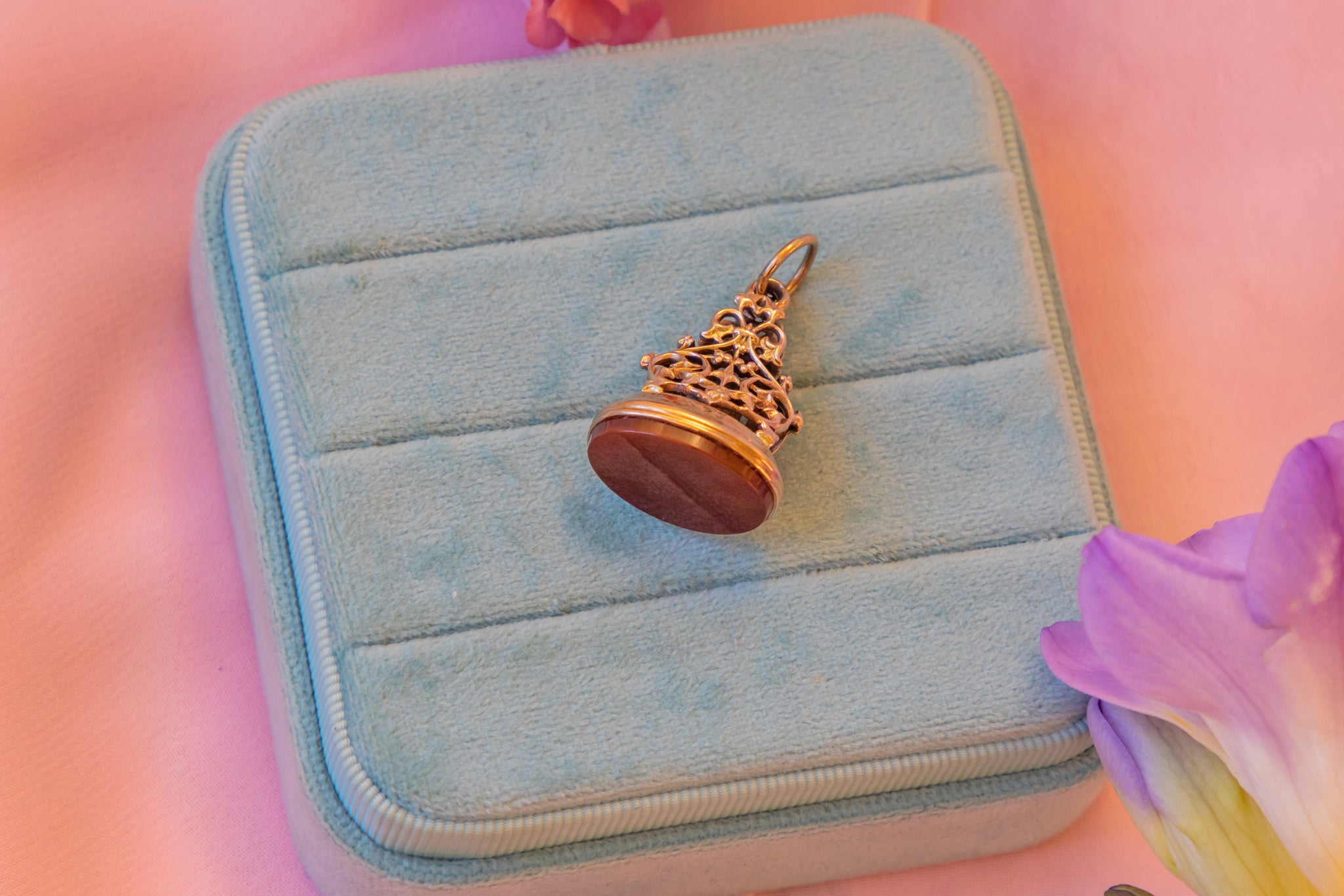 アンティーク 9ct ゴールド カーネリアン フォブシール ペンダント