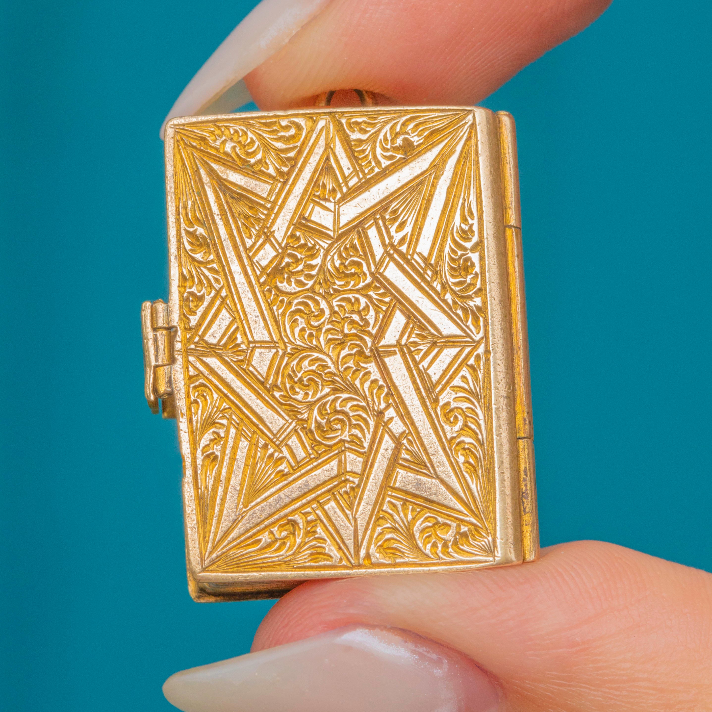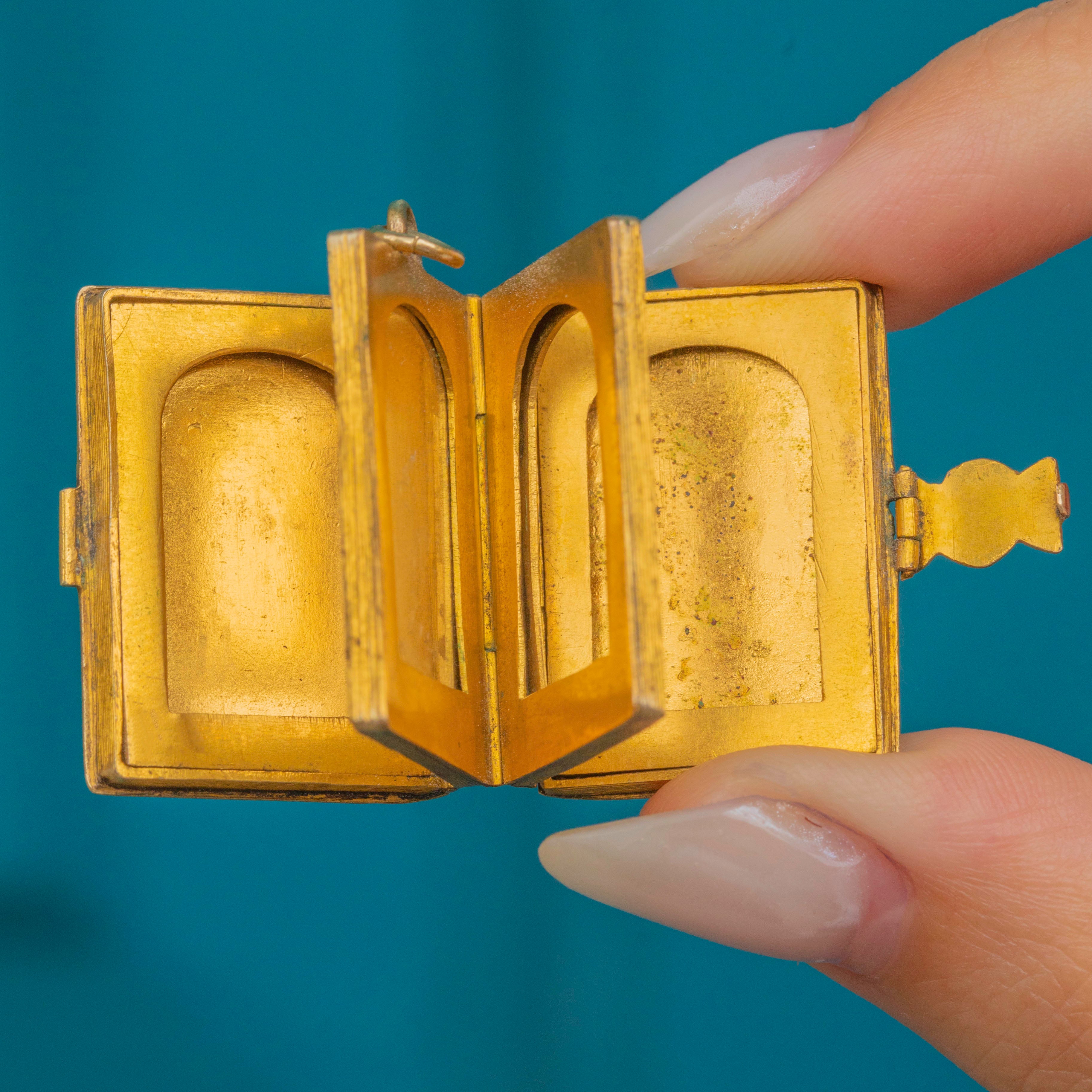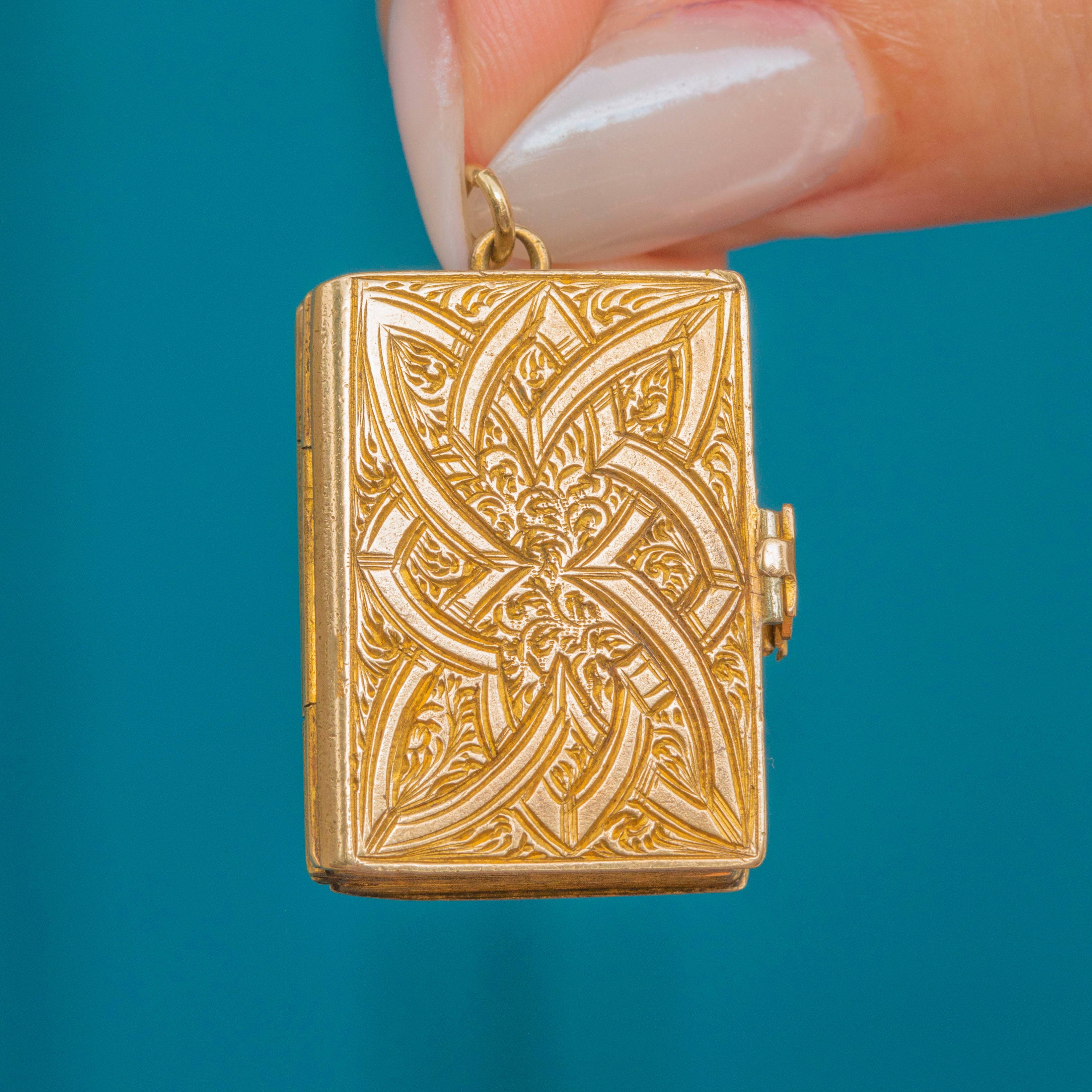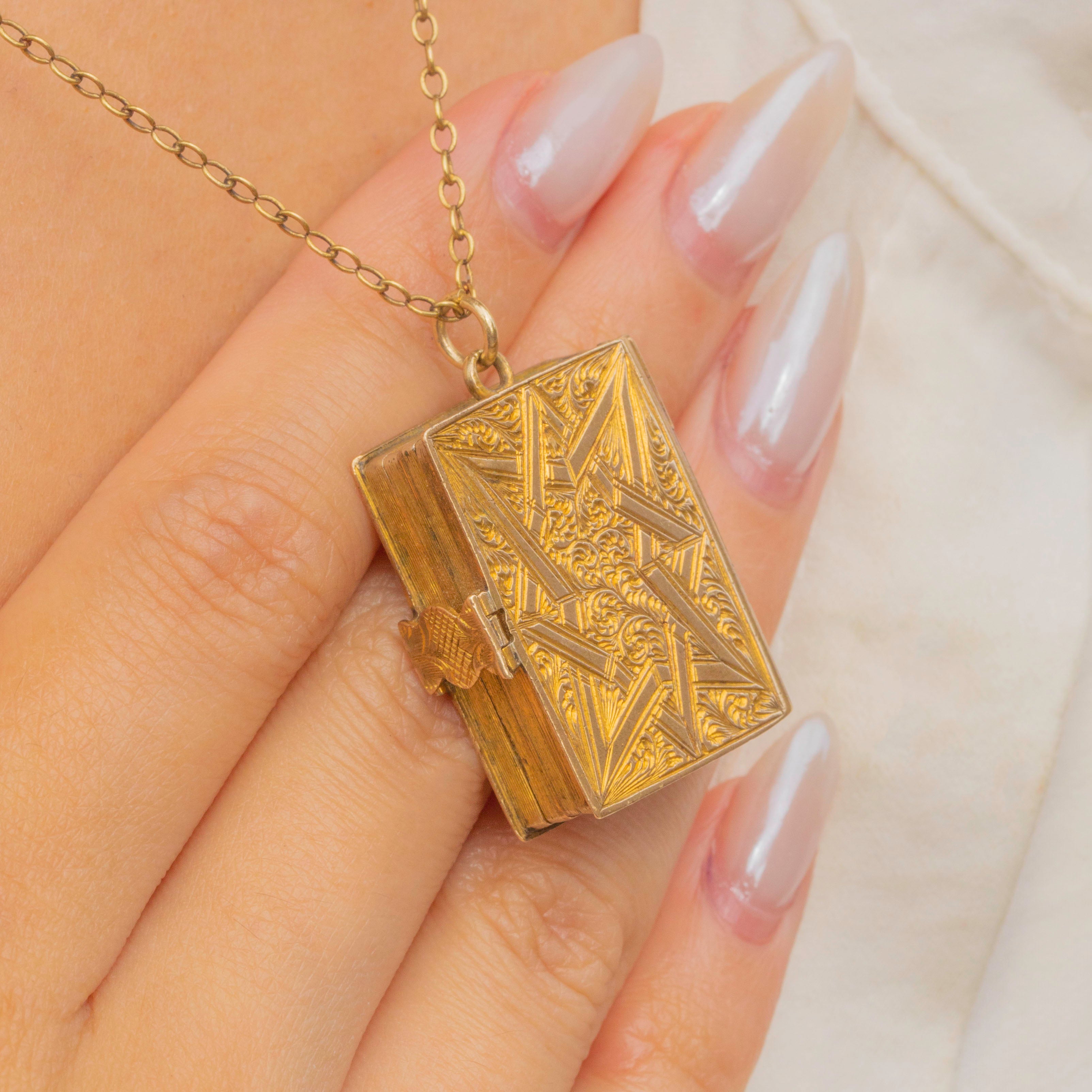 Tell your own story with this antique book locket! A Victorian treasure from well over 100 years ago, this book locket has been beautifully engraved both back and front.