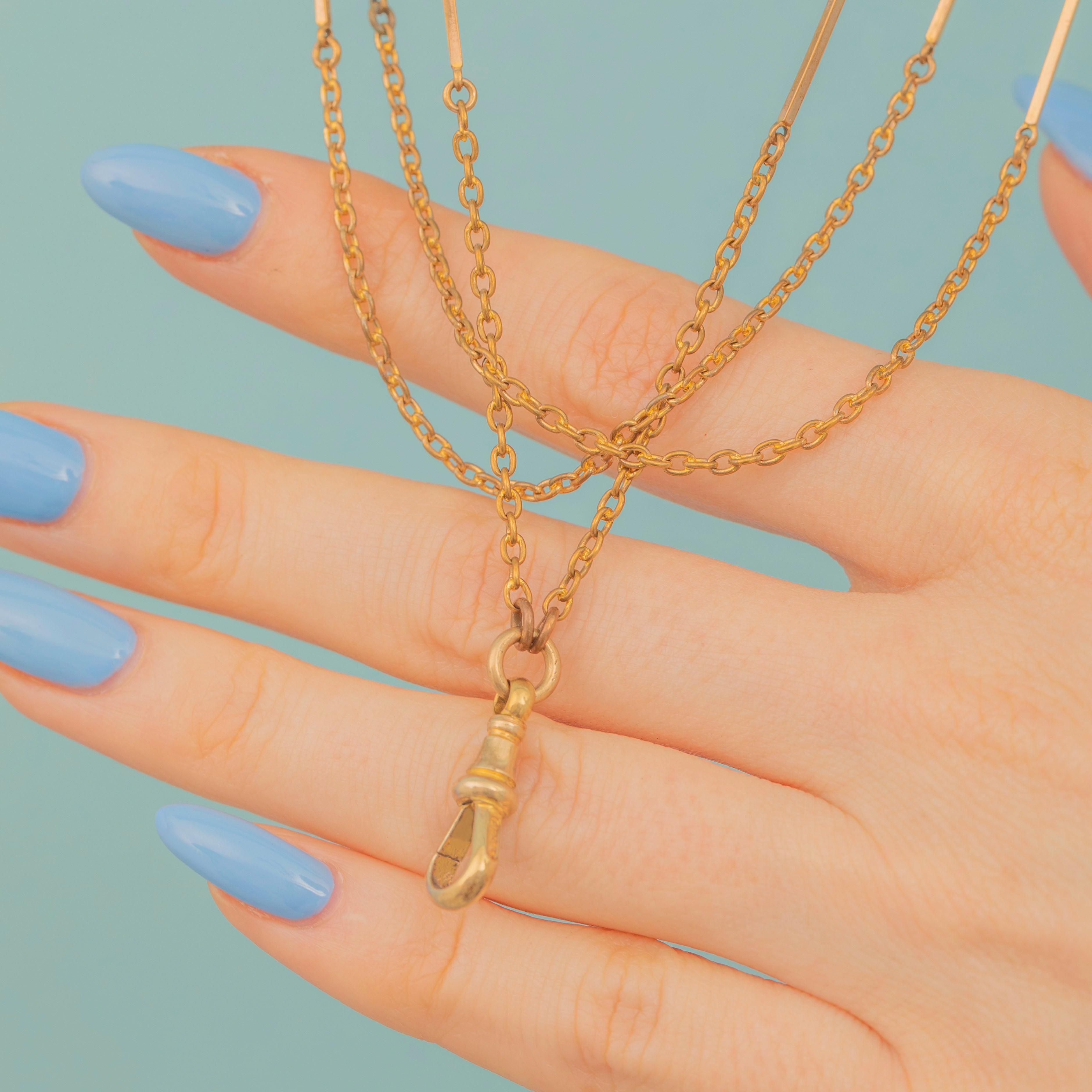 Antique 9ct Gold Cased Longuard Chain with Dog-Clip, 54"