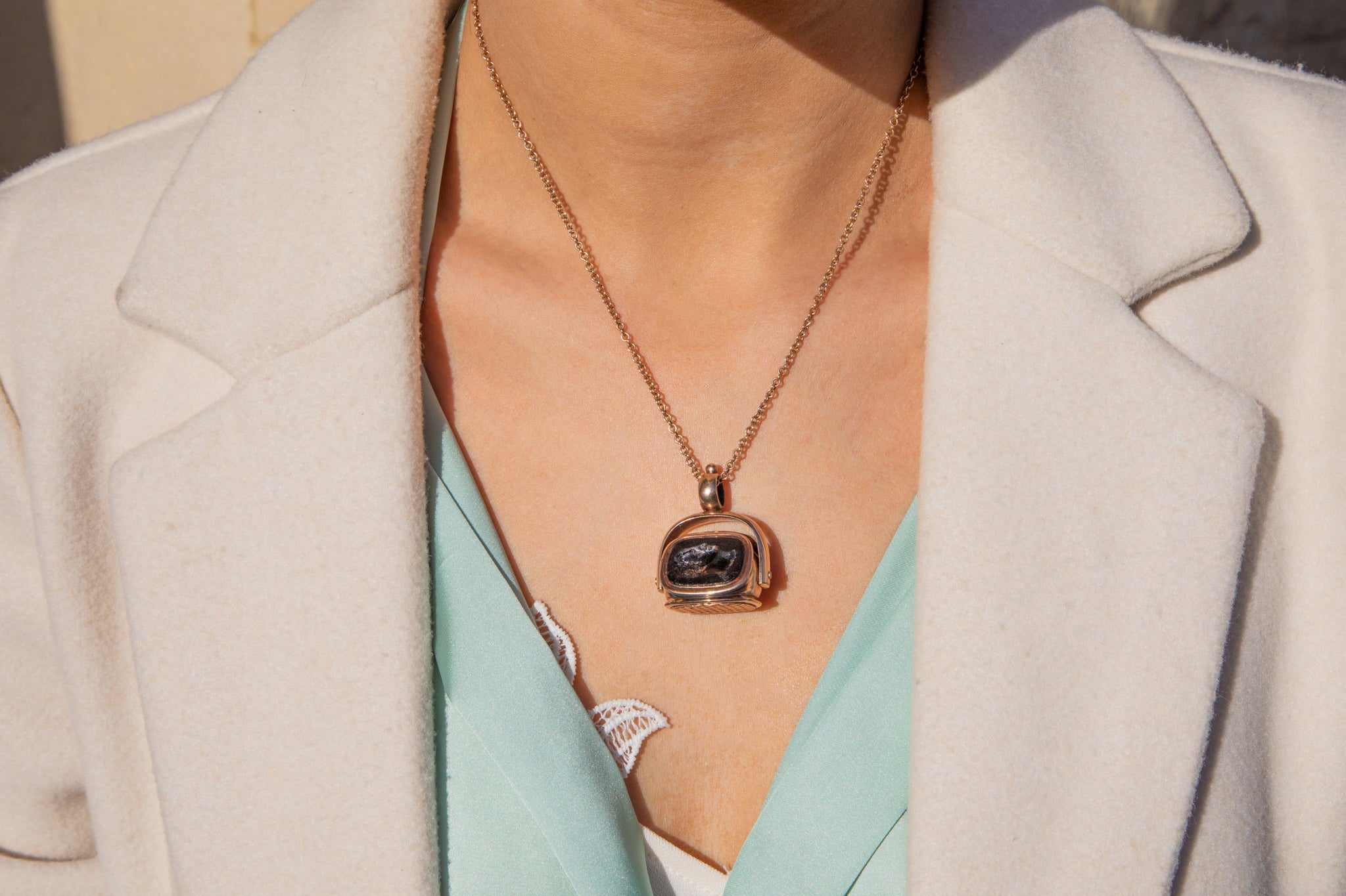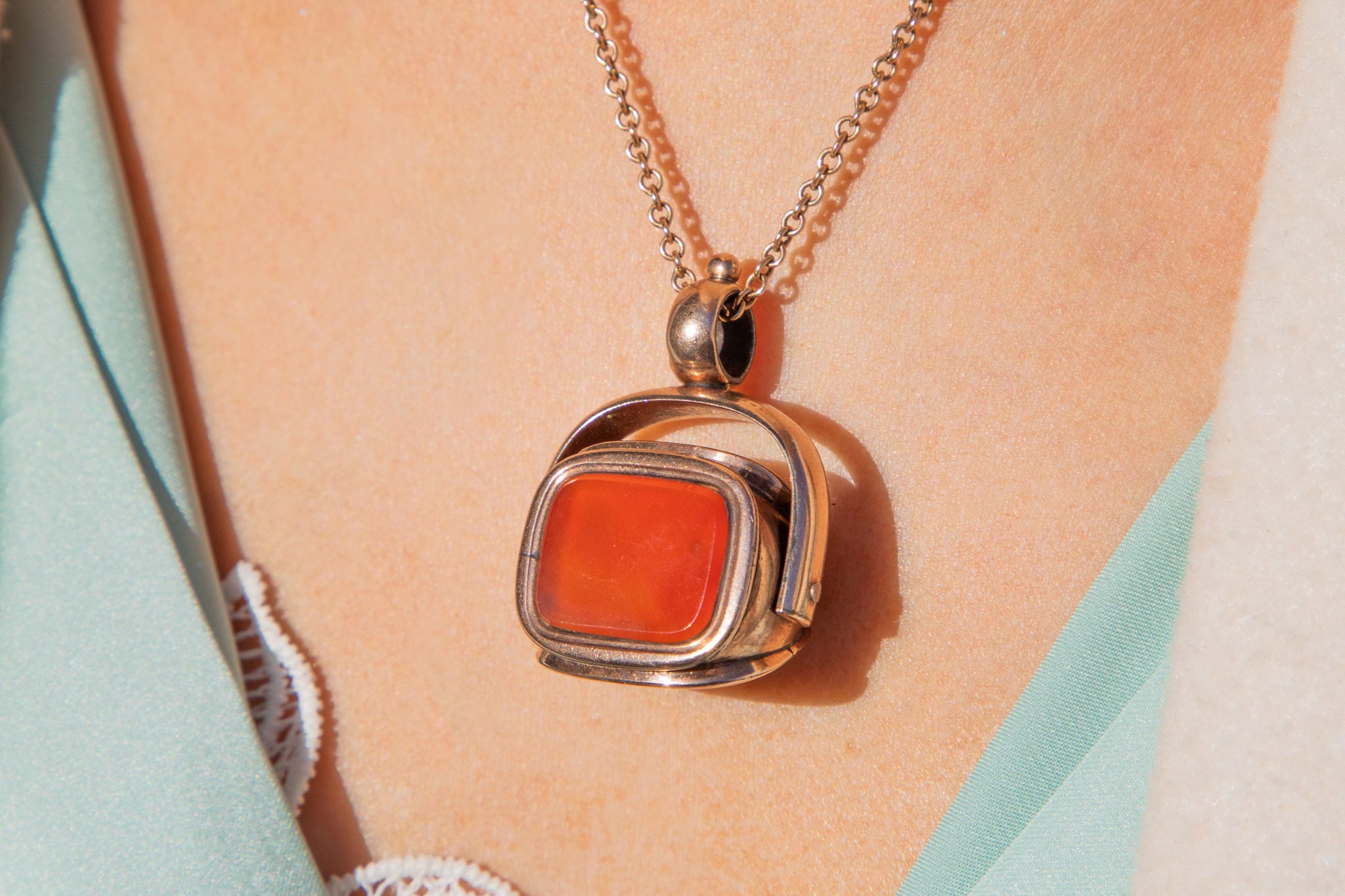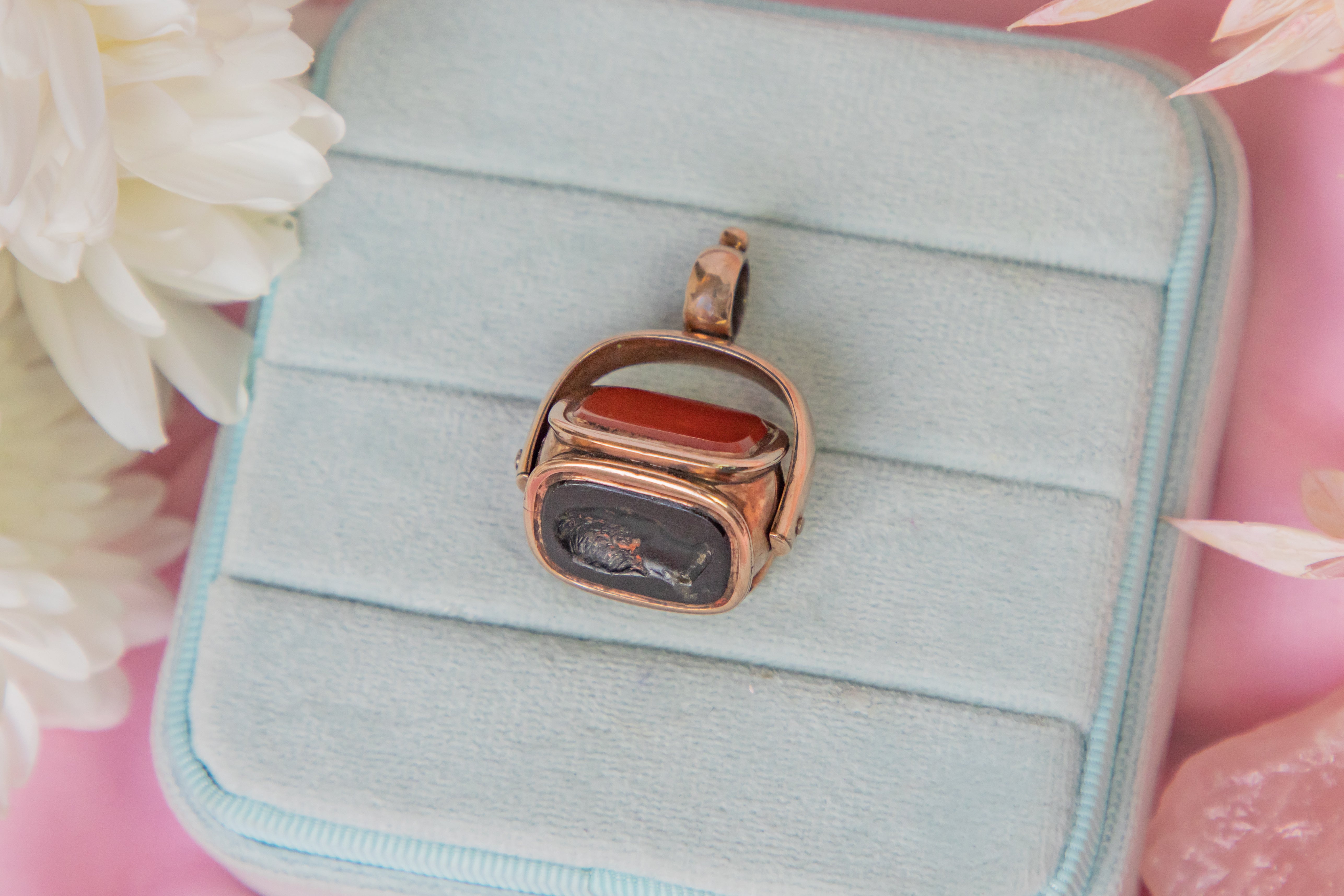 アンティーク 9ct ゴールドケース トリプルサイド スピナー フォブ ペンダント