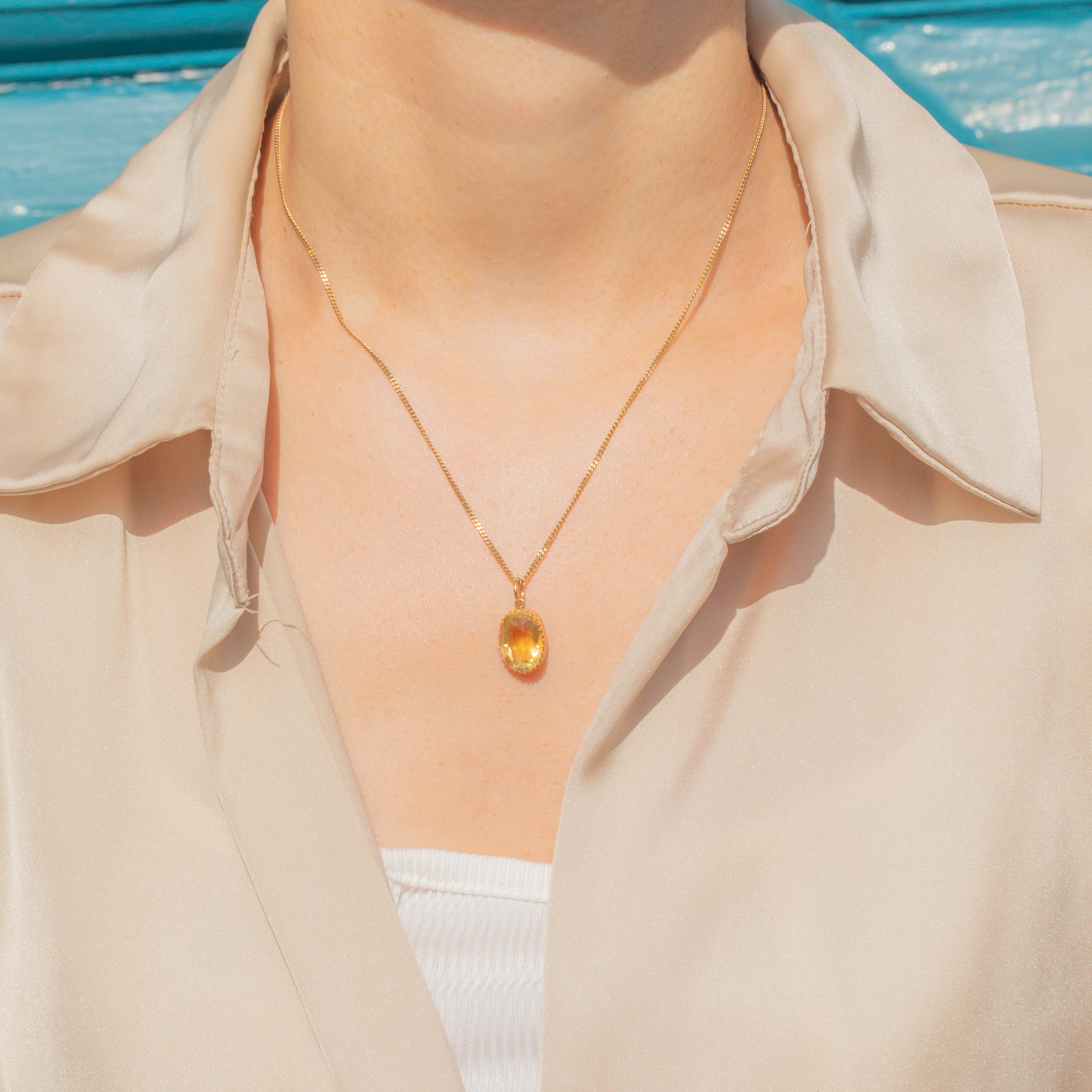 Hugging her show-stopping Citrine are claw settings, crafted from 9ct Gold, offering a buttery tone that marries perfectly with the Citrine's heartwarming hues. This Victorian Citrine pendant is just bursting with character, she is too good to resist!