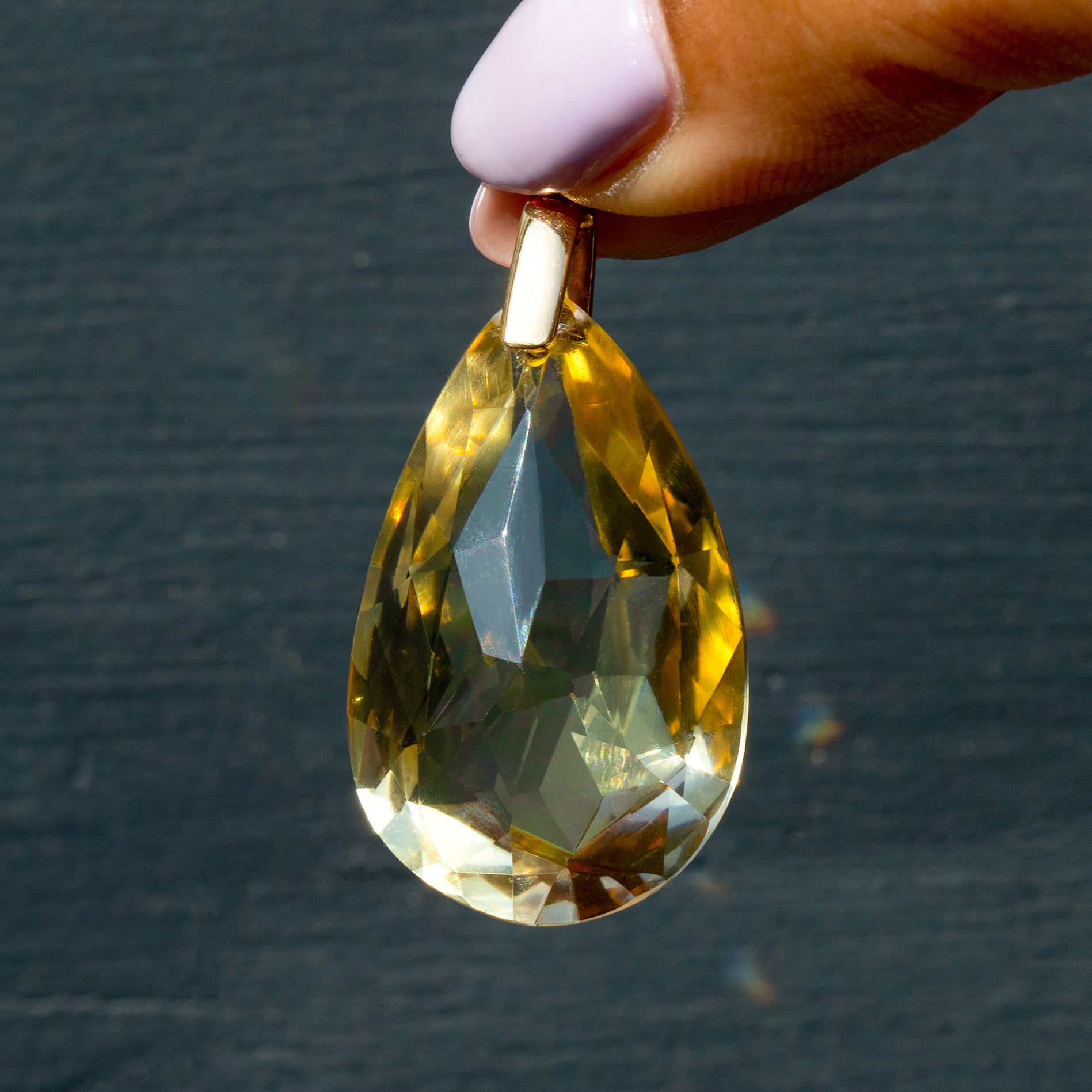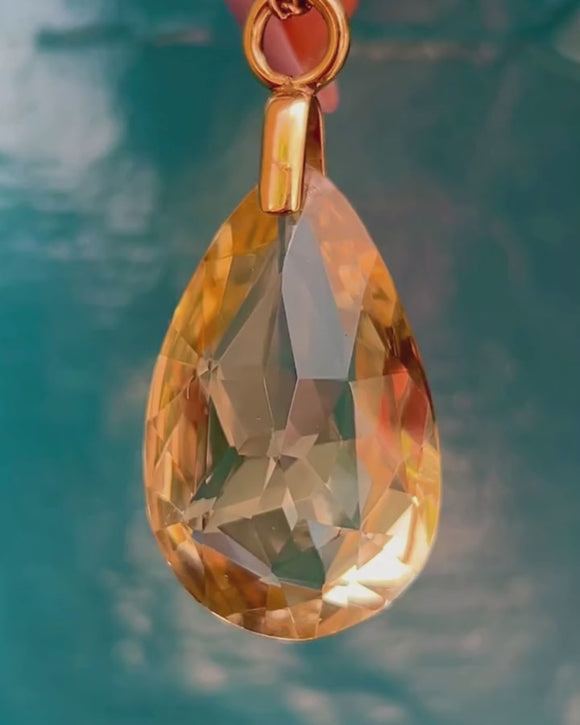 アンティーク 9ct ゴールド シトリン ペアドロップ ペンダント、40.00ct。