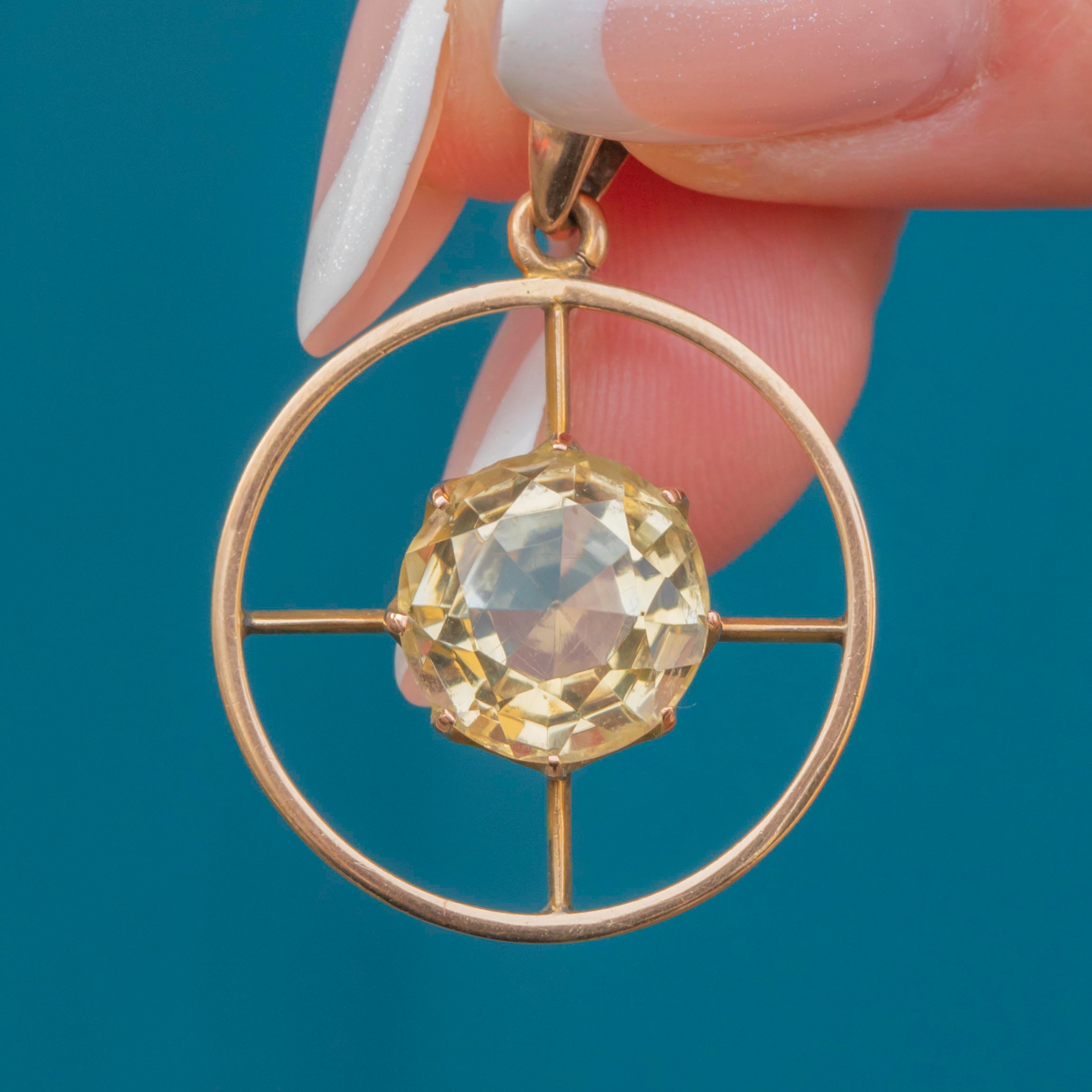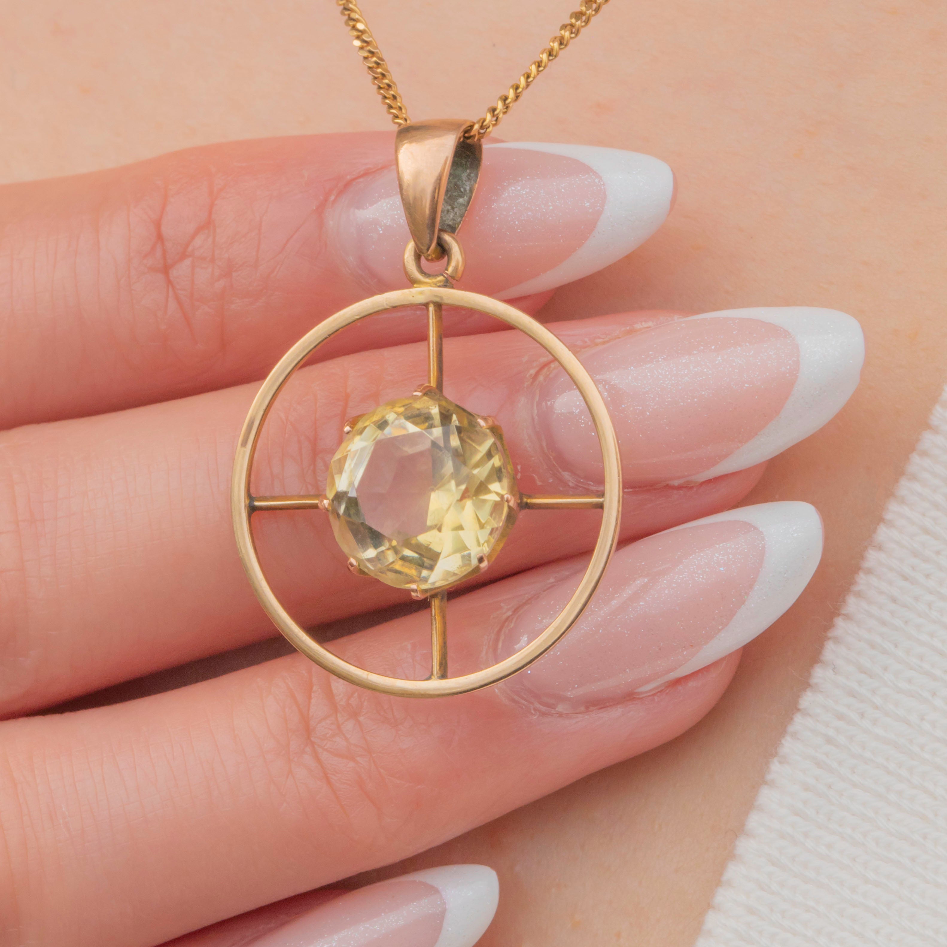 Add a touch of sunshine to your décolltage with this splendid antique 9ct Gold Citrine pendant! The 4.32ct Citrine has been exquisitely faceted, beaming with light lemony hues as it glimmers in the light.
