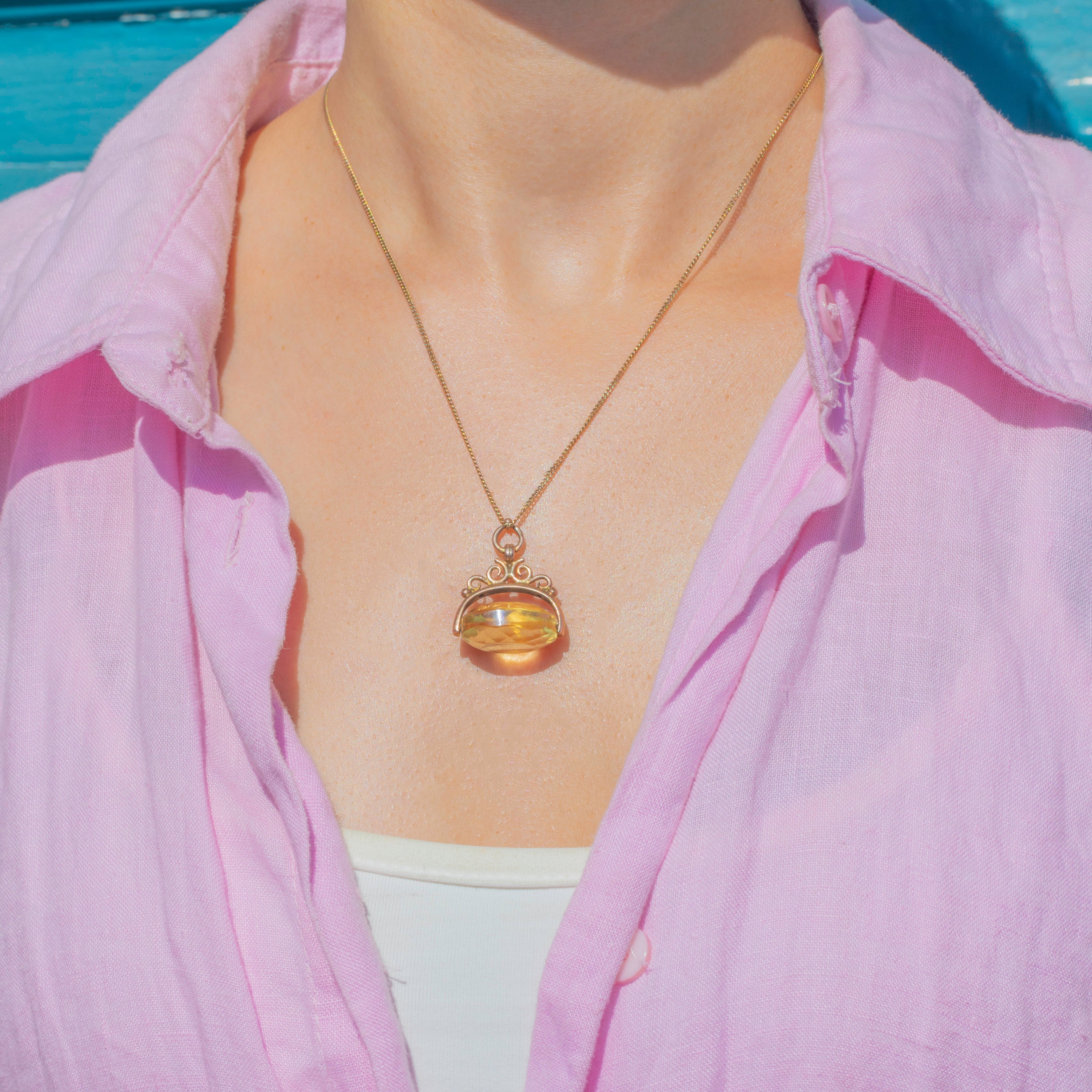 EXCELLENT: The 9ct Gold has a gorgeous honey hue throughout and has kept its structural integrity well. The spinning mechanism works perfectly, and the Citrine has only the most minor wear, commensurate with age. You'll be able to enjoy wearing this Victorian fob for years to come!