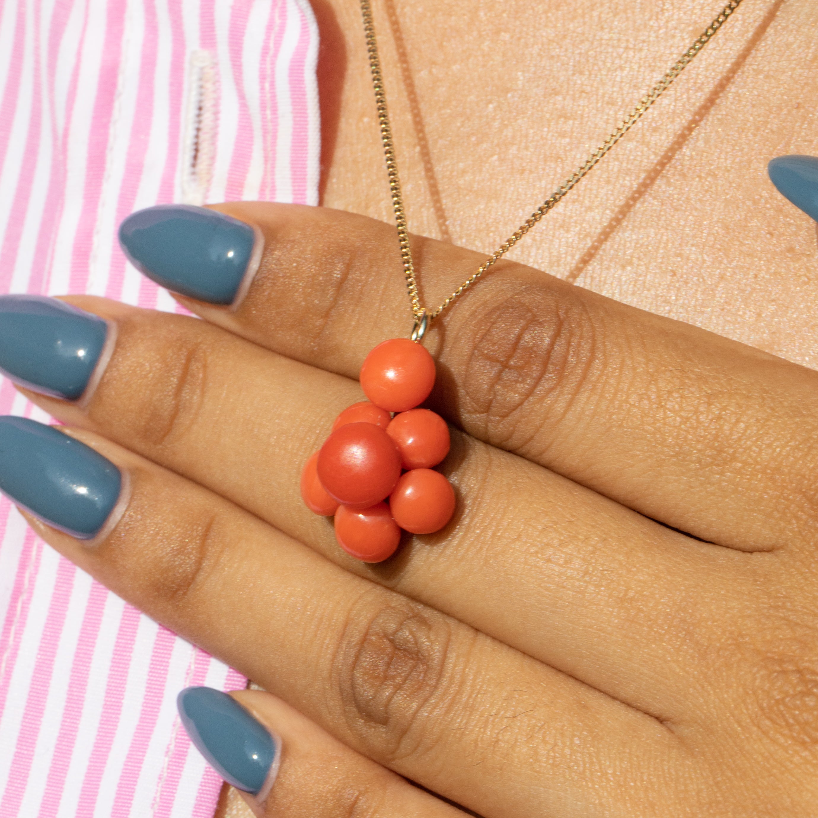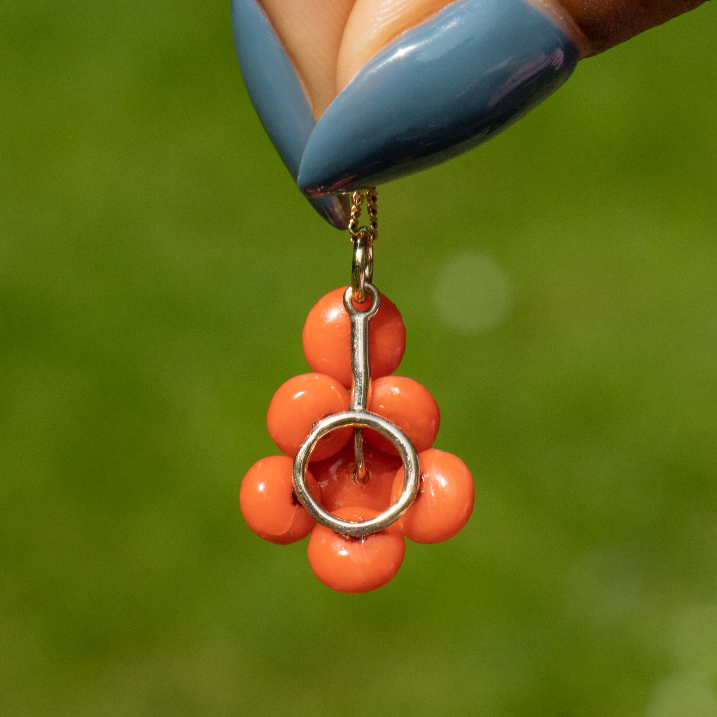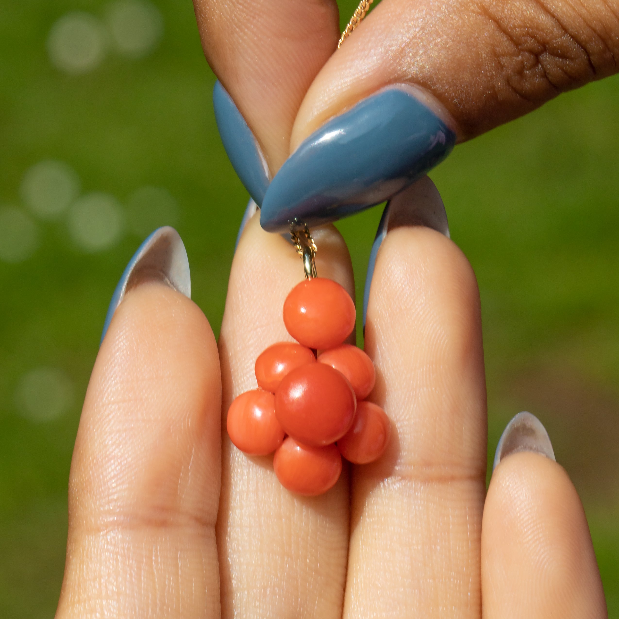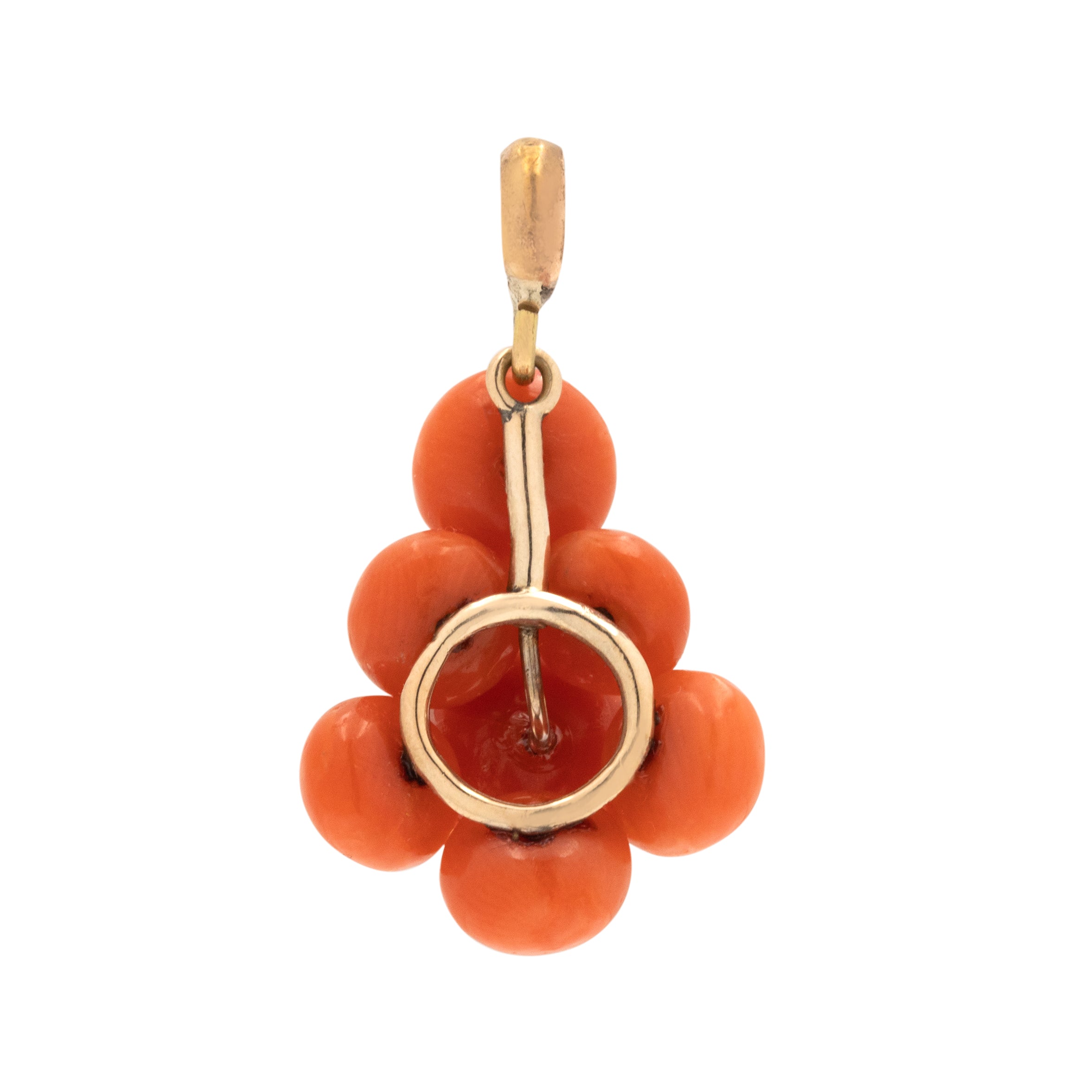アンティーク 9ct ゴールド コーラル クラスター ペンダント