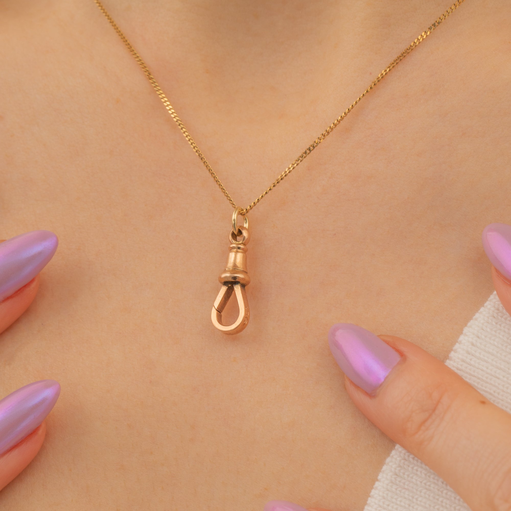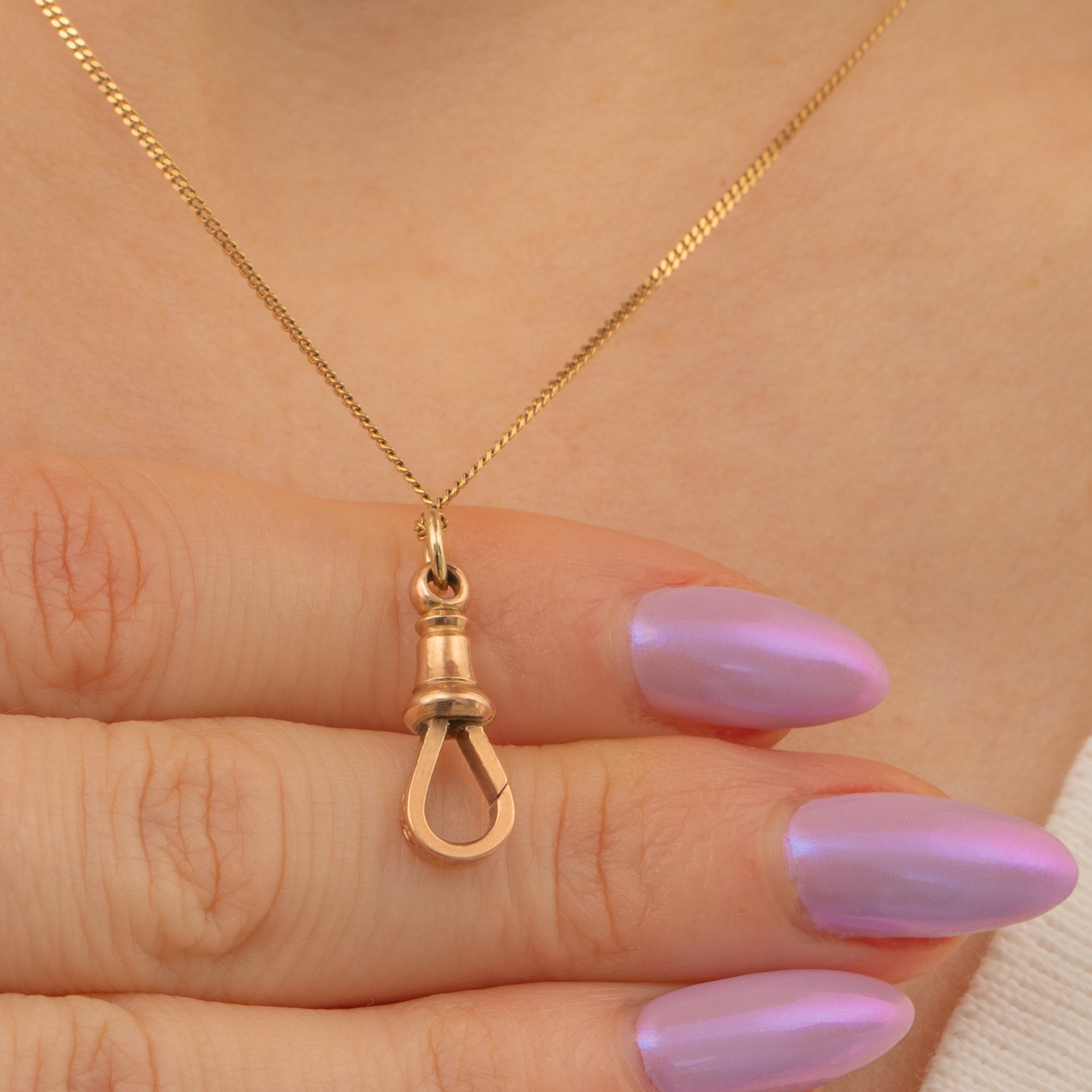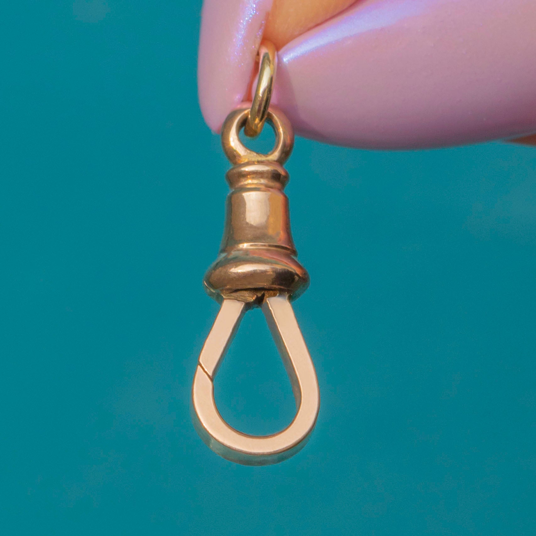 Remarkably versatile, this antique dog clip can be paired with a Gold chain to hold a sparkling charm, pendant, or fob for a look that is unique to you!