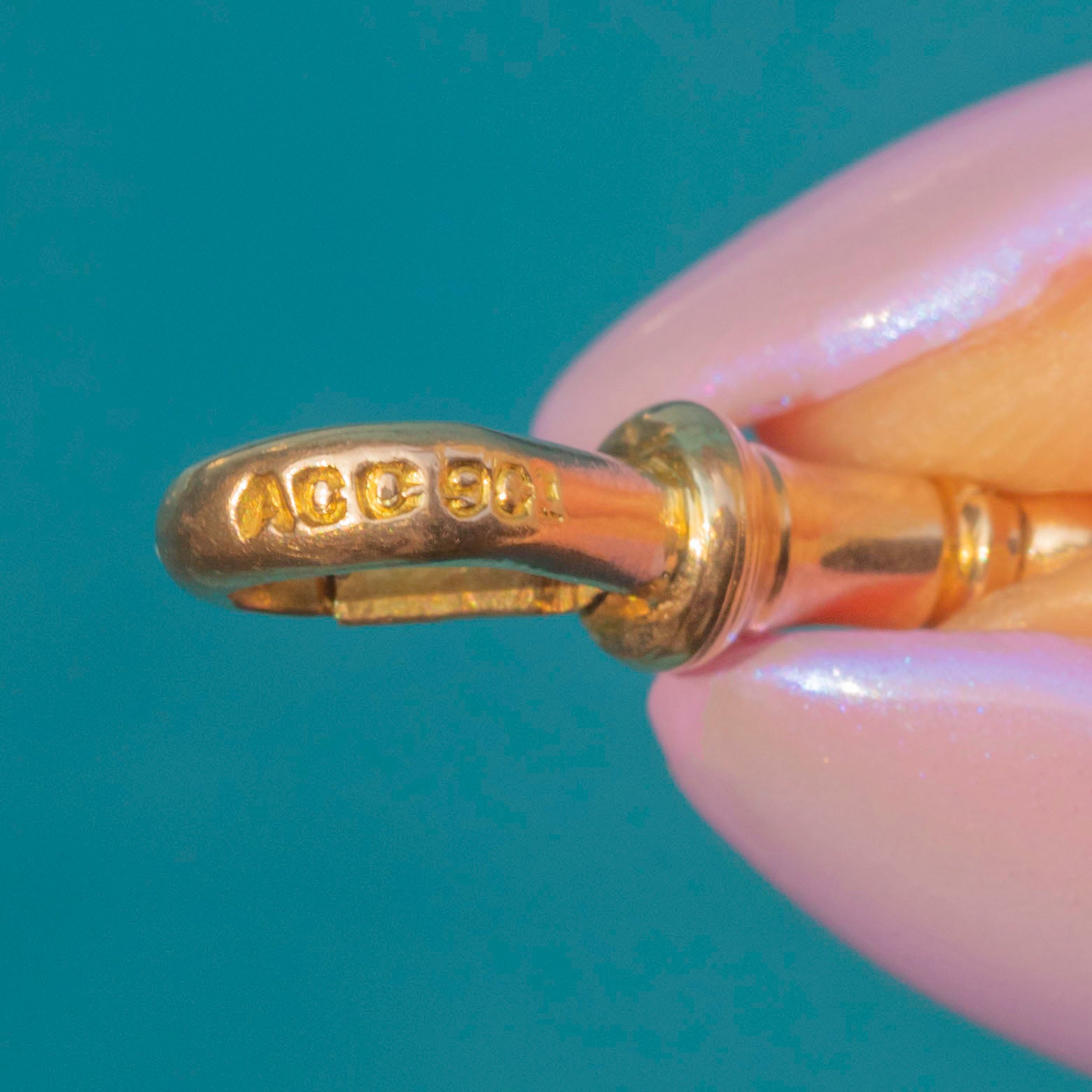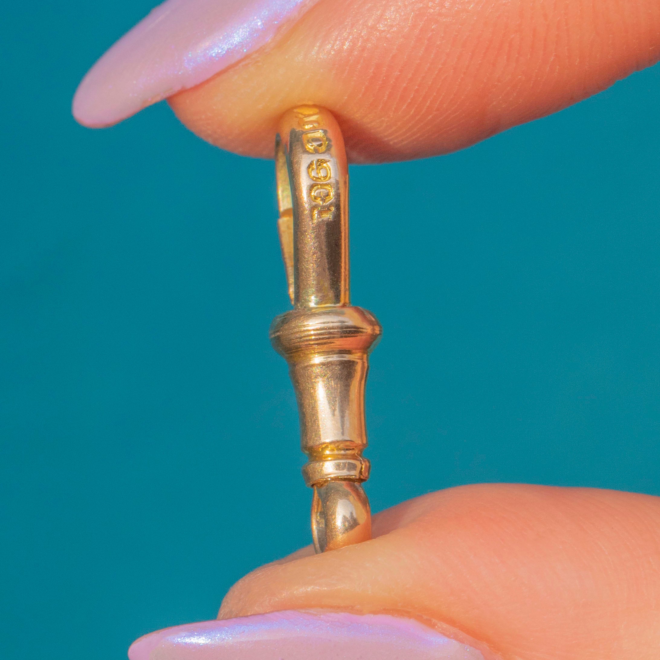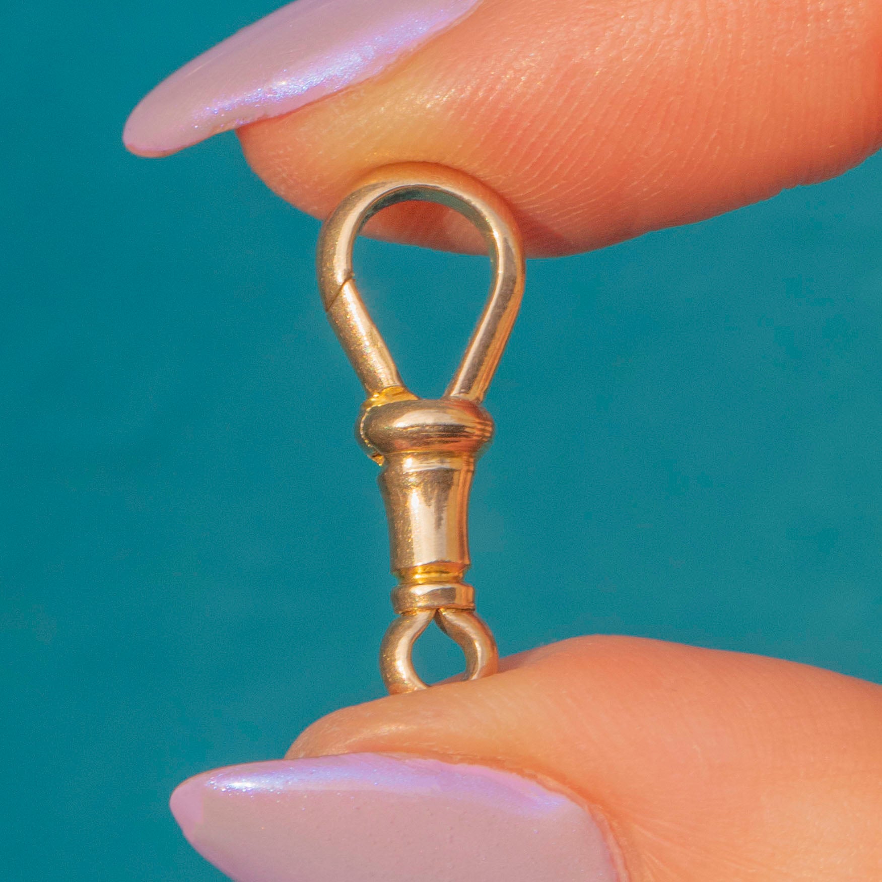 EXCELLENT. This antique 9ct Gold dog-clip is in excellent condition. She is in perfect working order and is sturdy enough to hold larger pendants and multiple charms. With only minor signs of wear commensurate with age, she is in great condition.