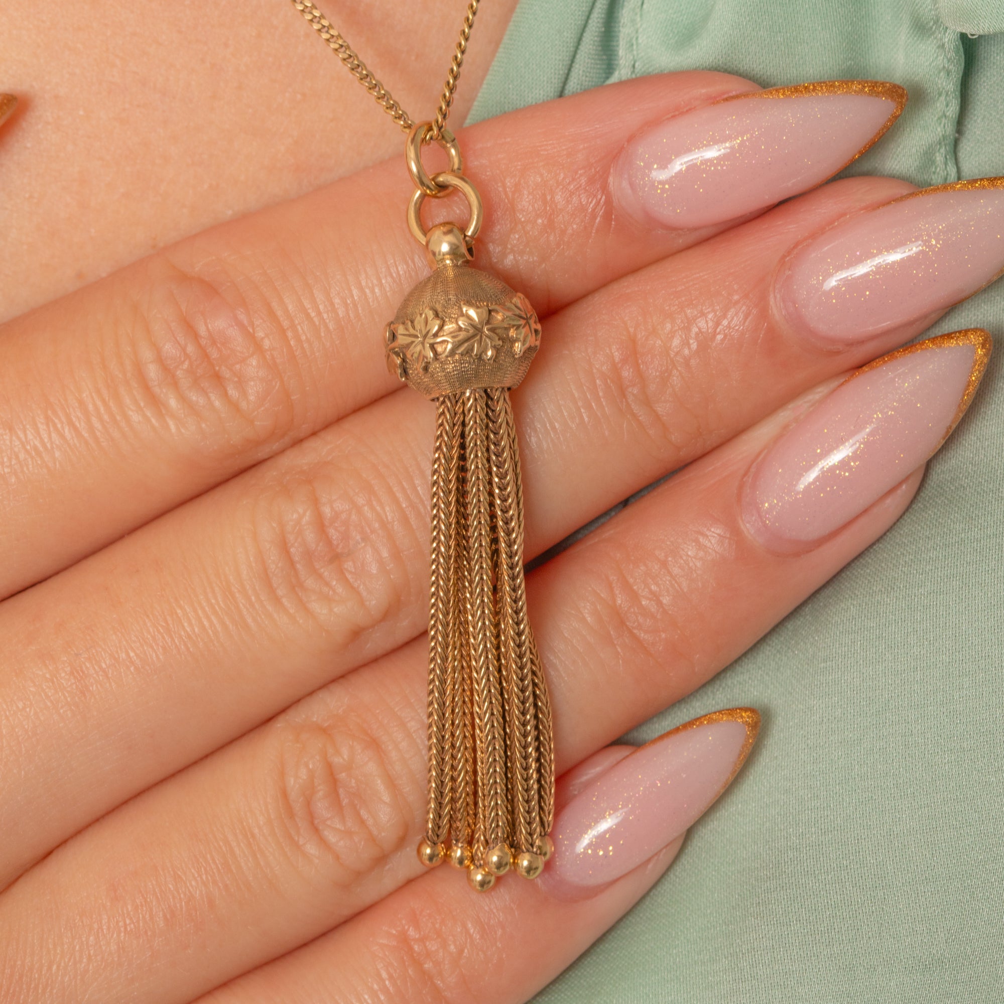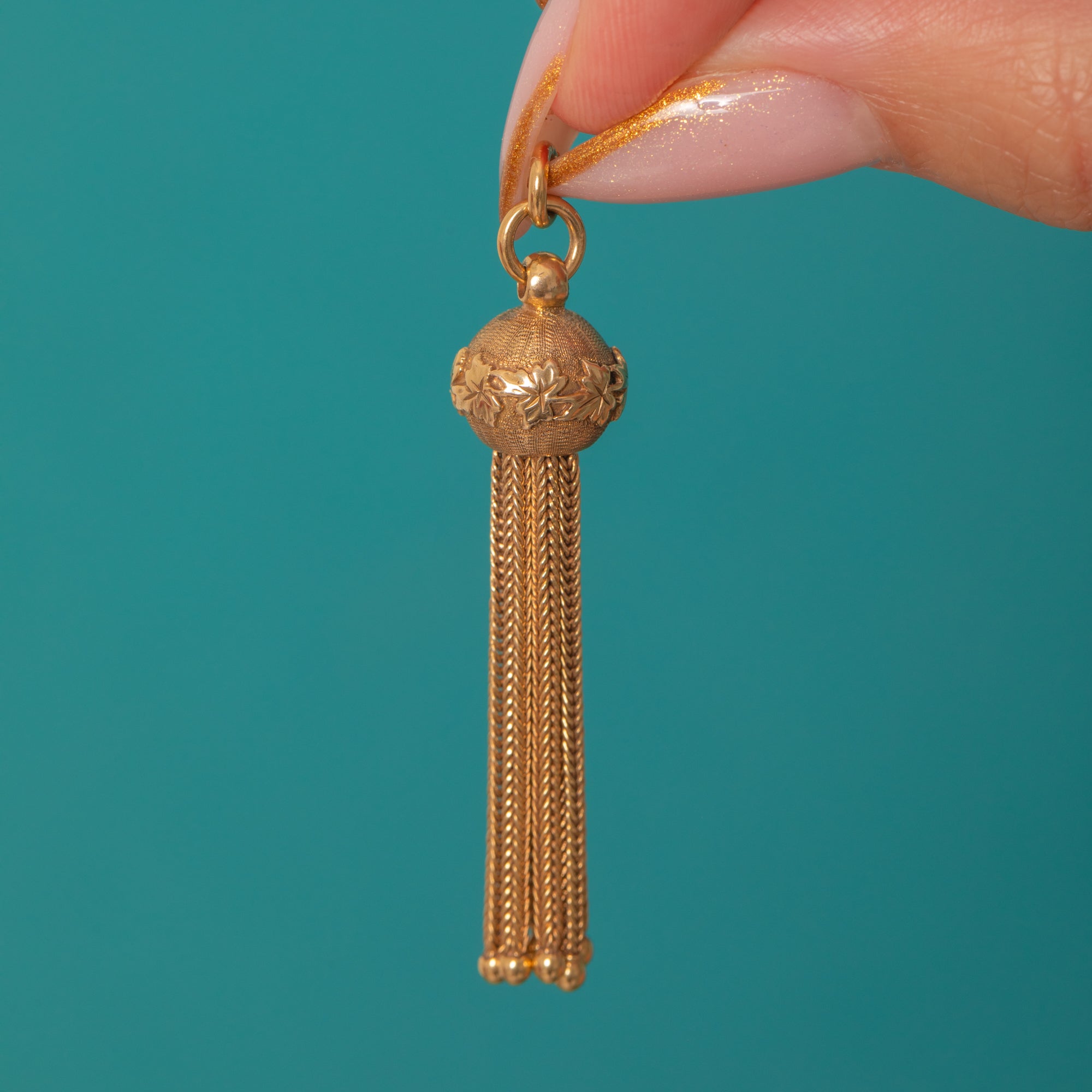 アンティーク 9ct ゴールド ドーム型 フィグリーフ タッセル チャーム