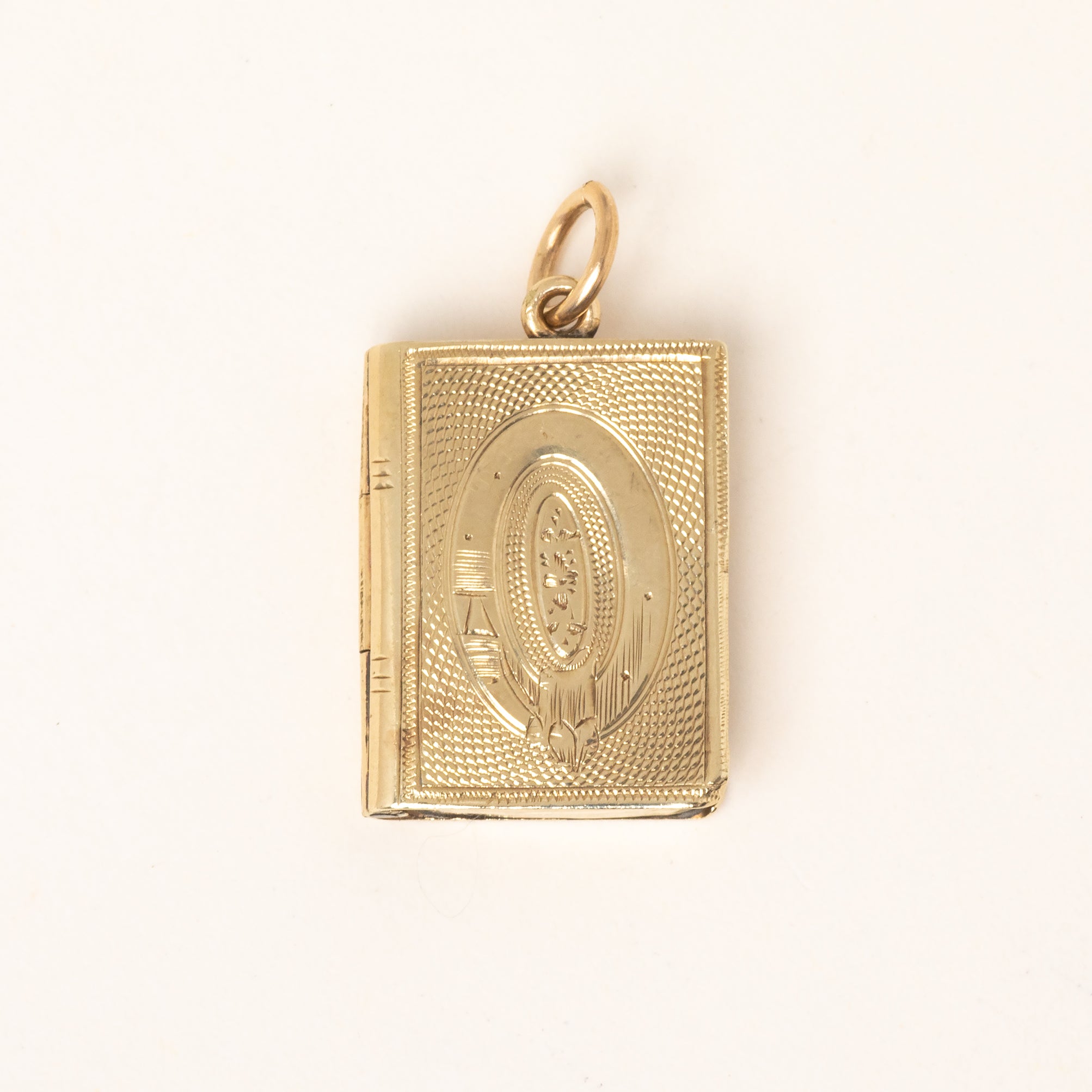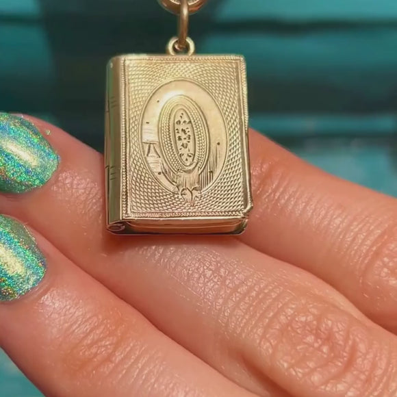 Antique 9ct Gold Engraved Book Locket, Buckle Motif