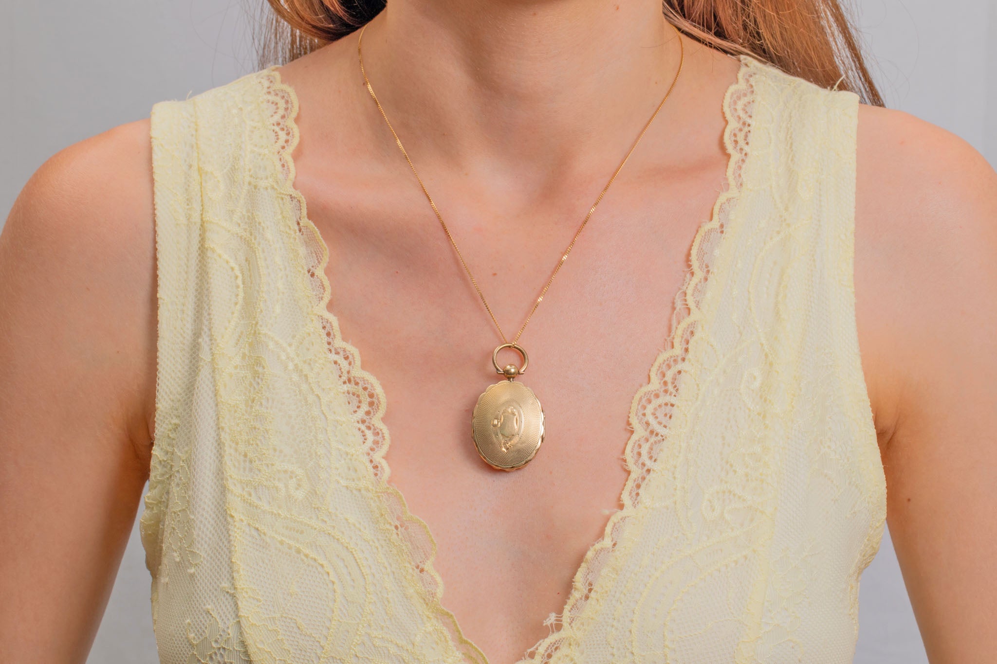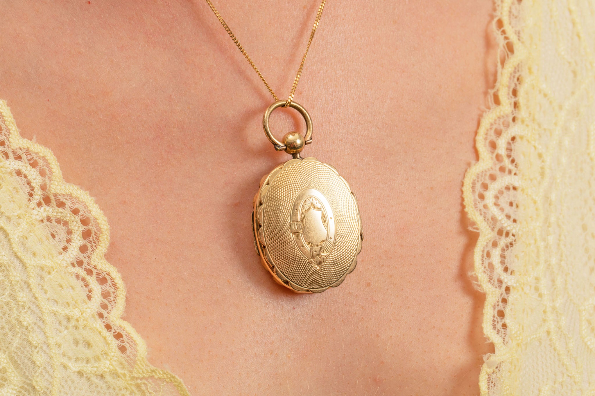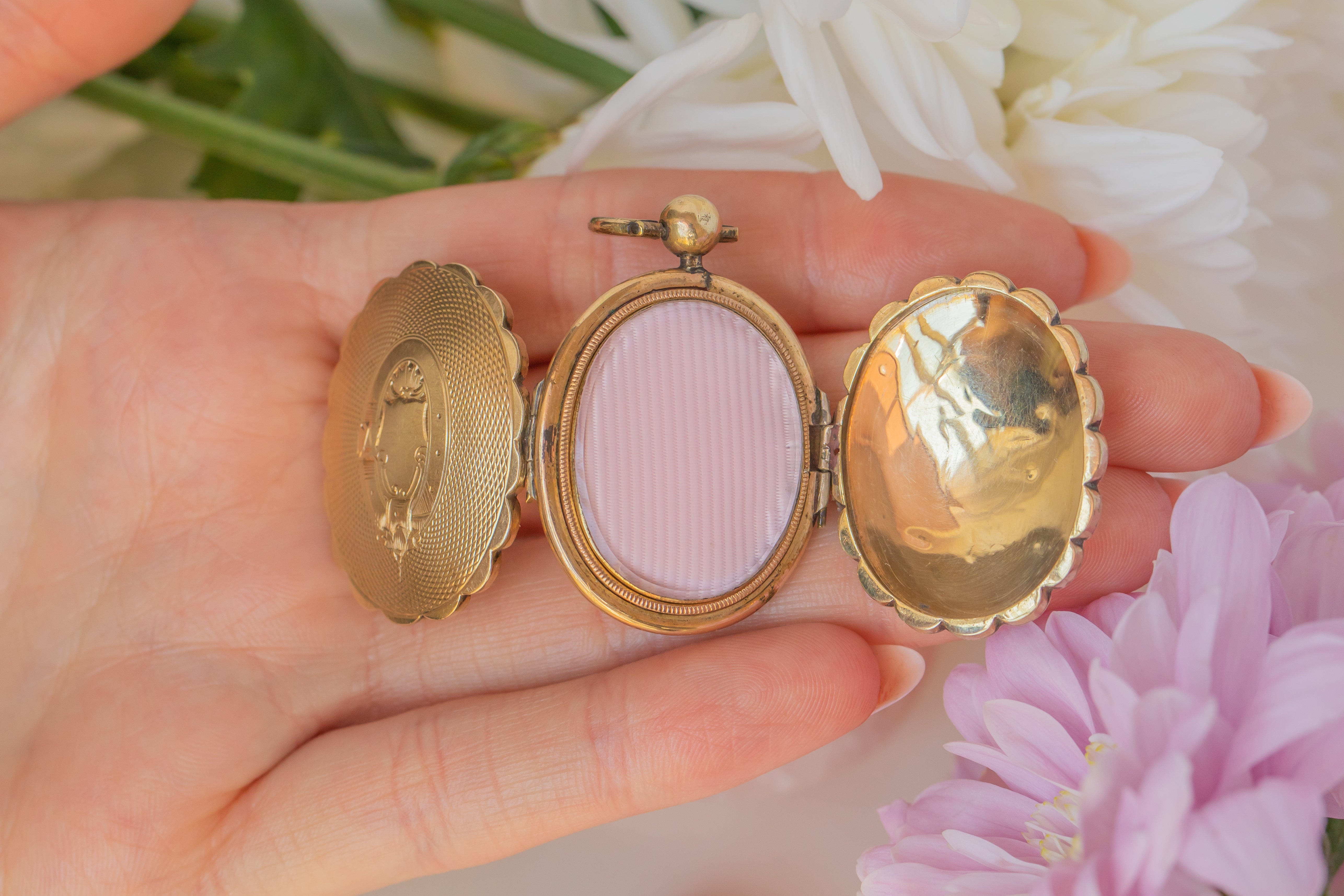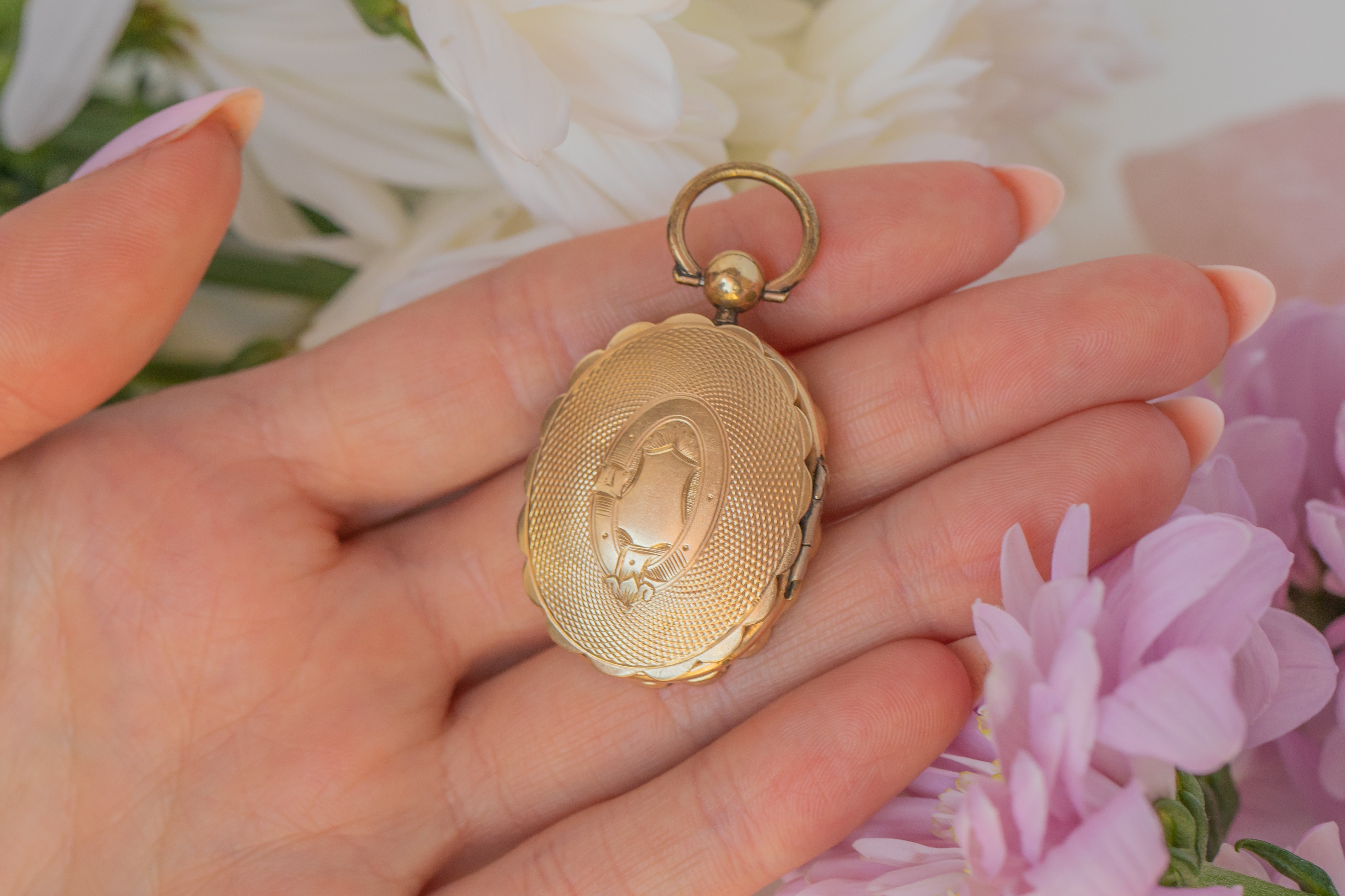 アンティーク 9ct ゴールド 彫刻入りバックル ポートレート ロケット