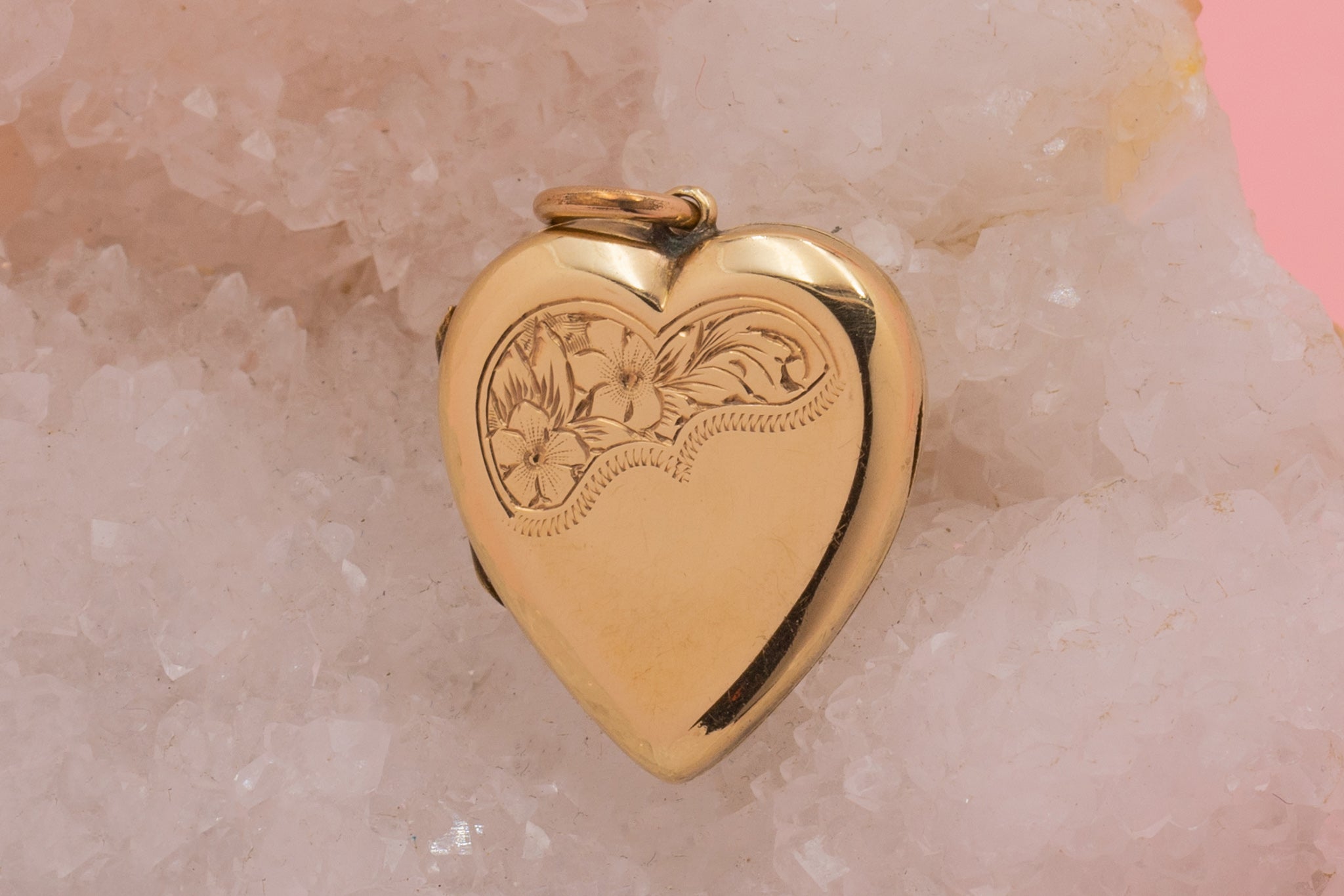 アンティーク 9ct ゴールド 彫刻入りハートロケット