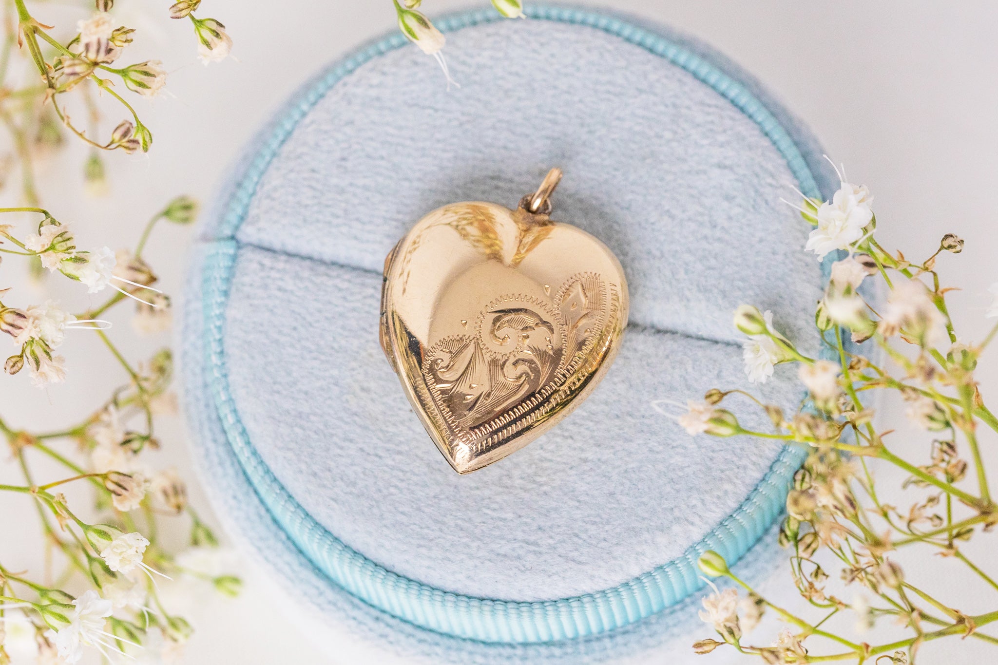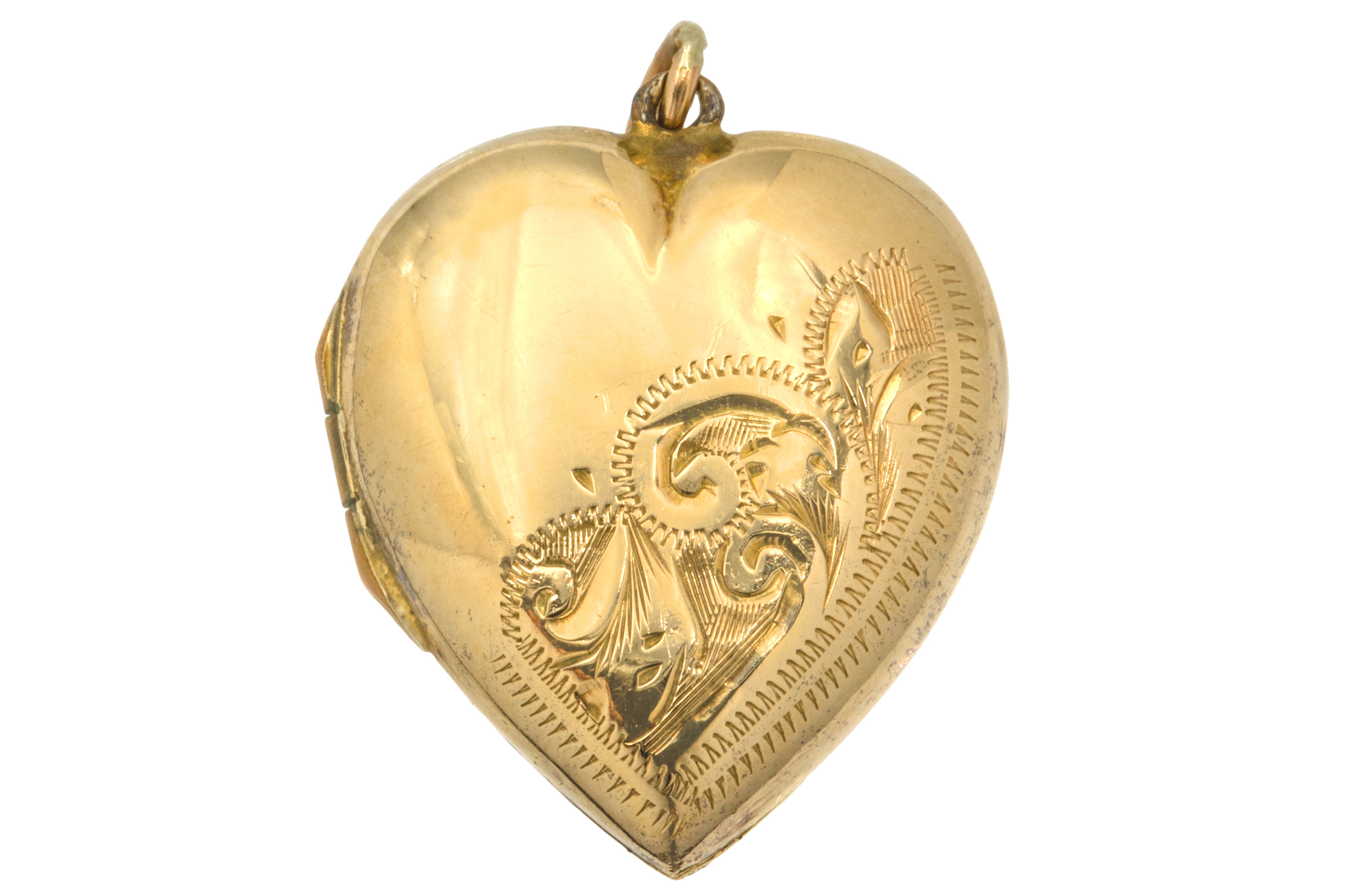 アンティーク 9ct ゴールド 彫刻入りハートロケット