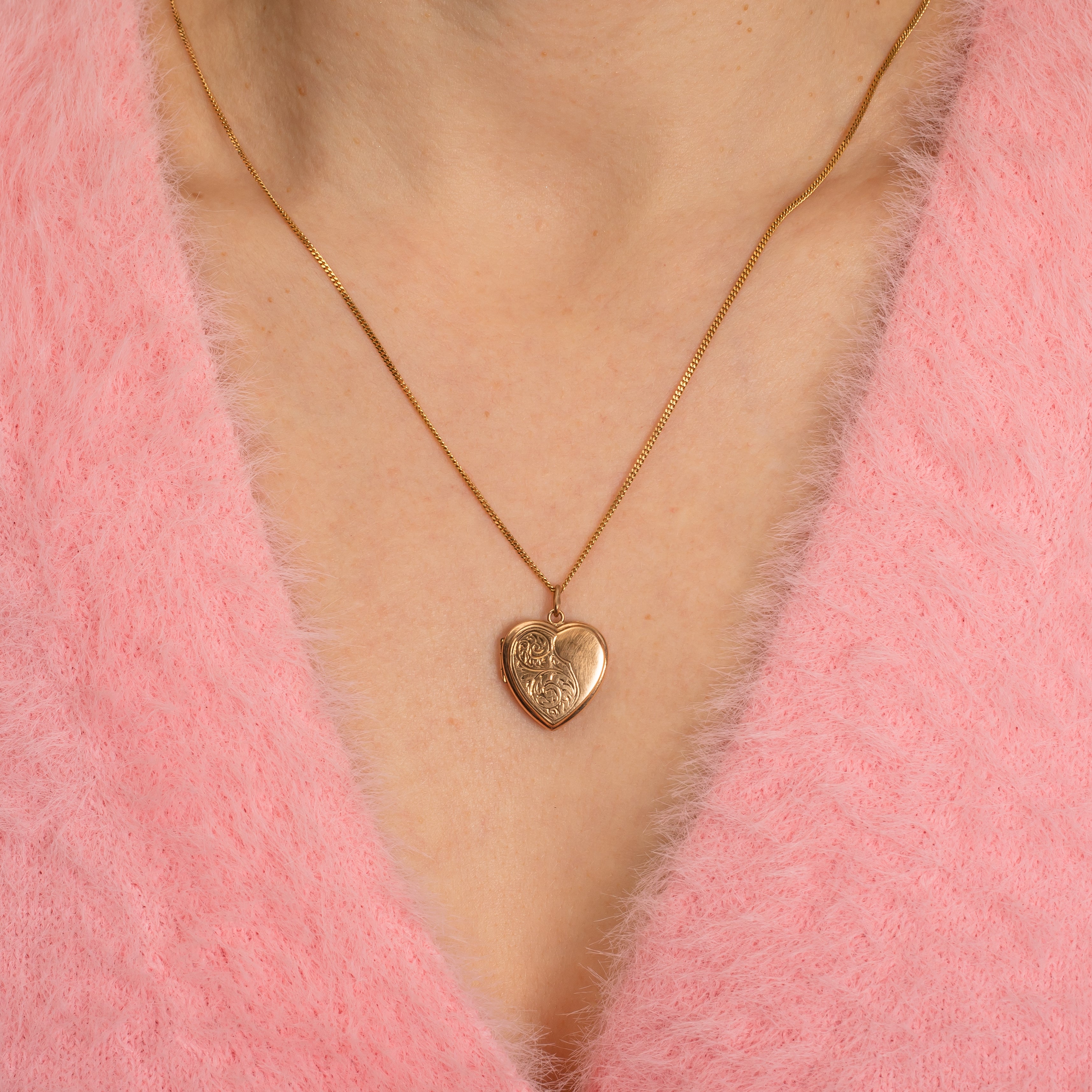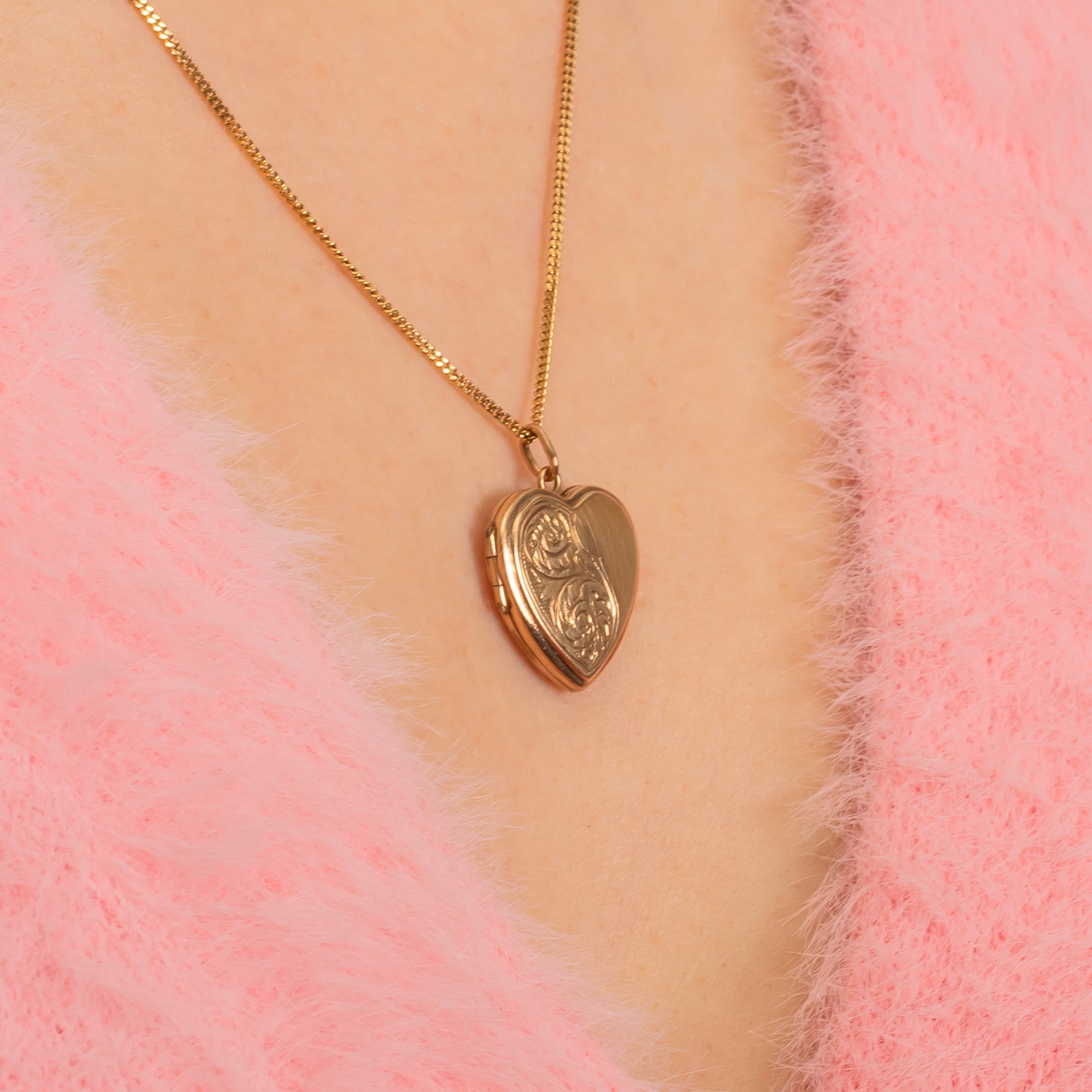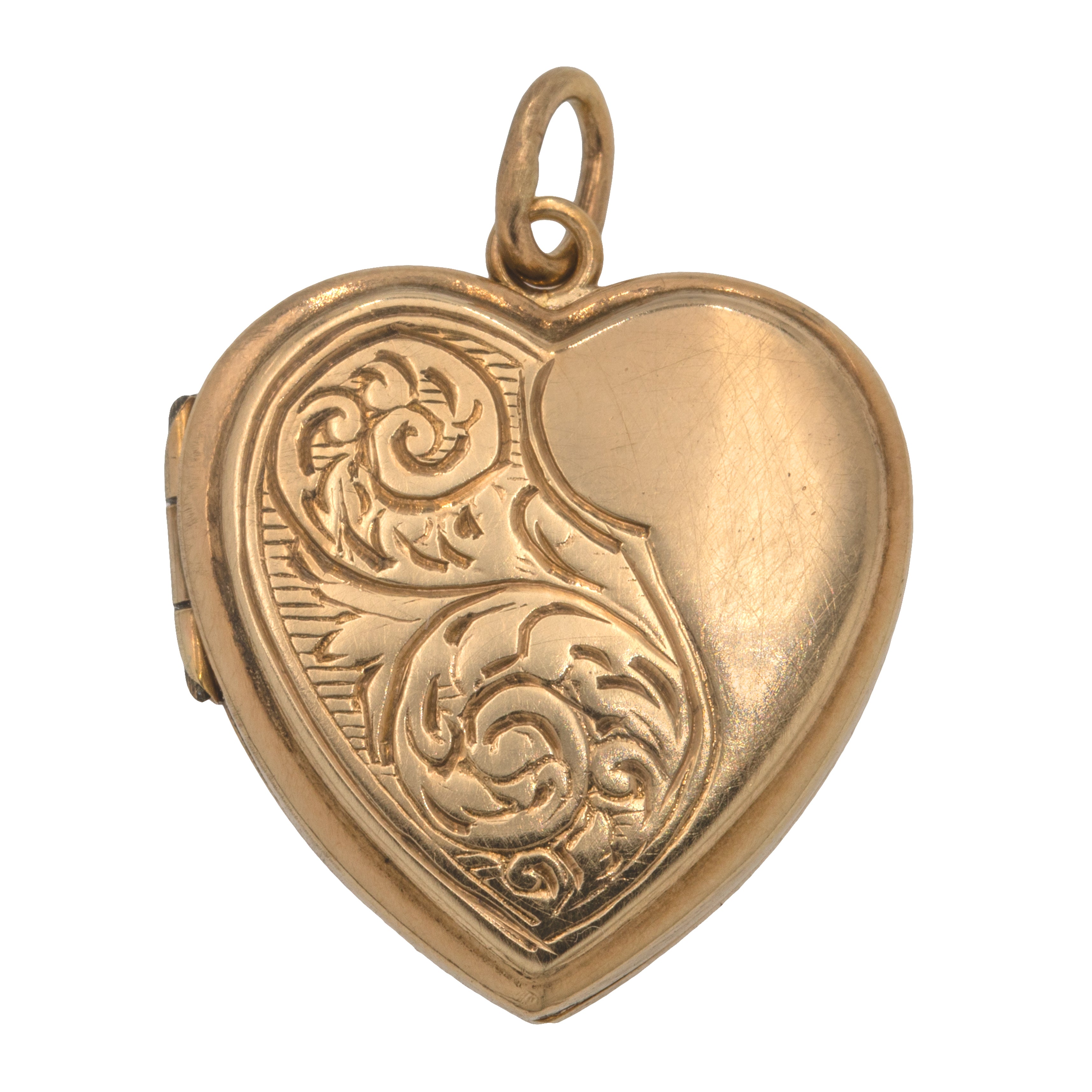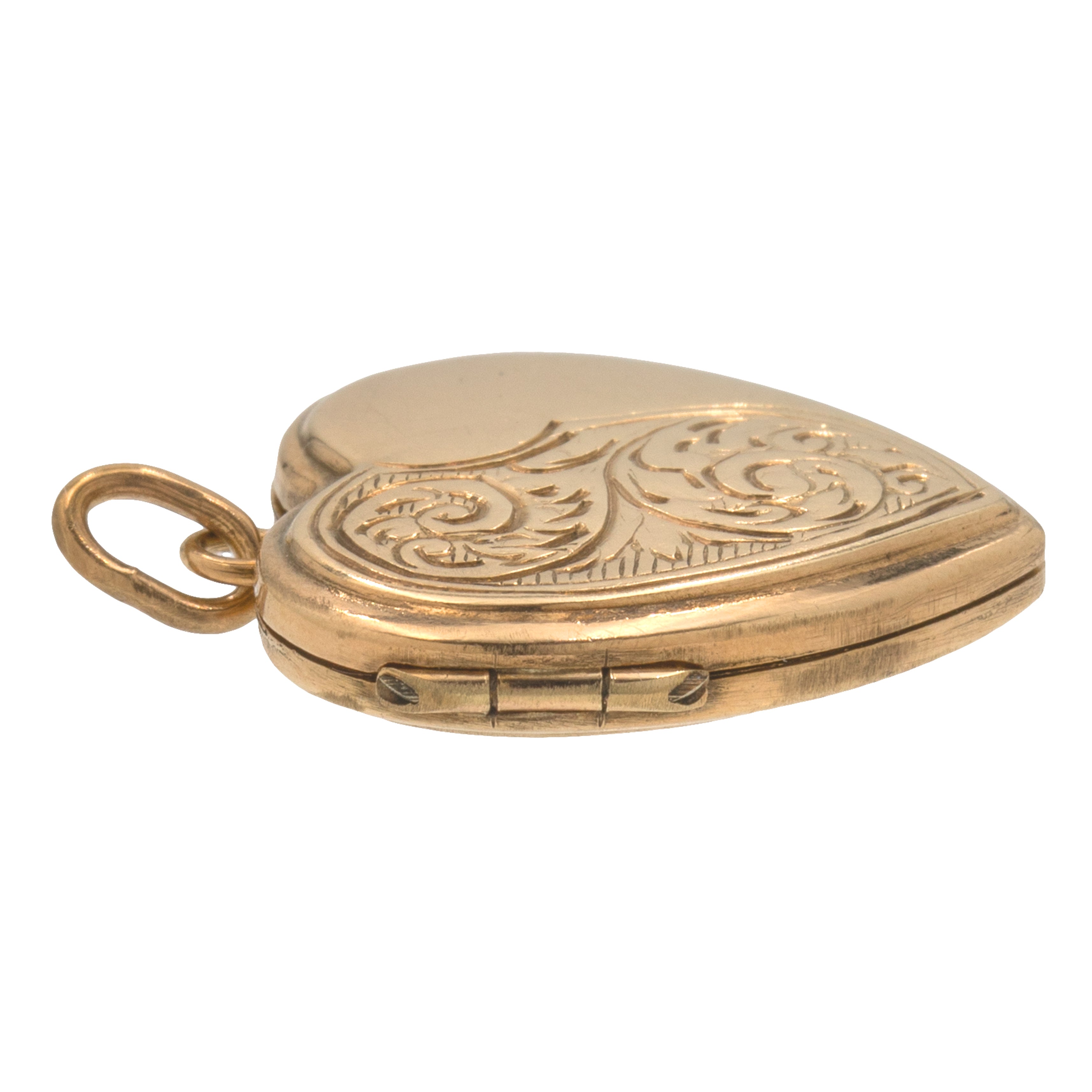 アンティーク 9ct ゴールド 彫刻入りハートロケット