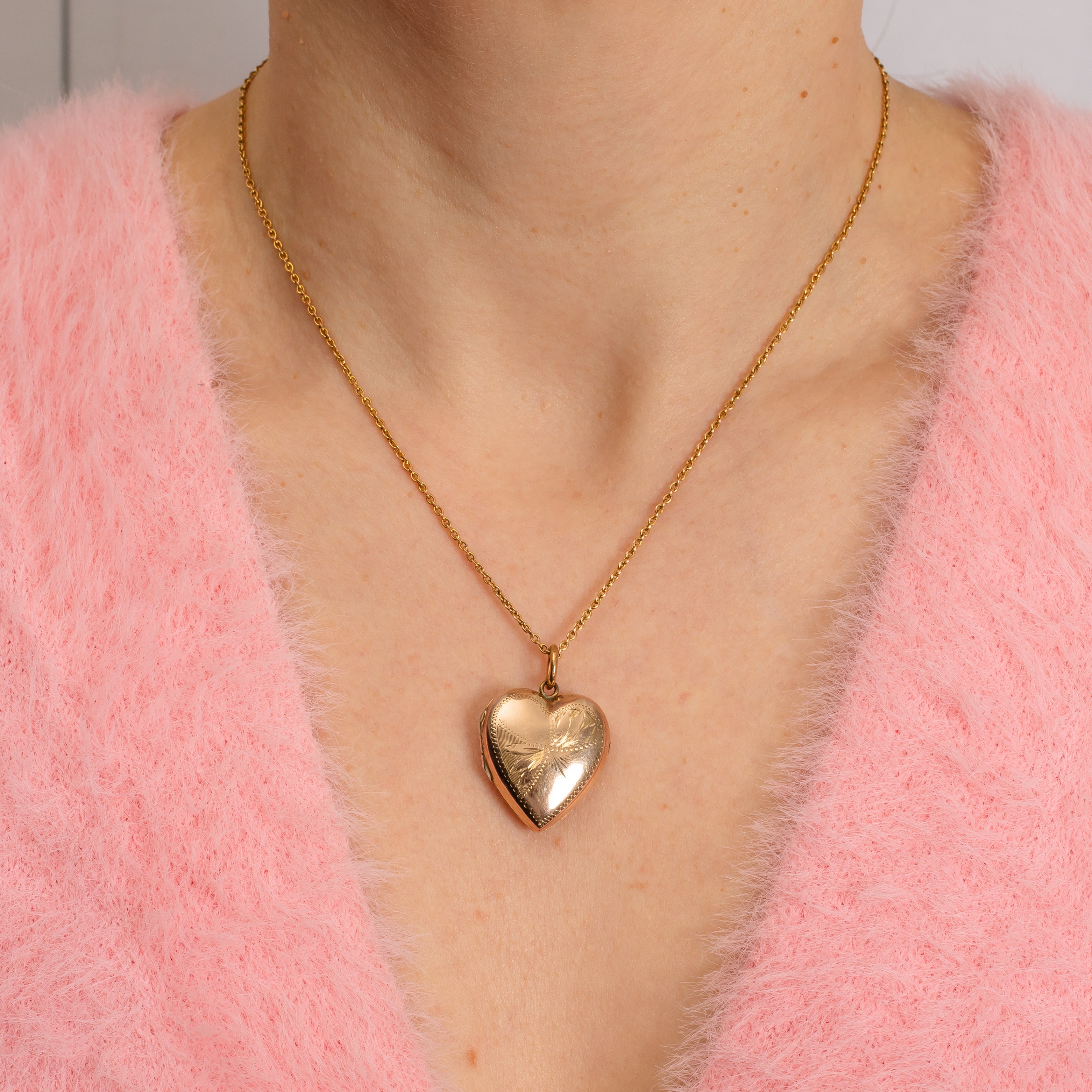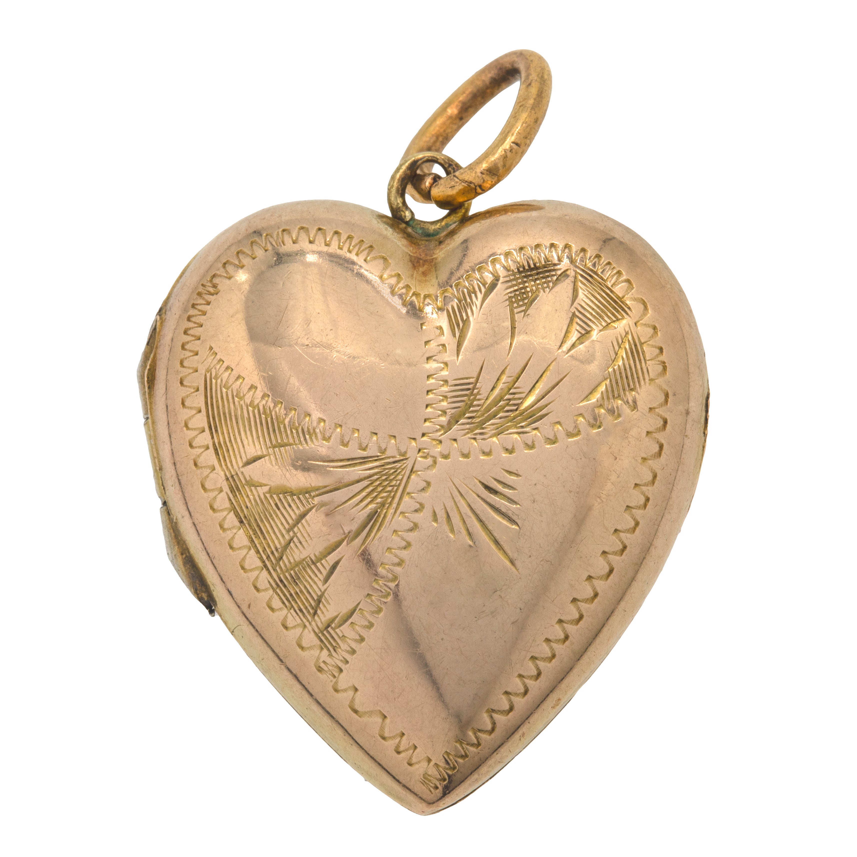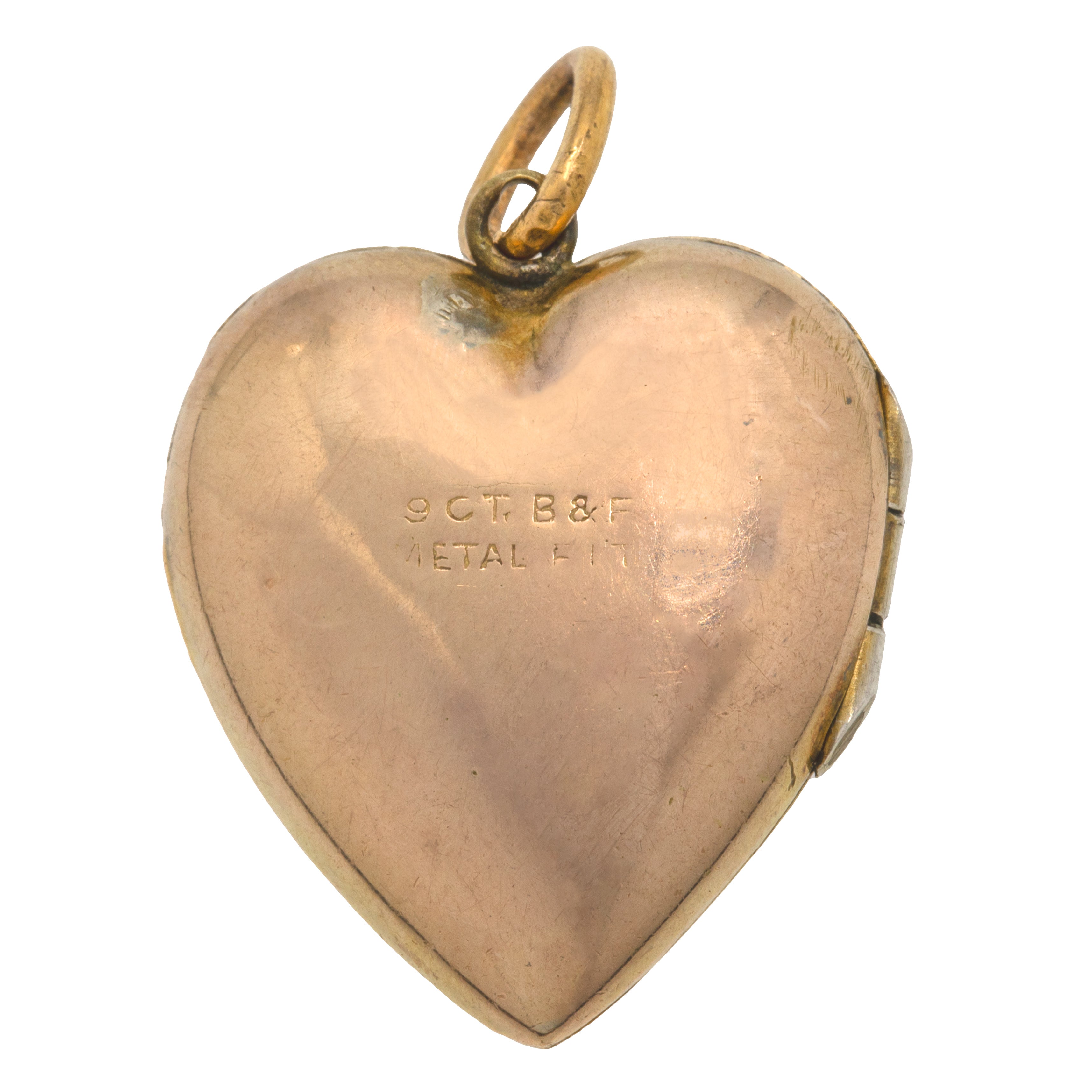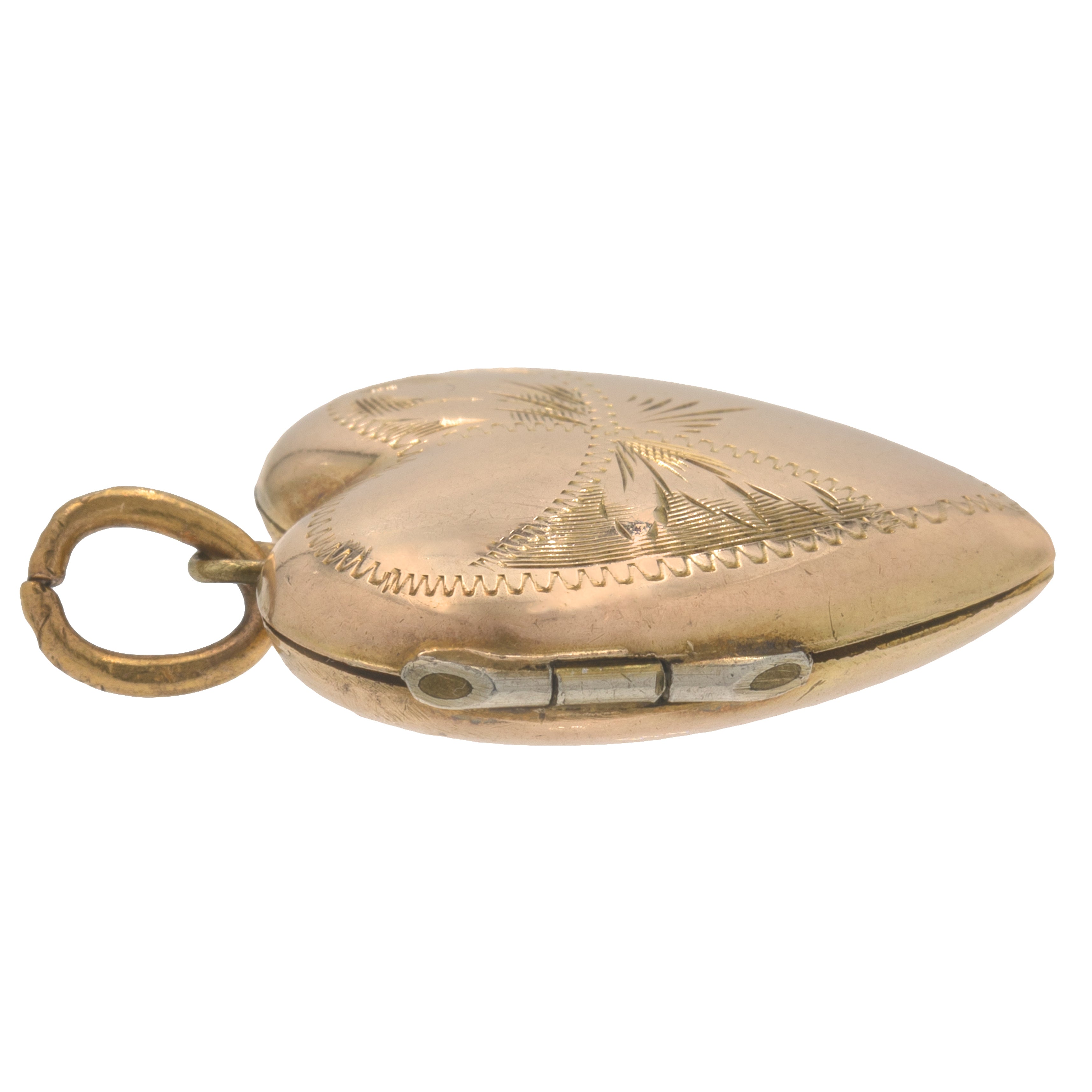 アンティーク 9ct ゴールド 彫刻入りハートロケット