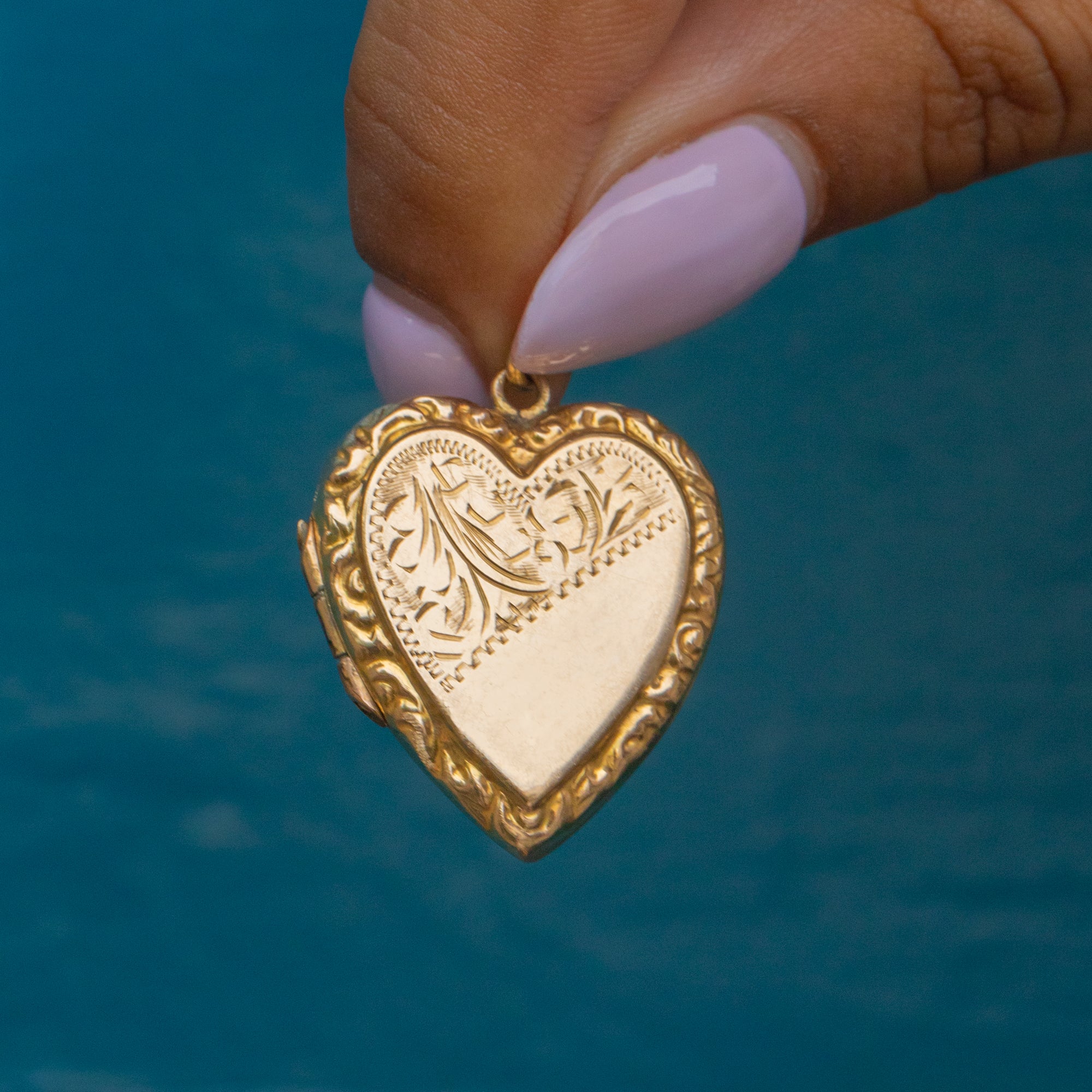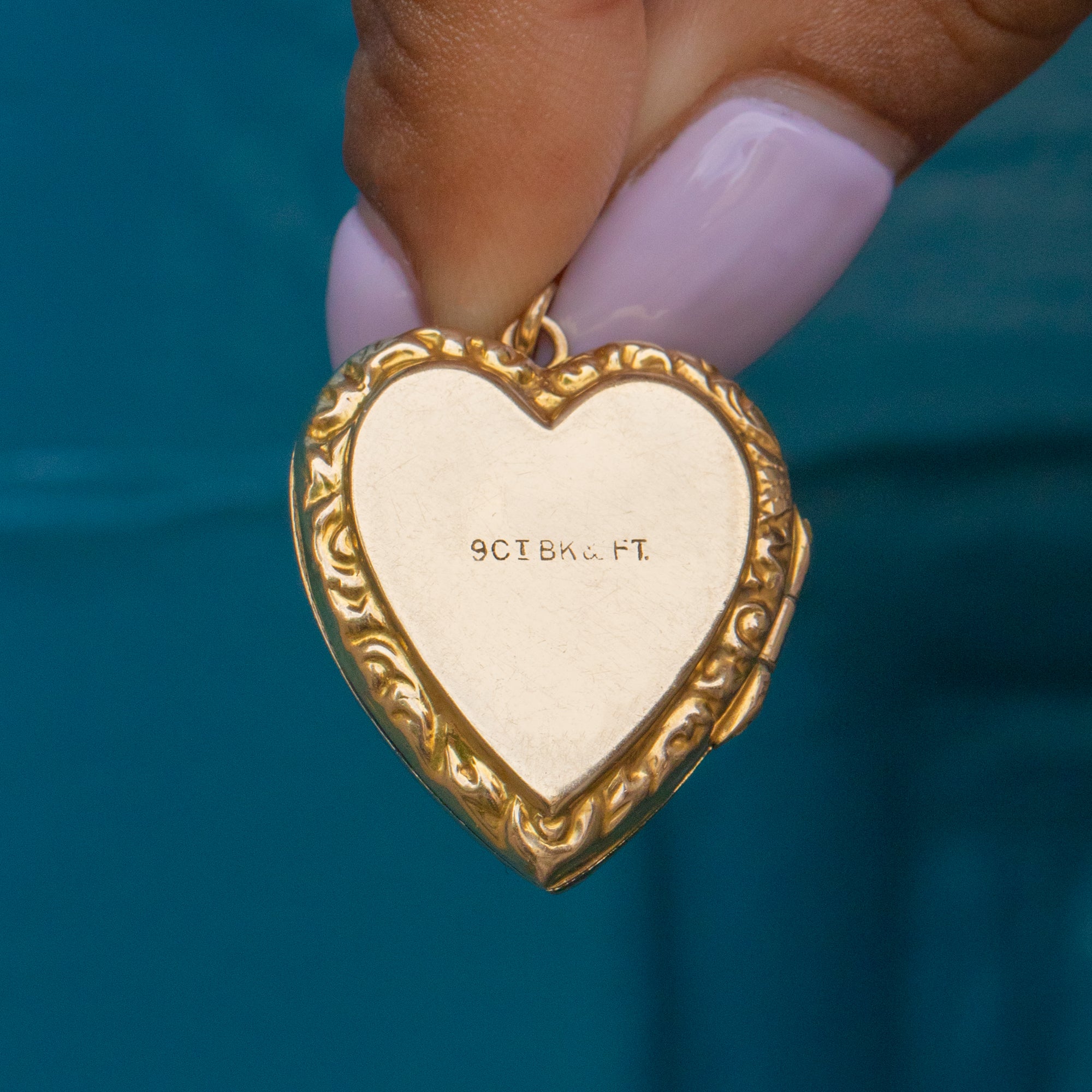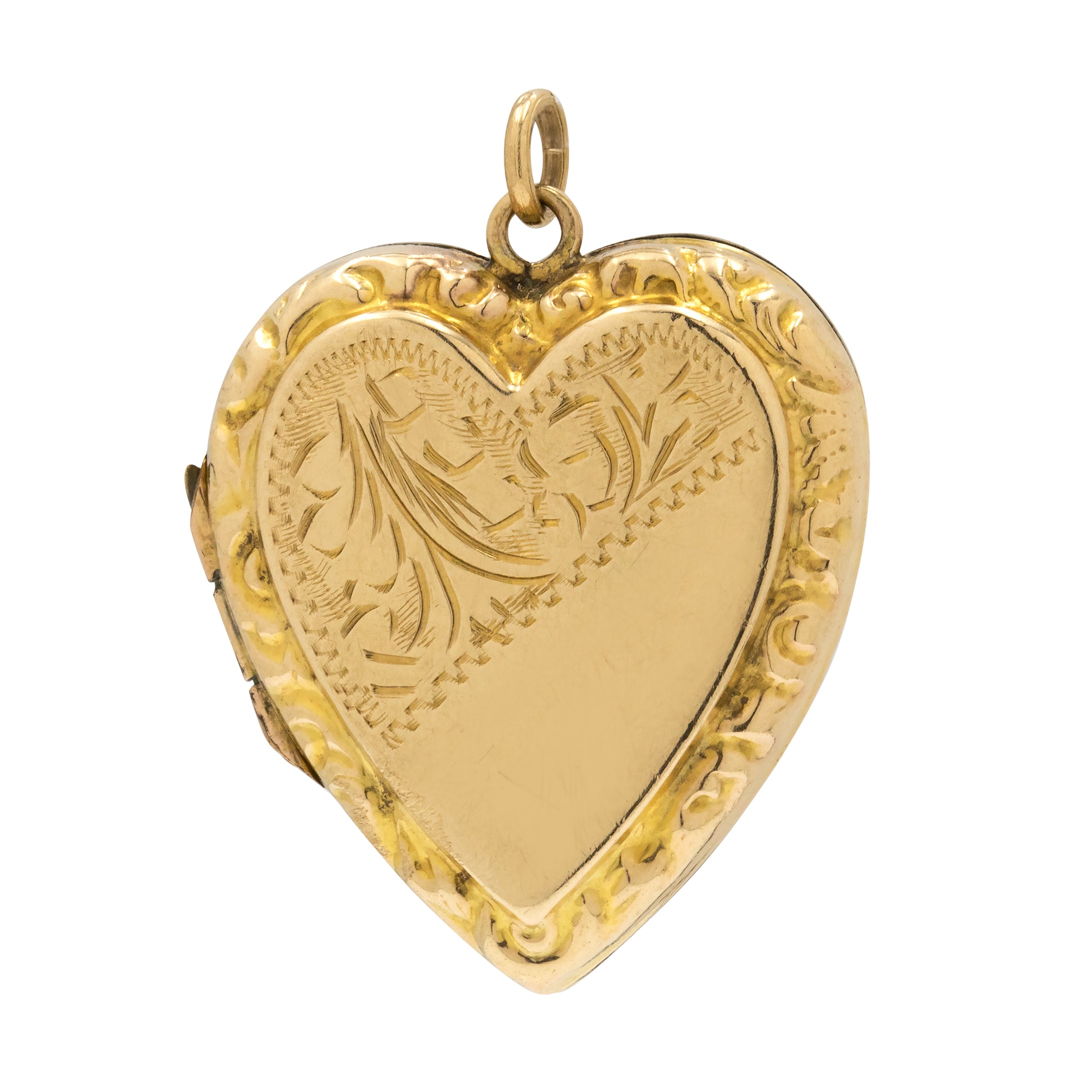 アンティーク 9ct ゴールド 彫刻入りハートロケット