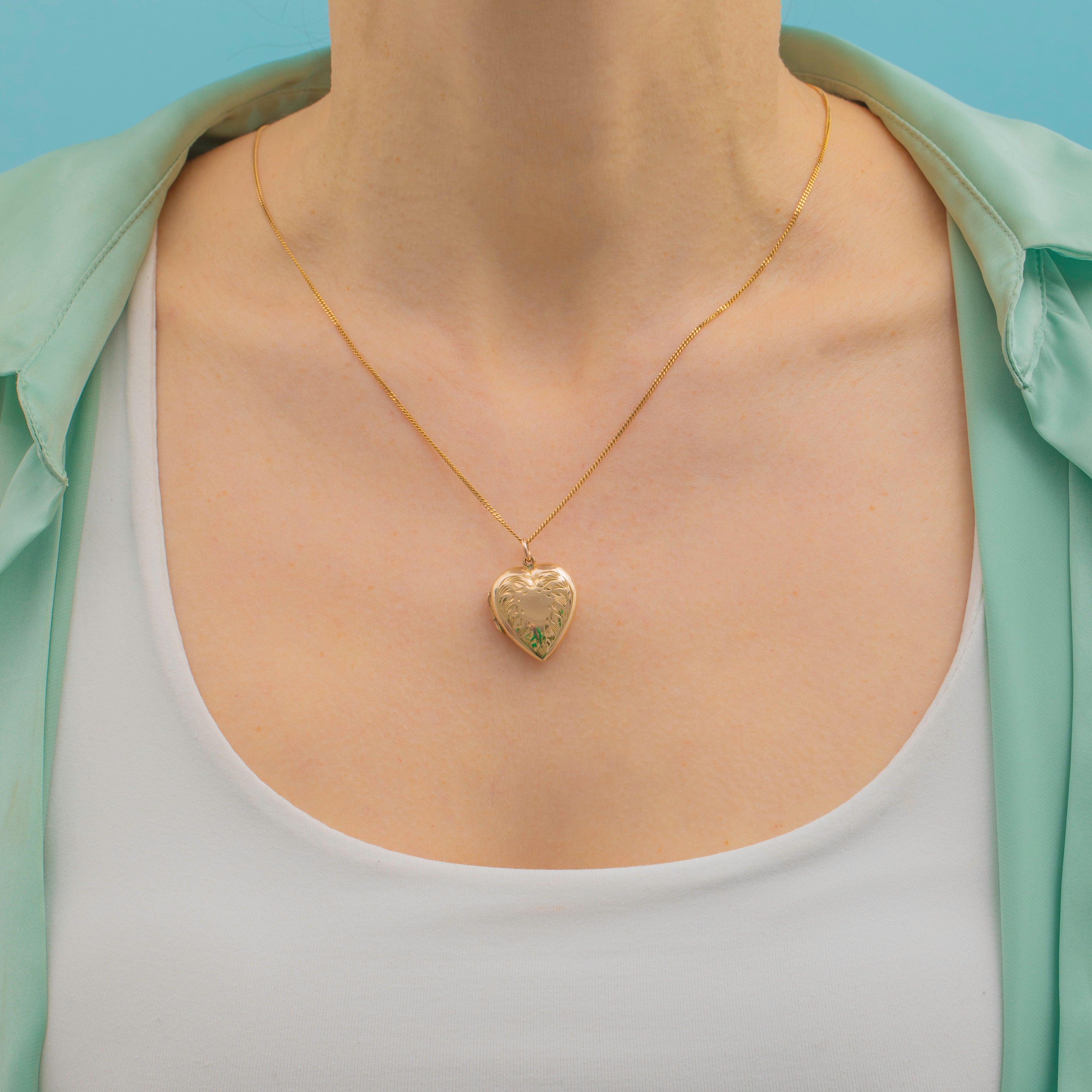 A timeless symbol of love, this antique 9ct Gold engraved puffy heart locket would make the perfect sentimental gift choice! The front of the locket has a gorgeous display of finely engraved details, framing a blank space to which you could add a personal engraving if you wish.