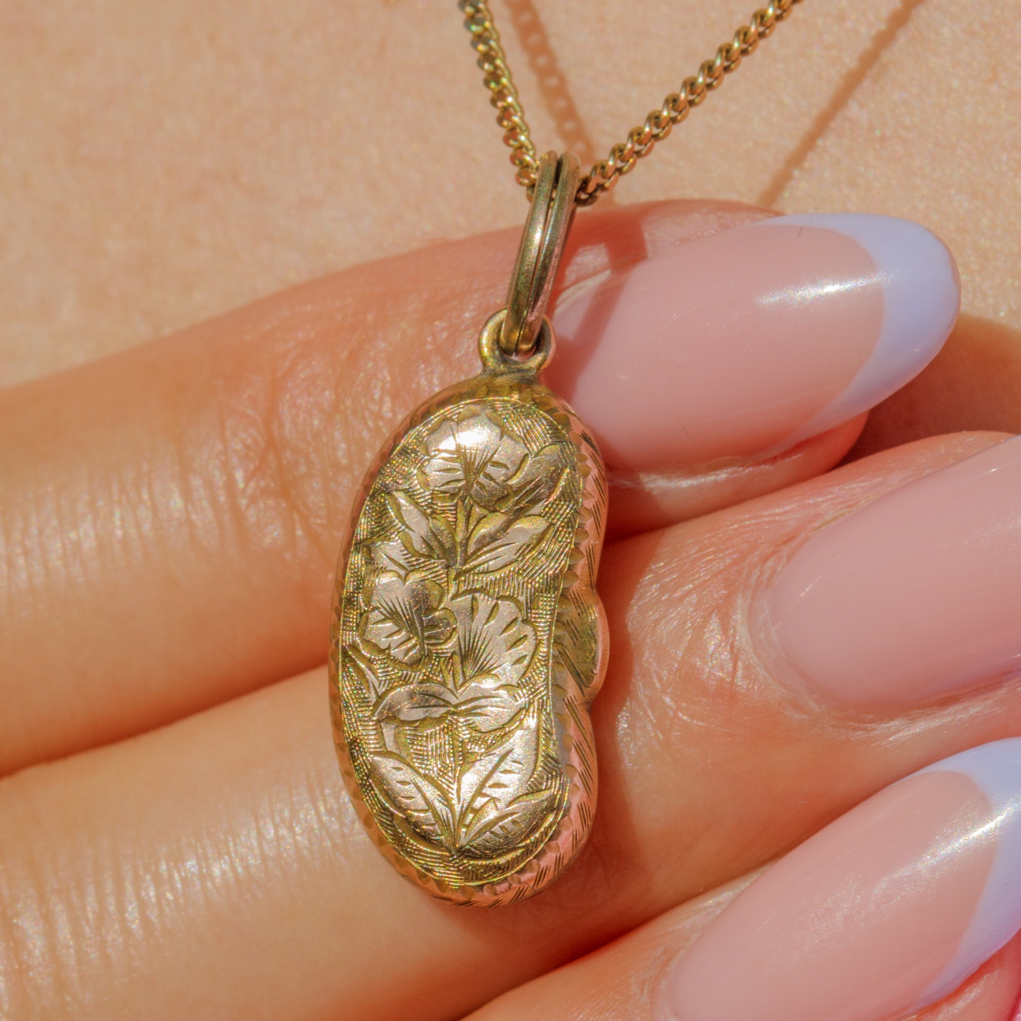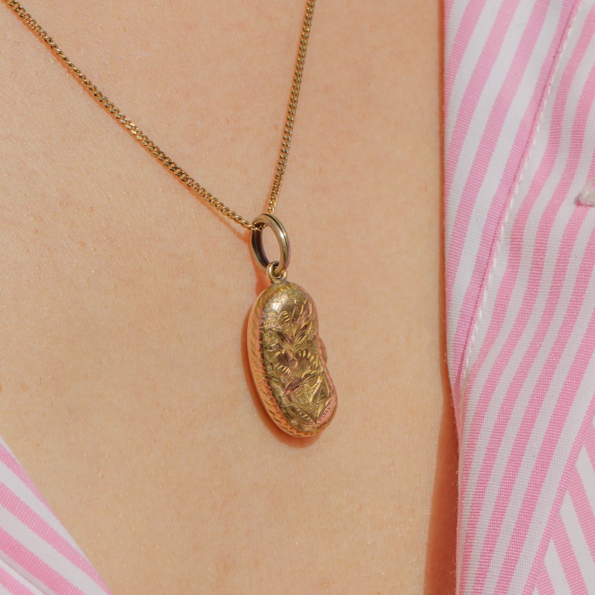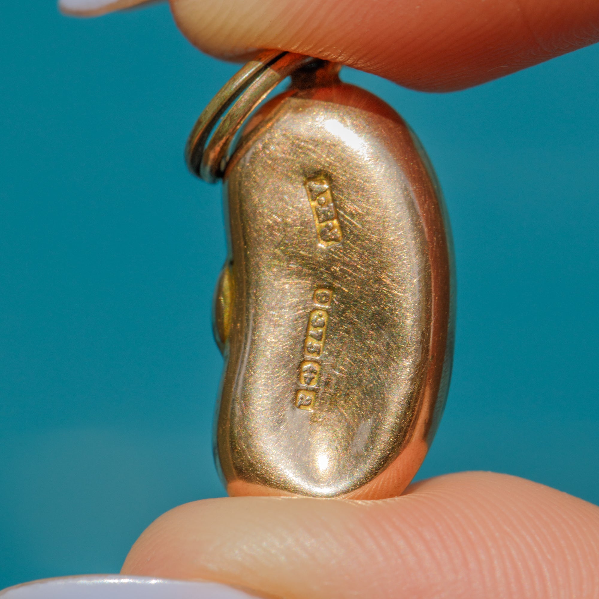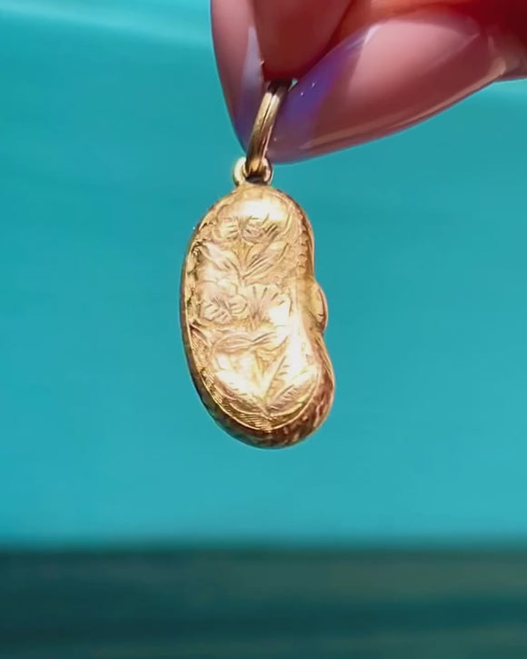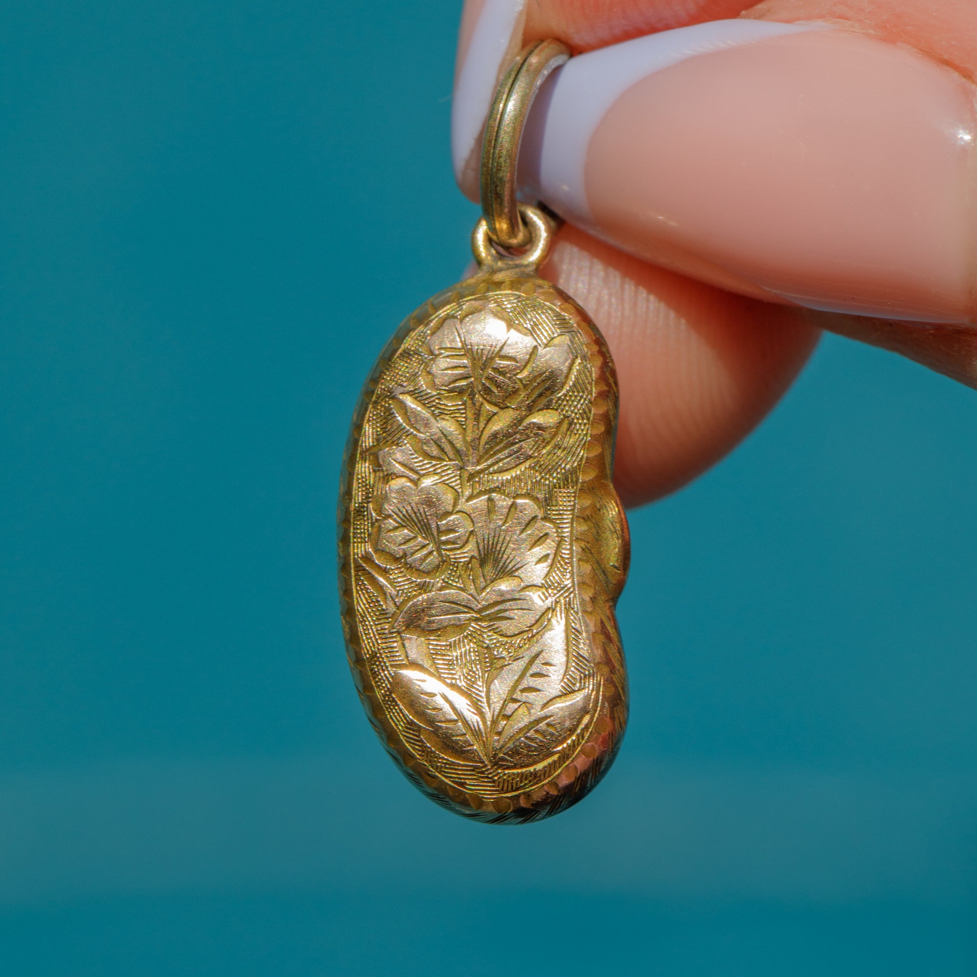 Antique 9ct Gold Engraved Lucky Bean Charm c.1900
