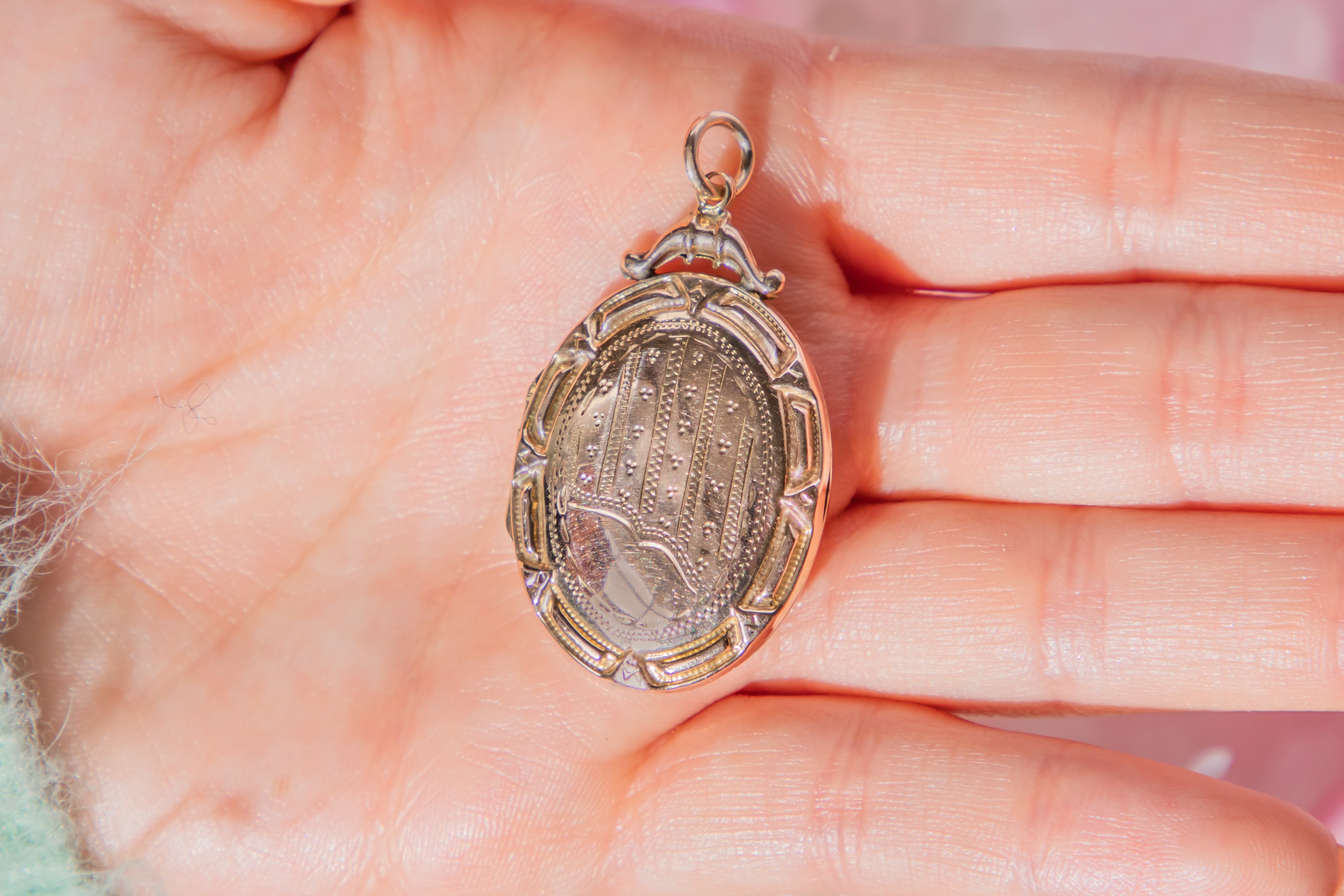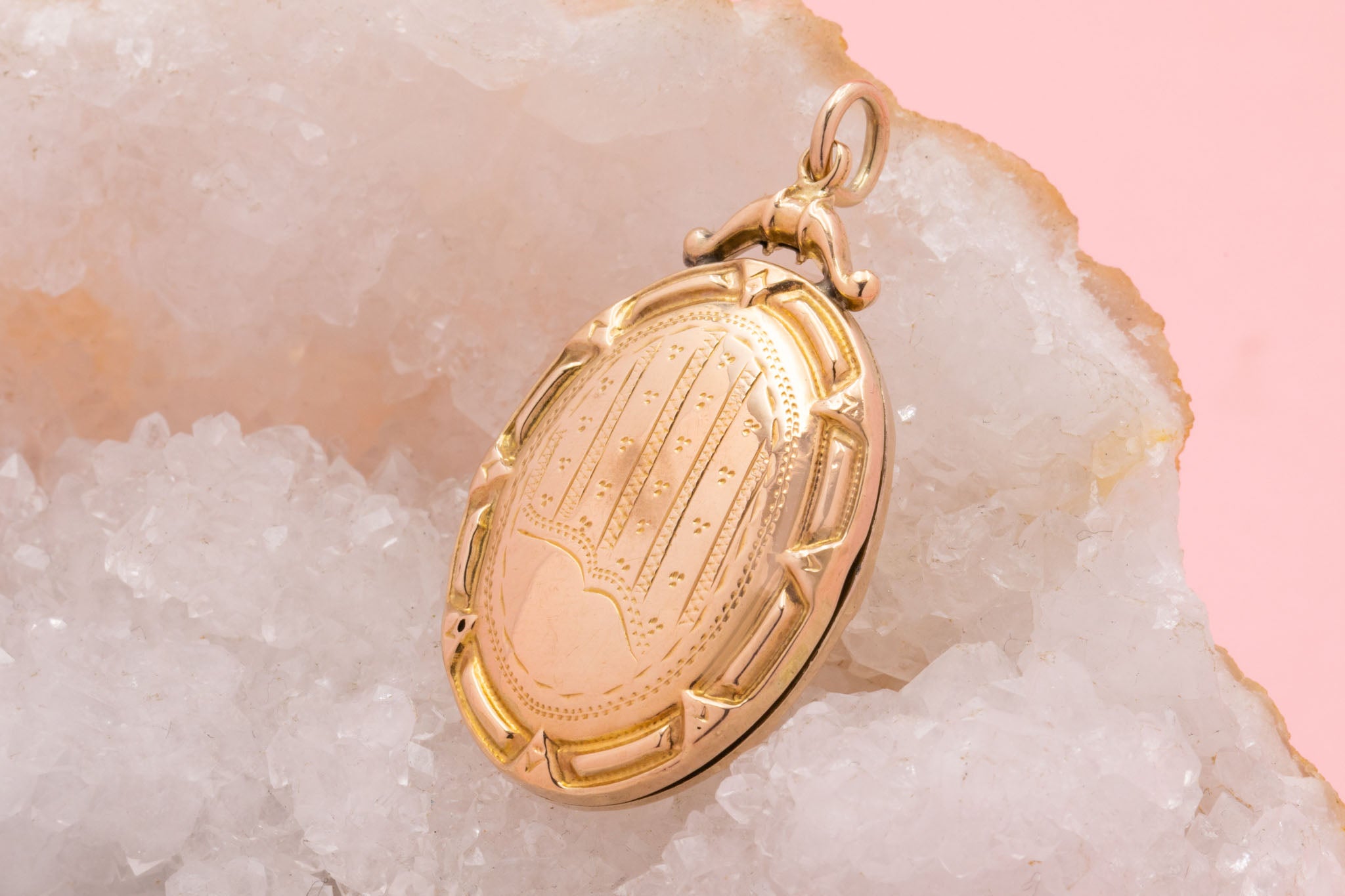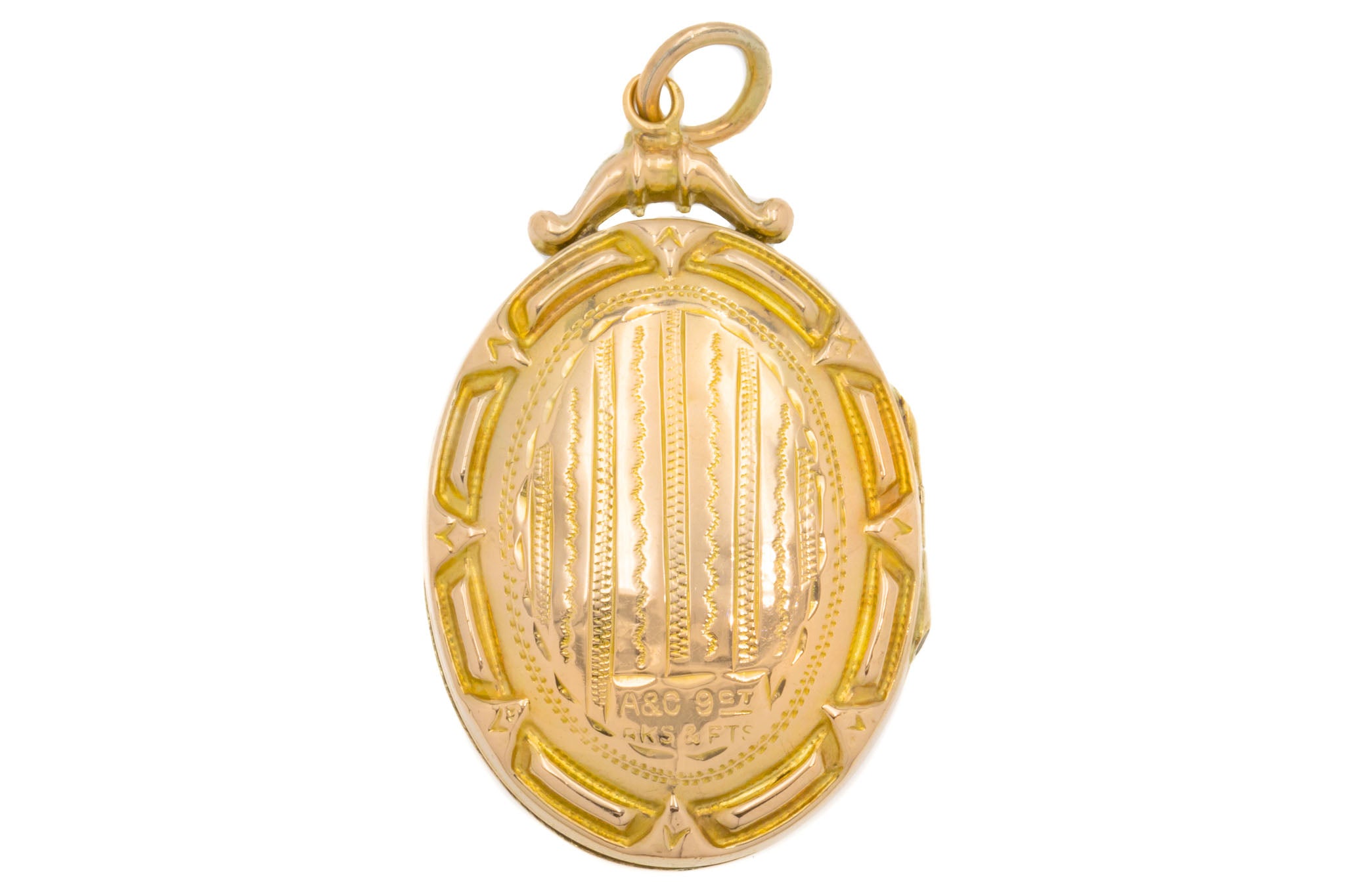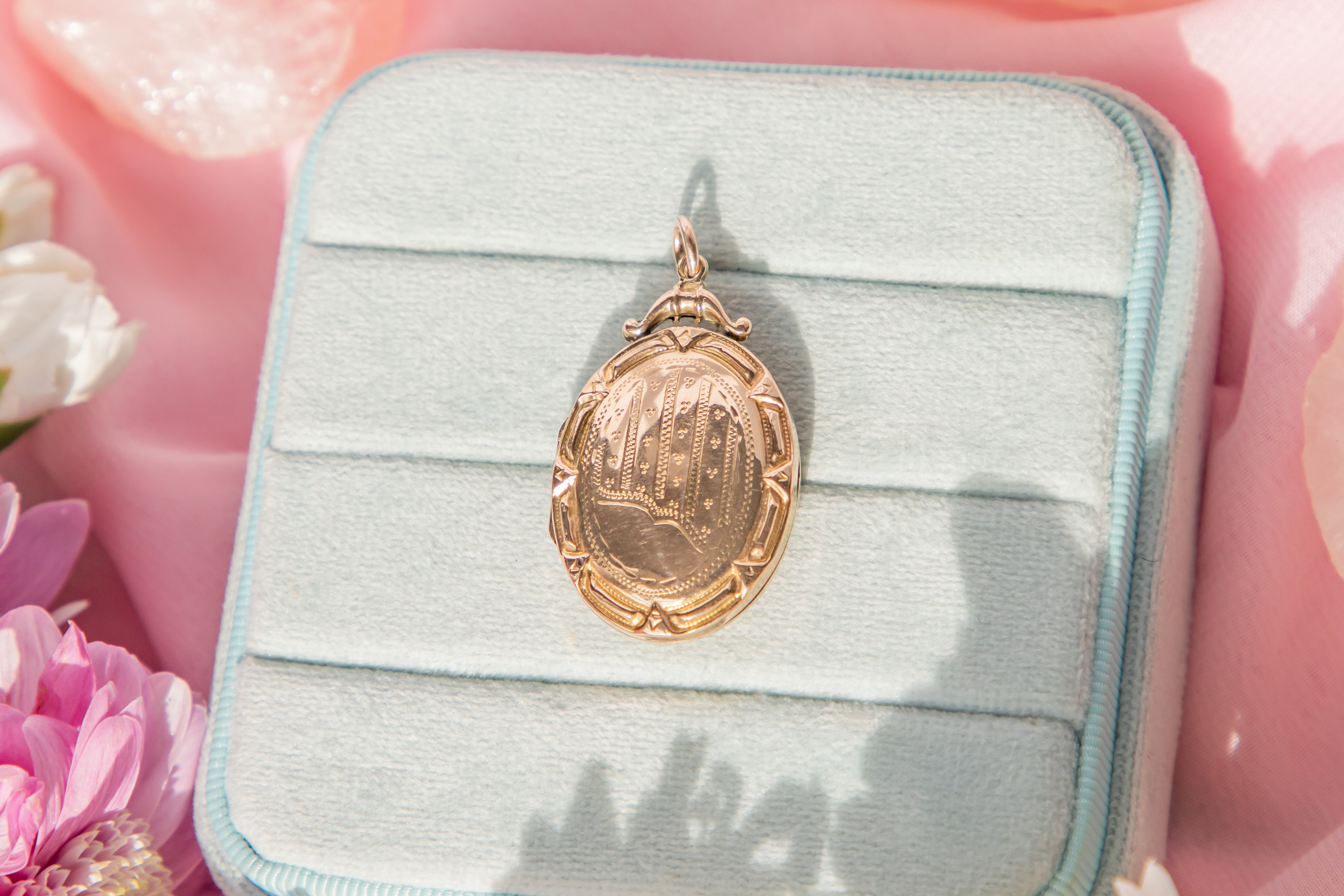 アンティーク 9ct ゴールド 彫刻入り オーバル ロケット