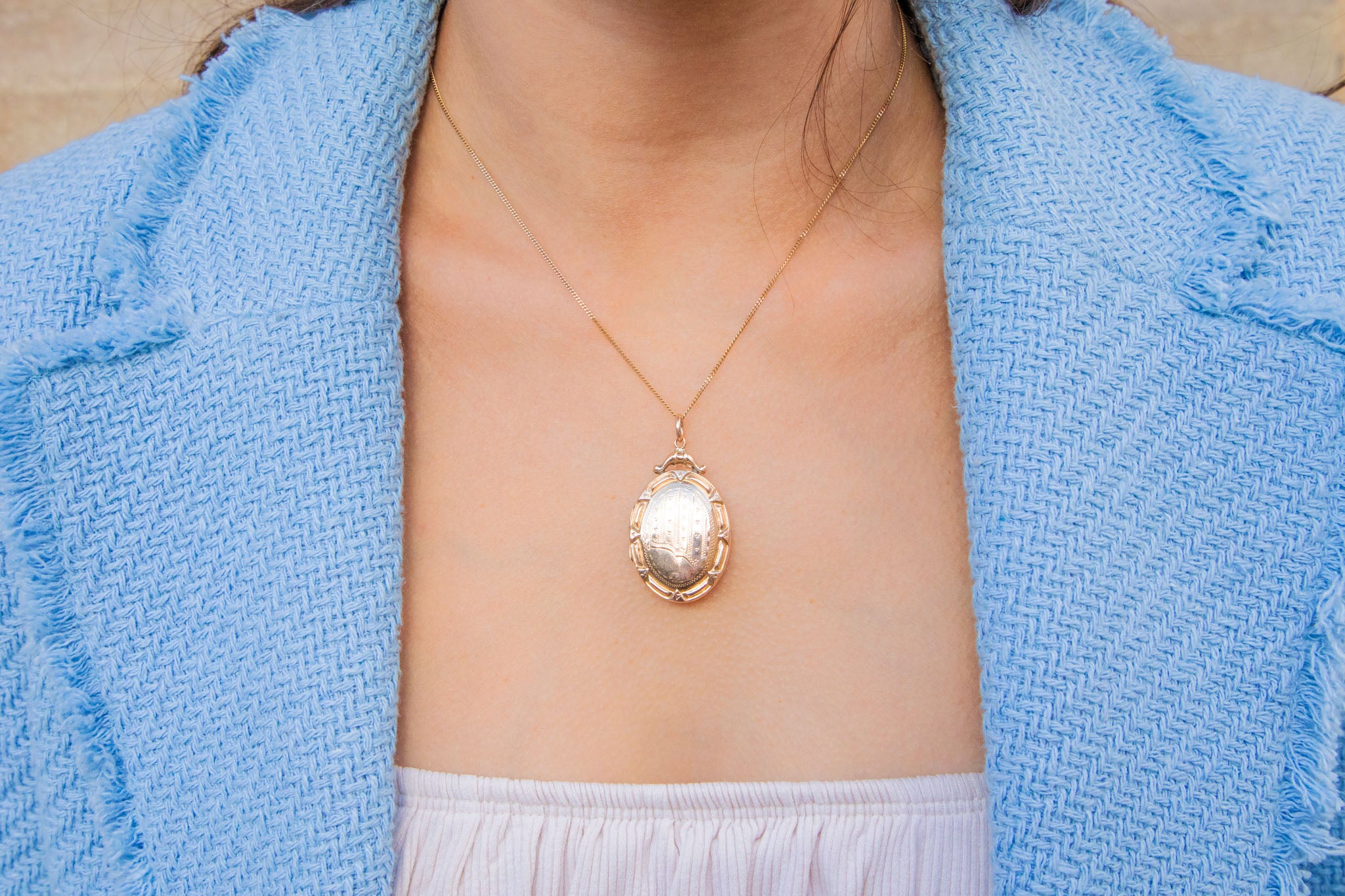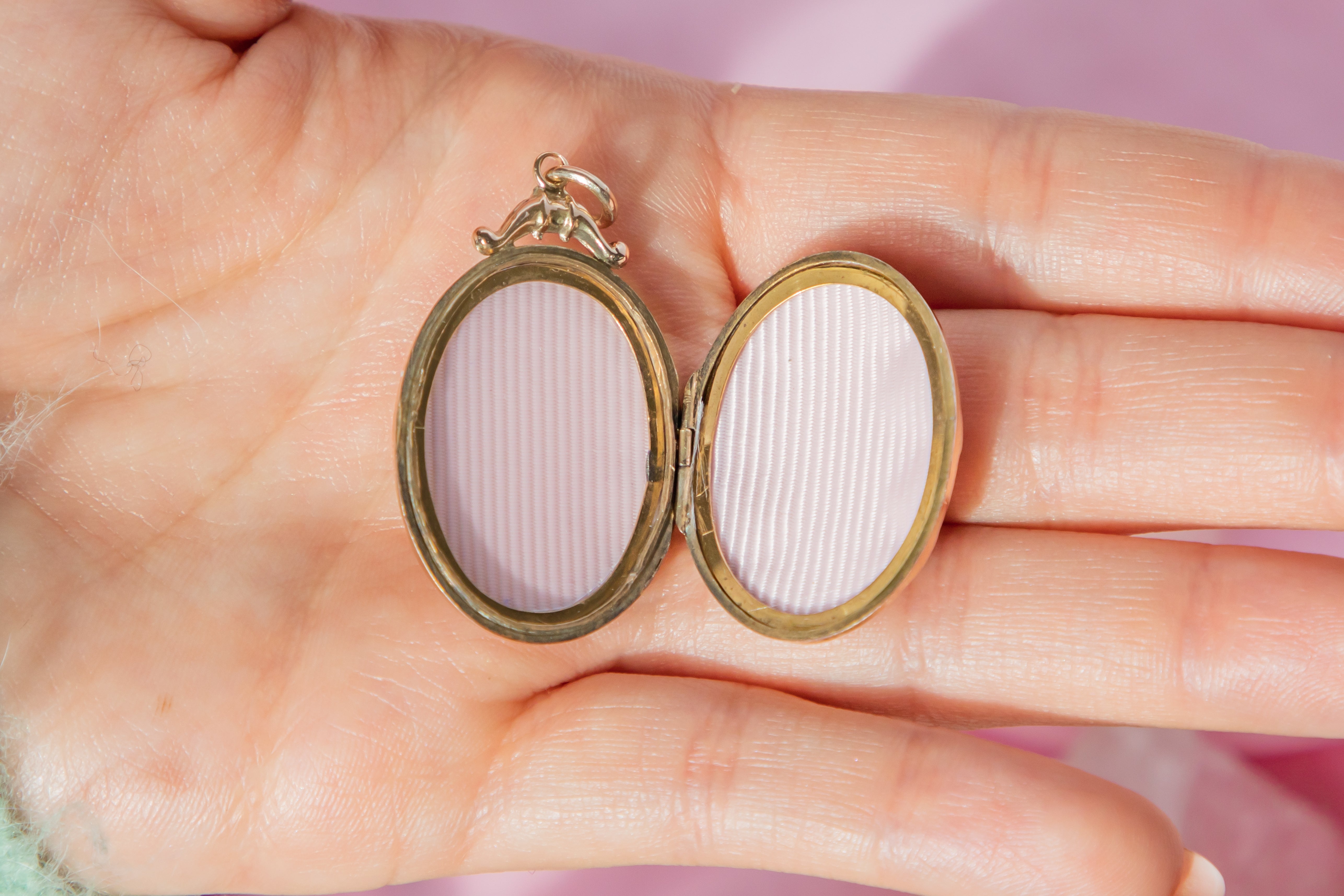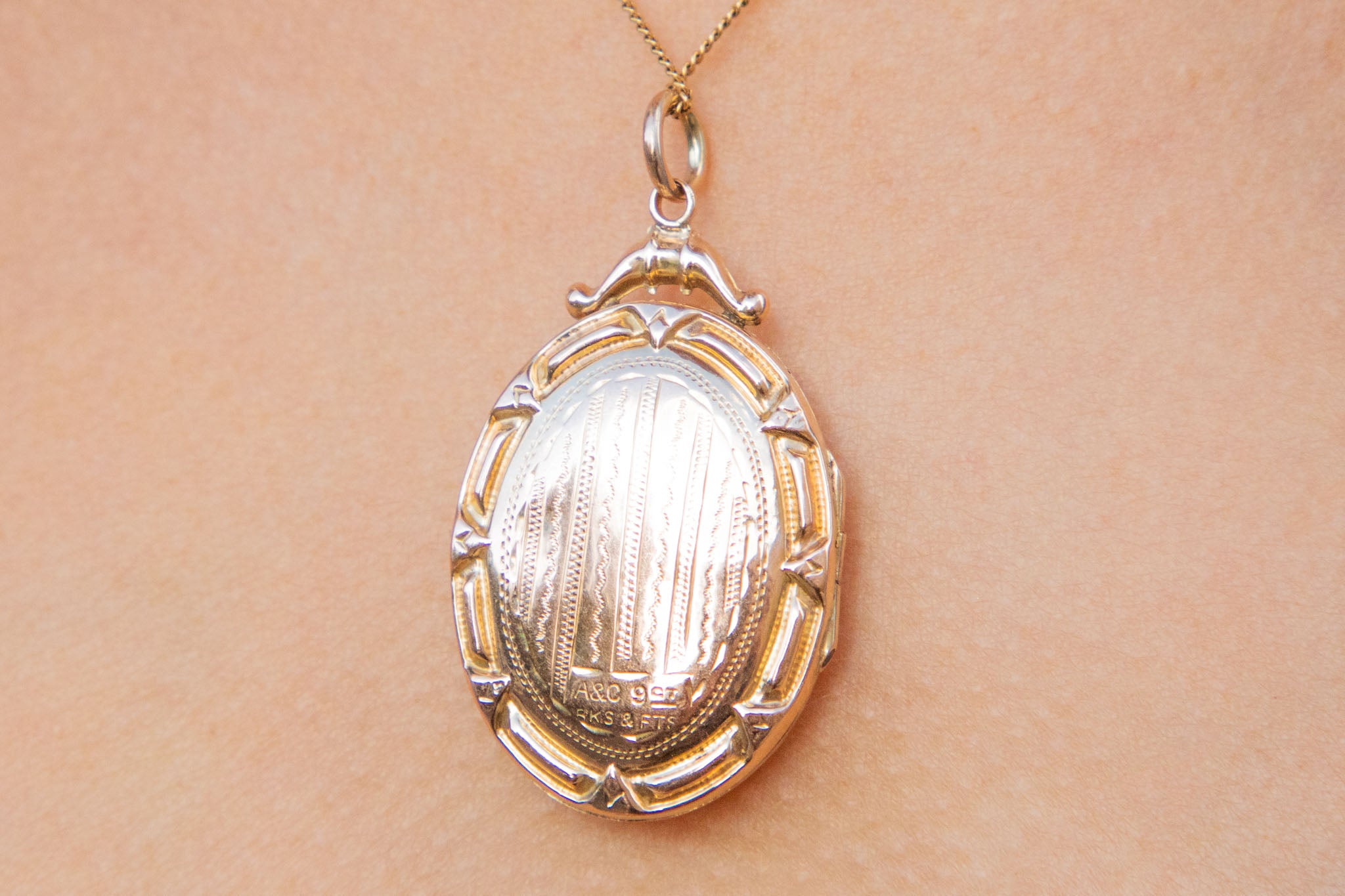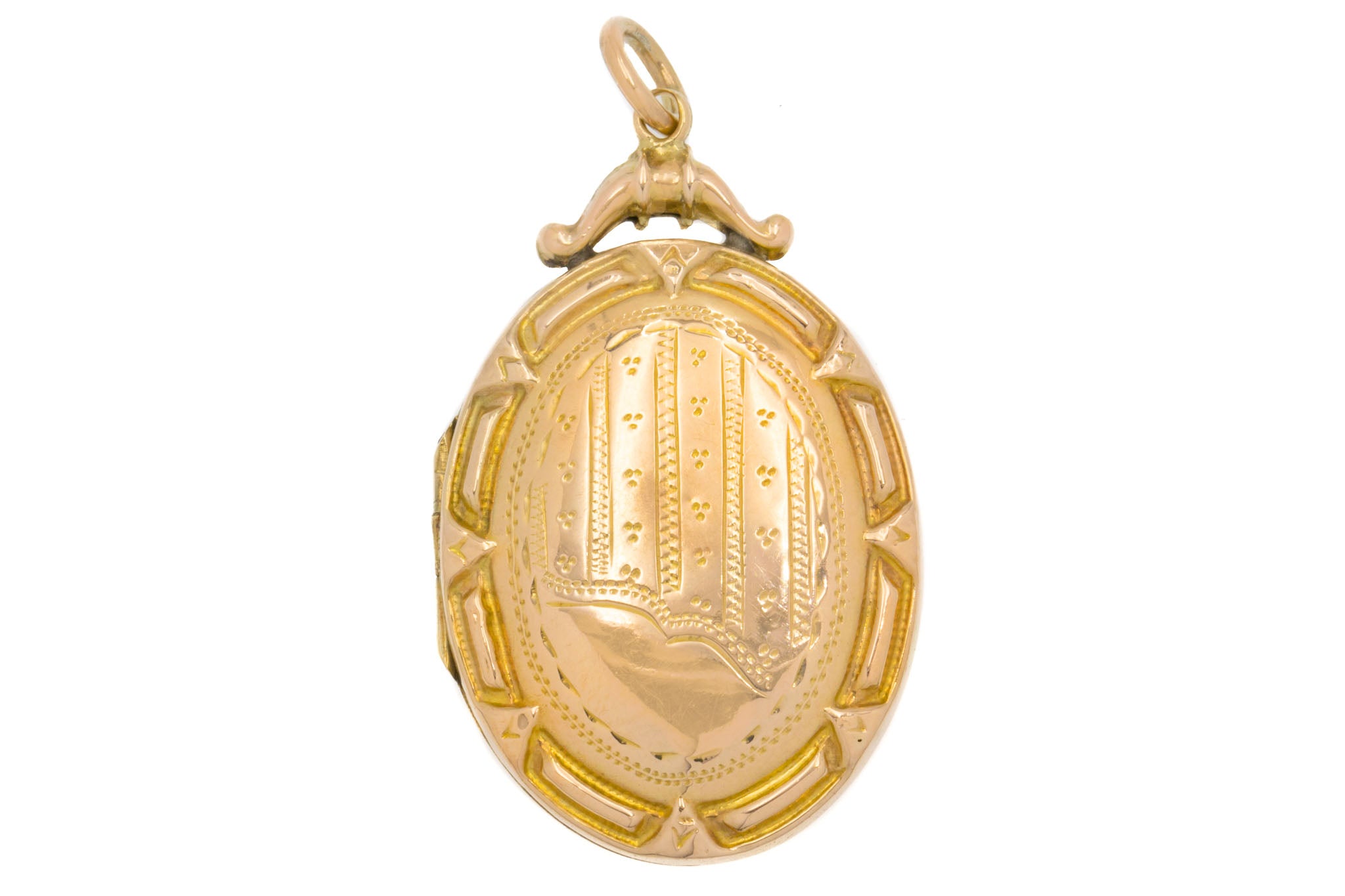 アンティーク 9ct ゴールド 彫刻入り オーバル ロケット