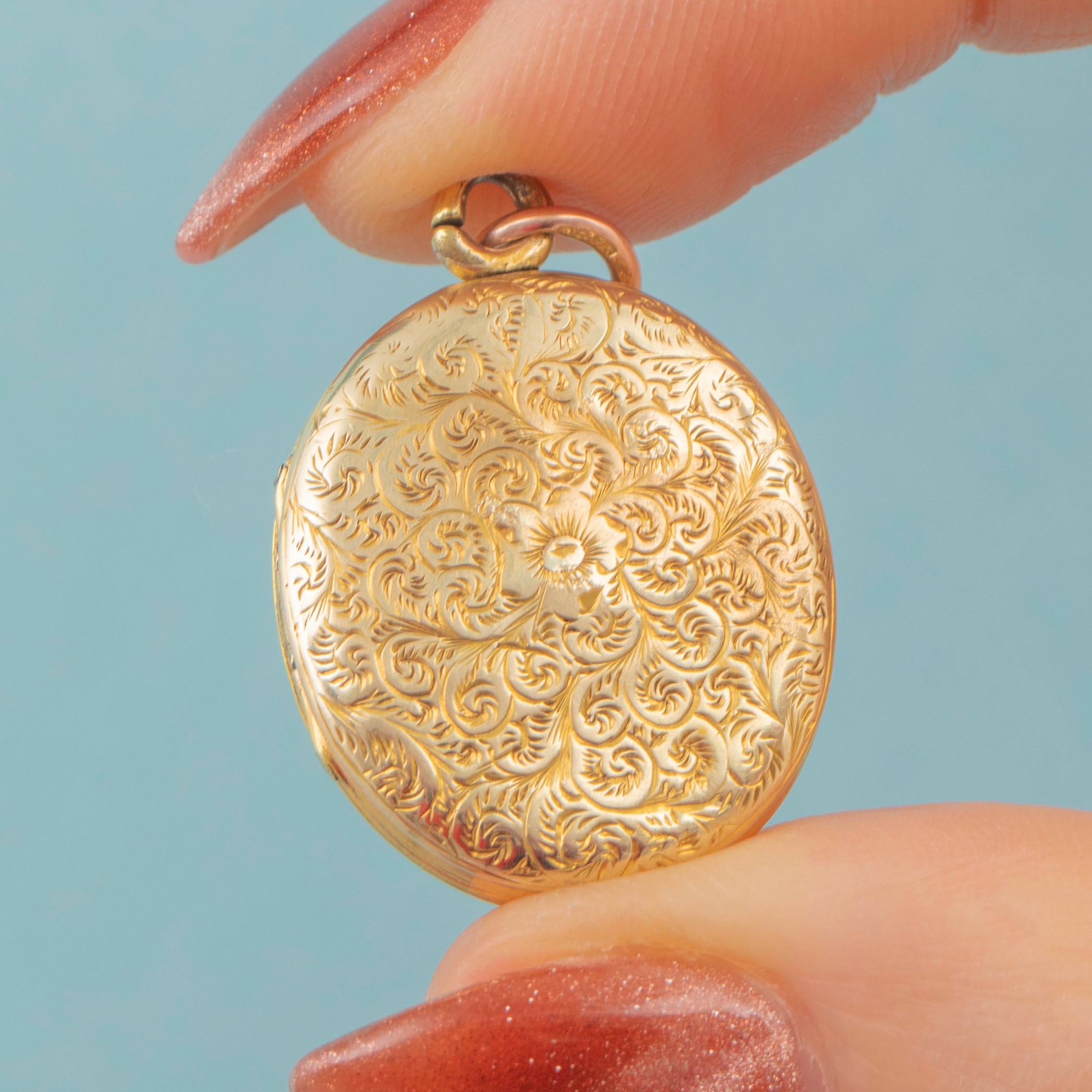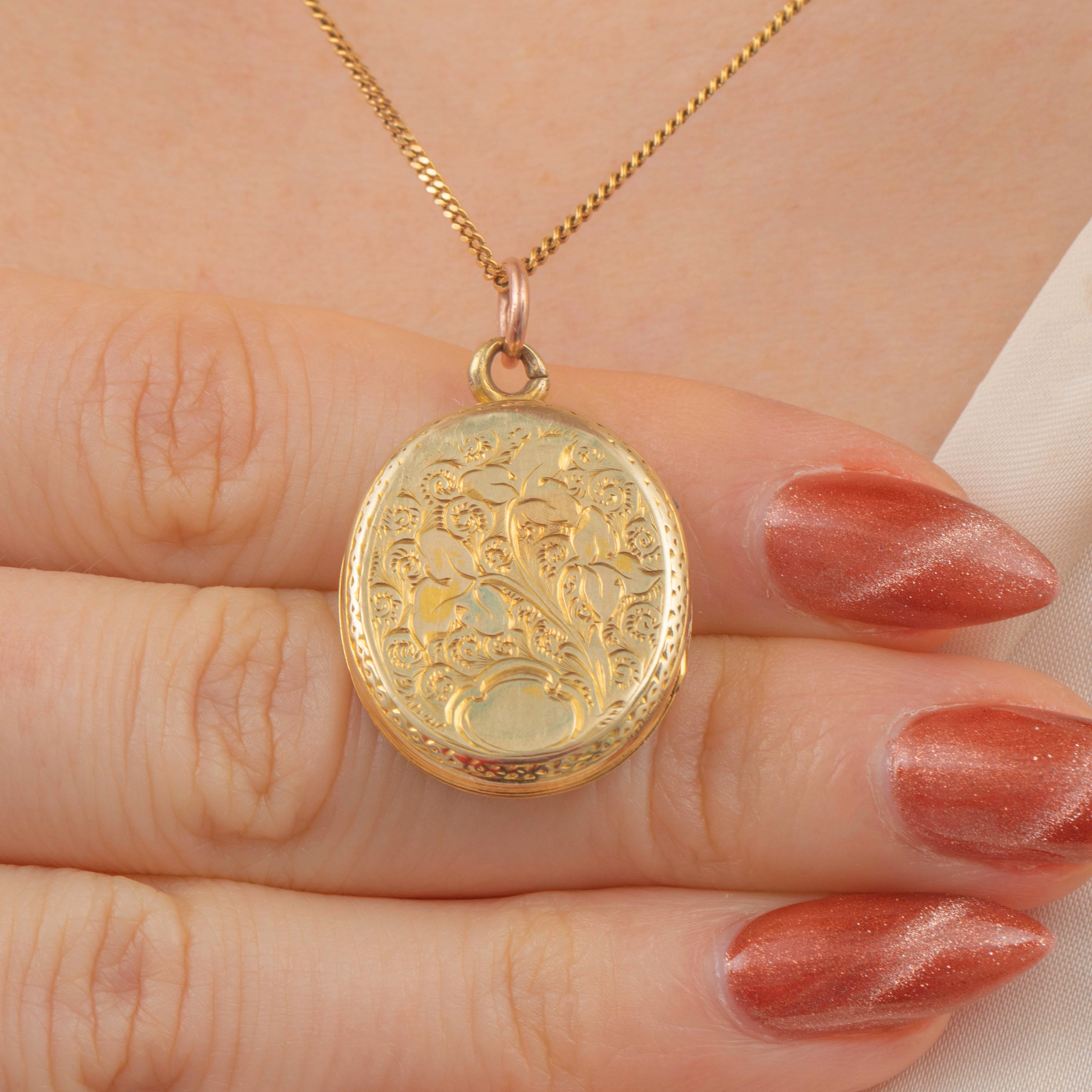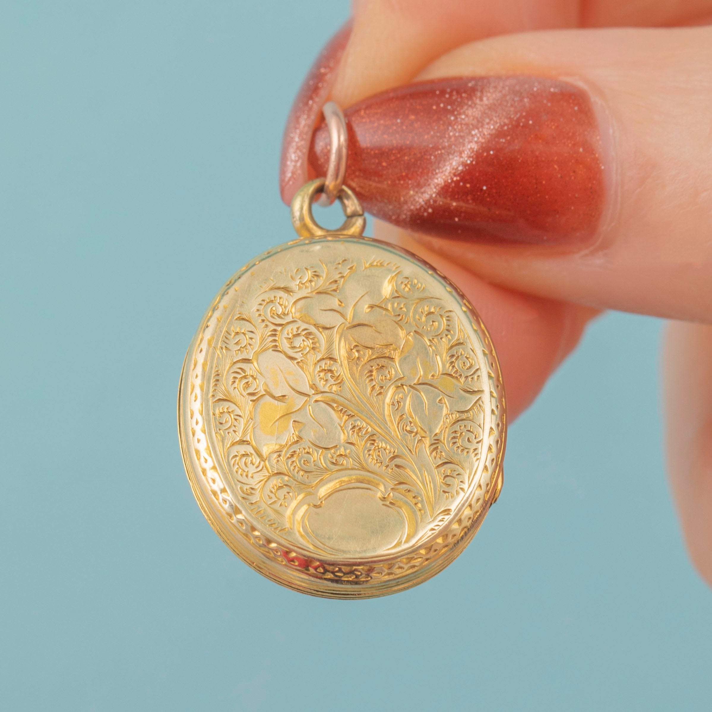 Add a touch of Victorian charm to your collection with this antique 9ct Gold engraved oval locket!