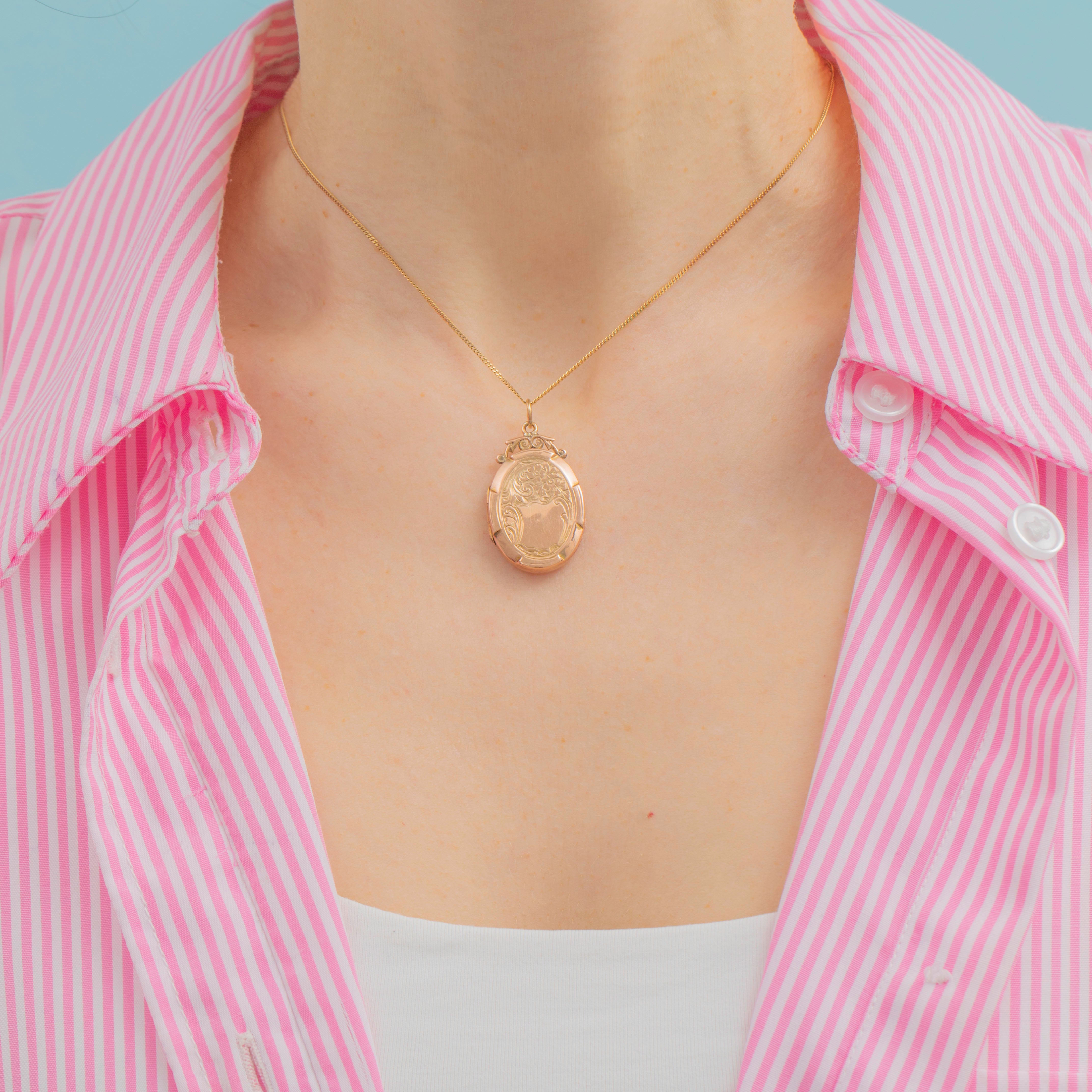 The blank cartouche on the front allows for a personal engraving to be added, and upon opening this antique locket you will find a new abode for two precious photographs, making this piece a wonderful sentimental gift choice!